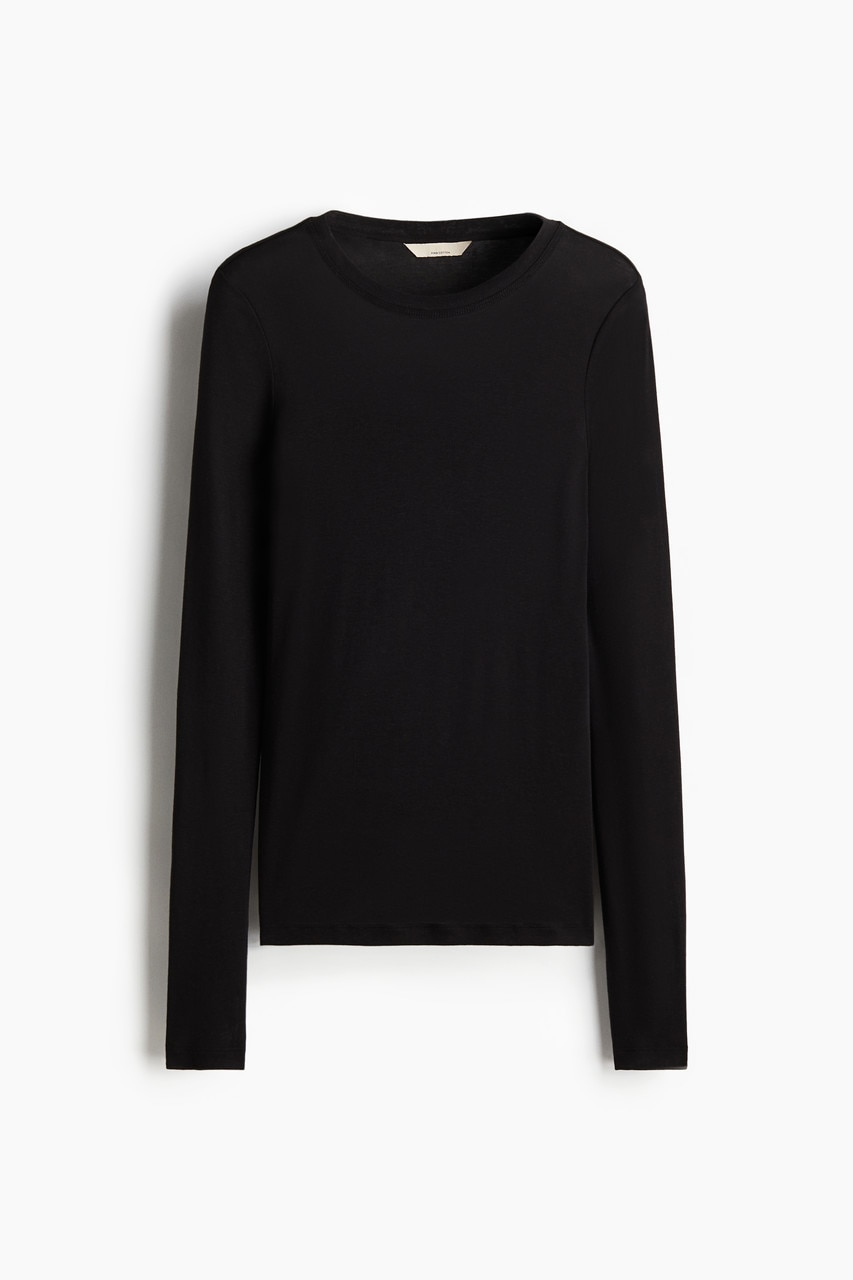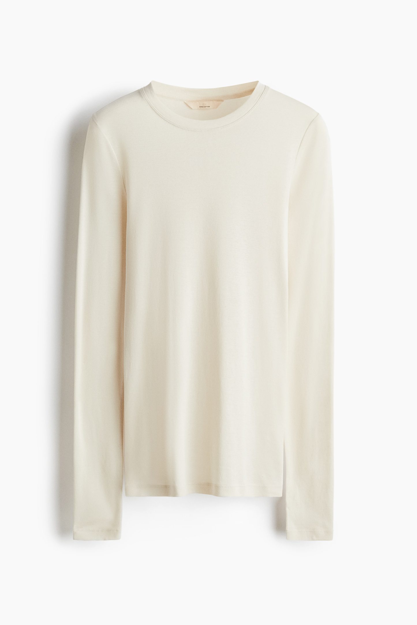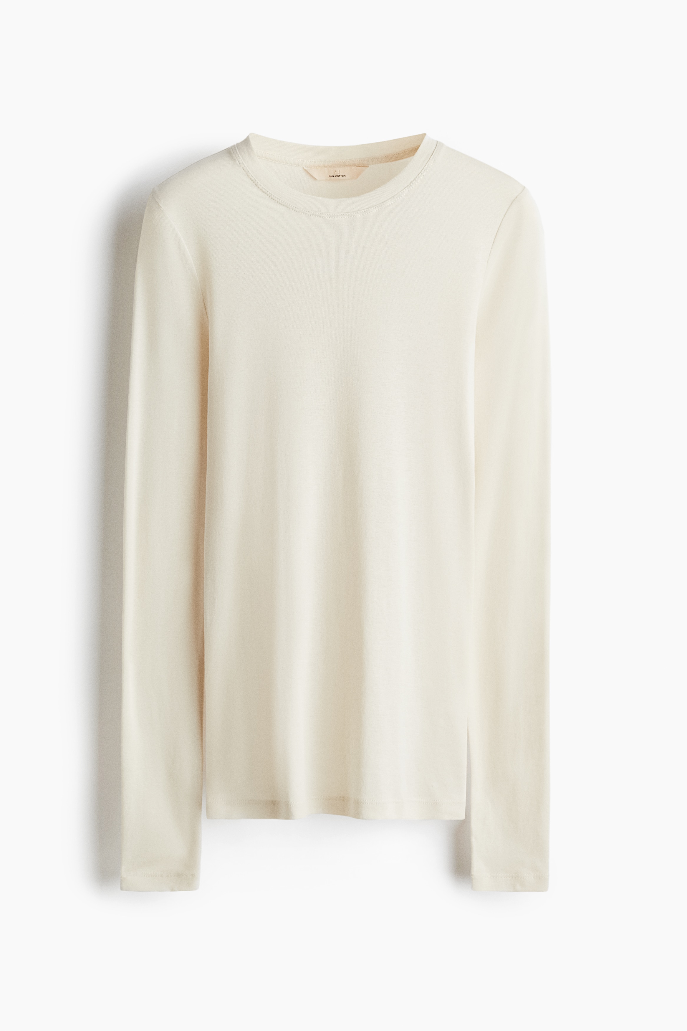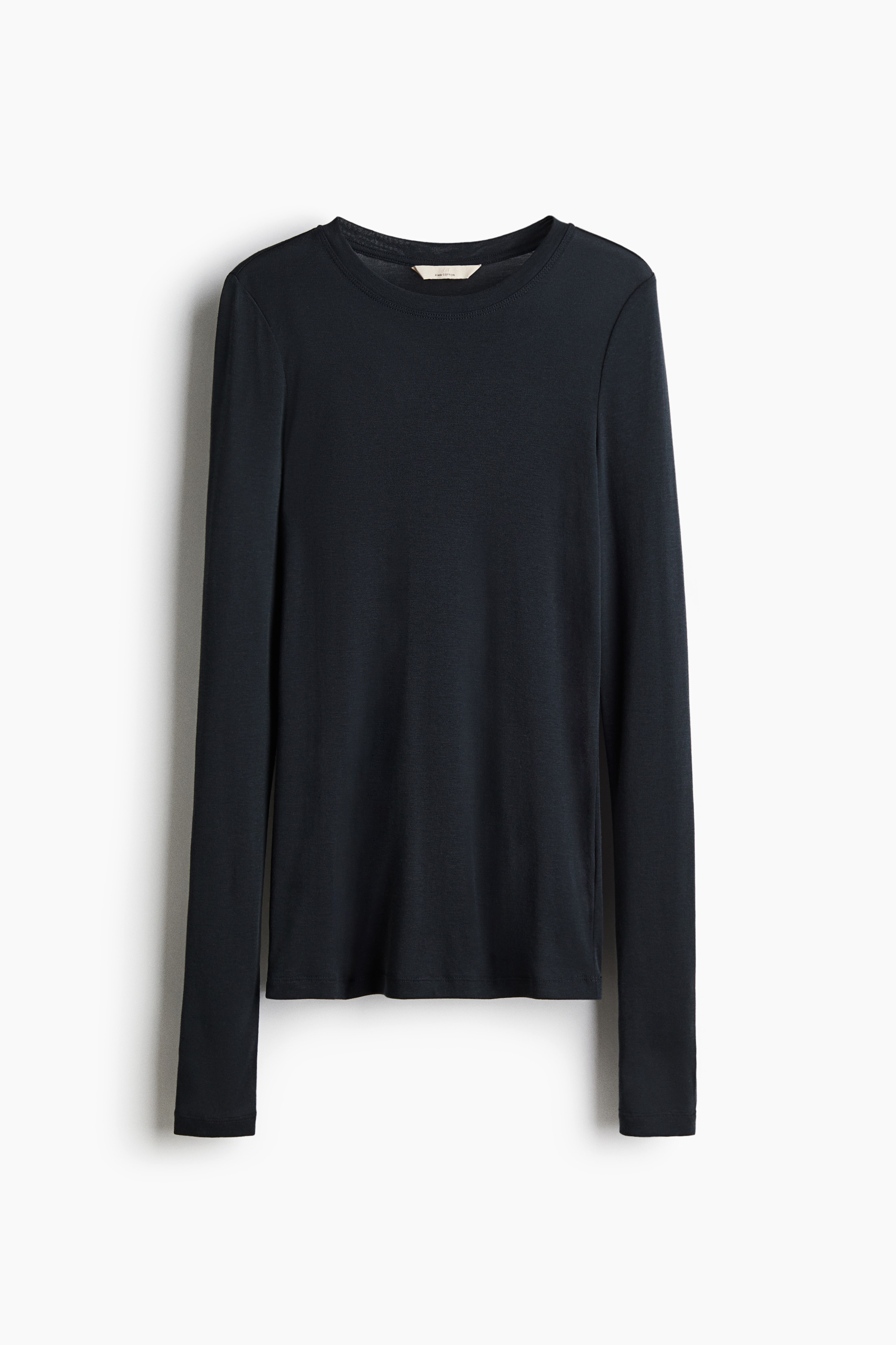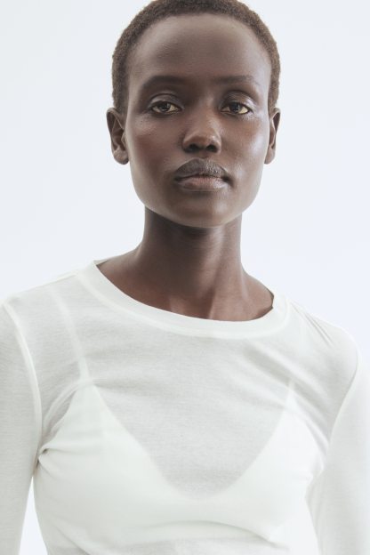 Fitted top in sheer pima cotton jersey with a round neckline and extra-long sleeves.