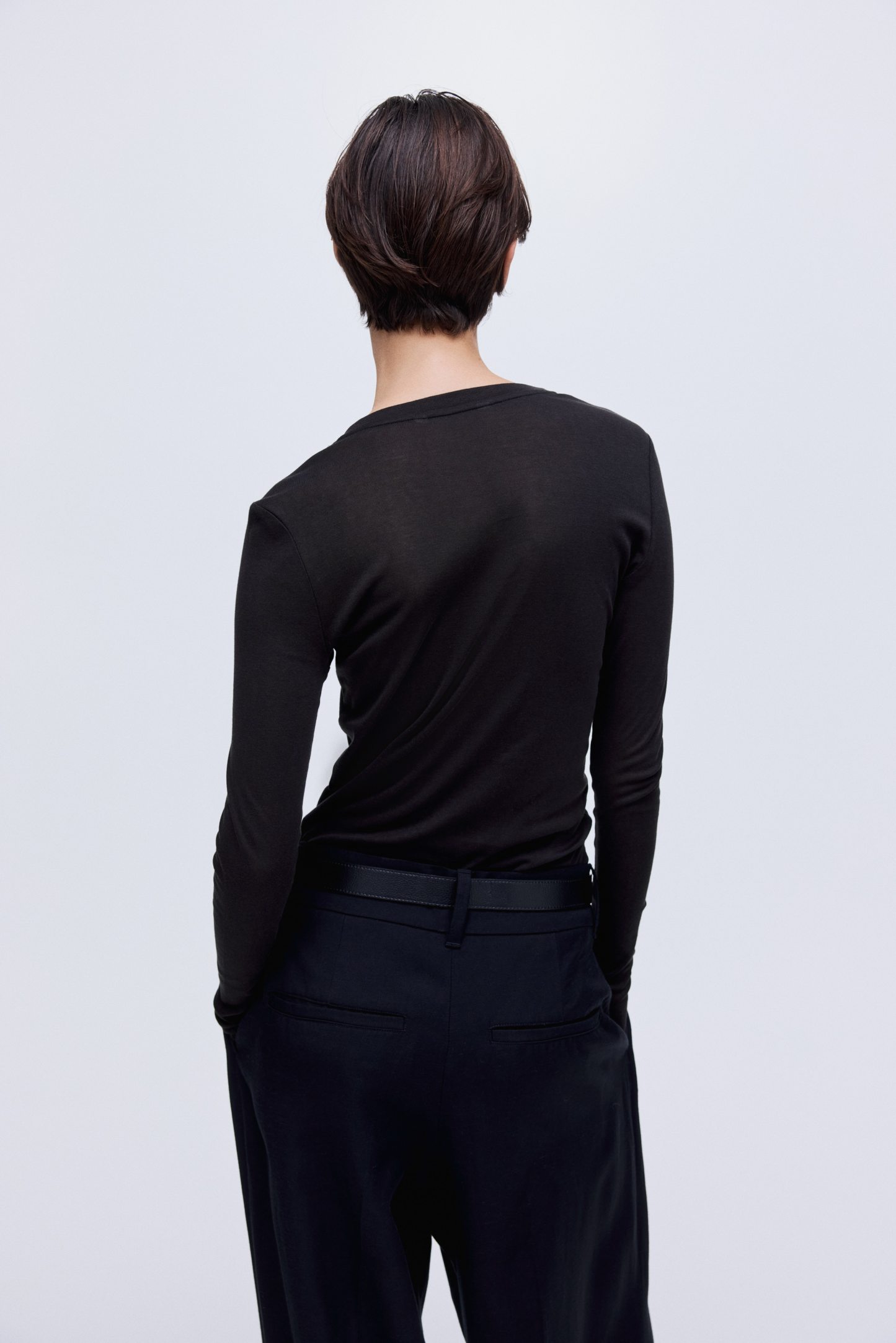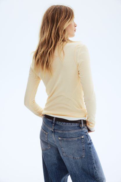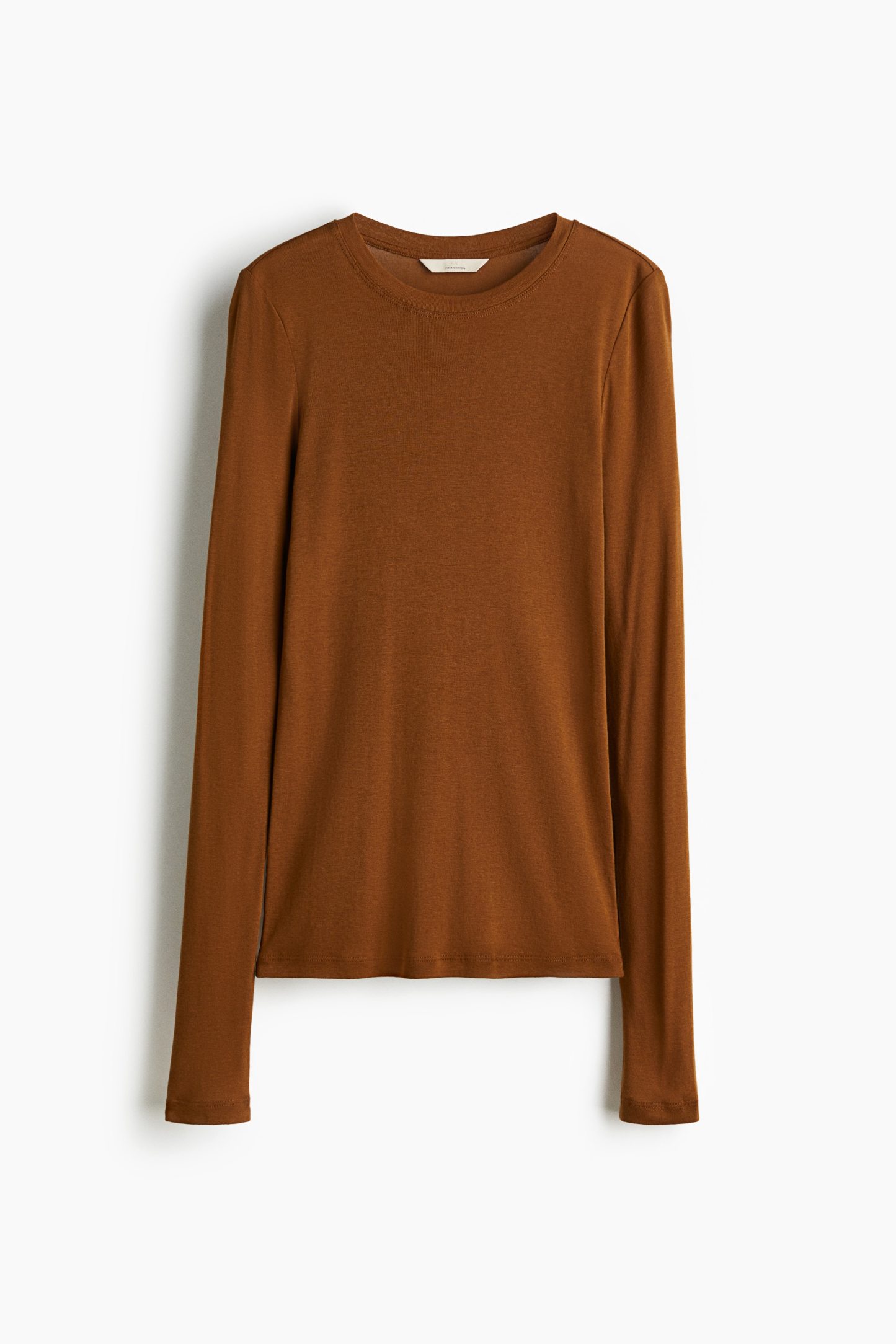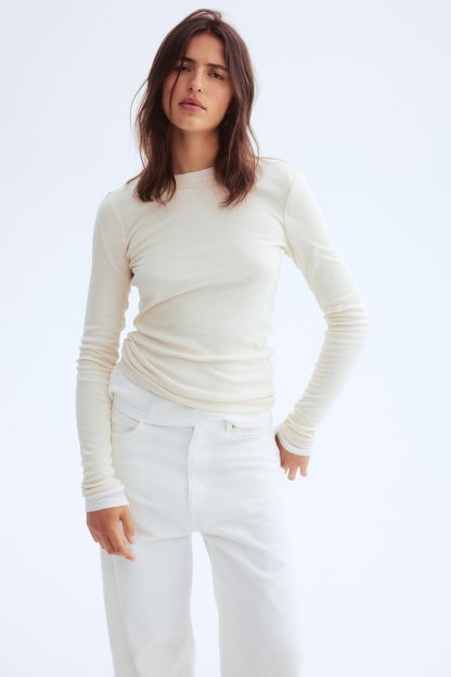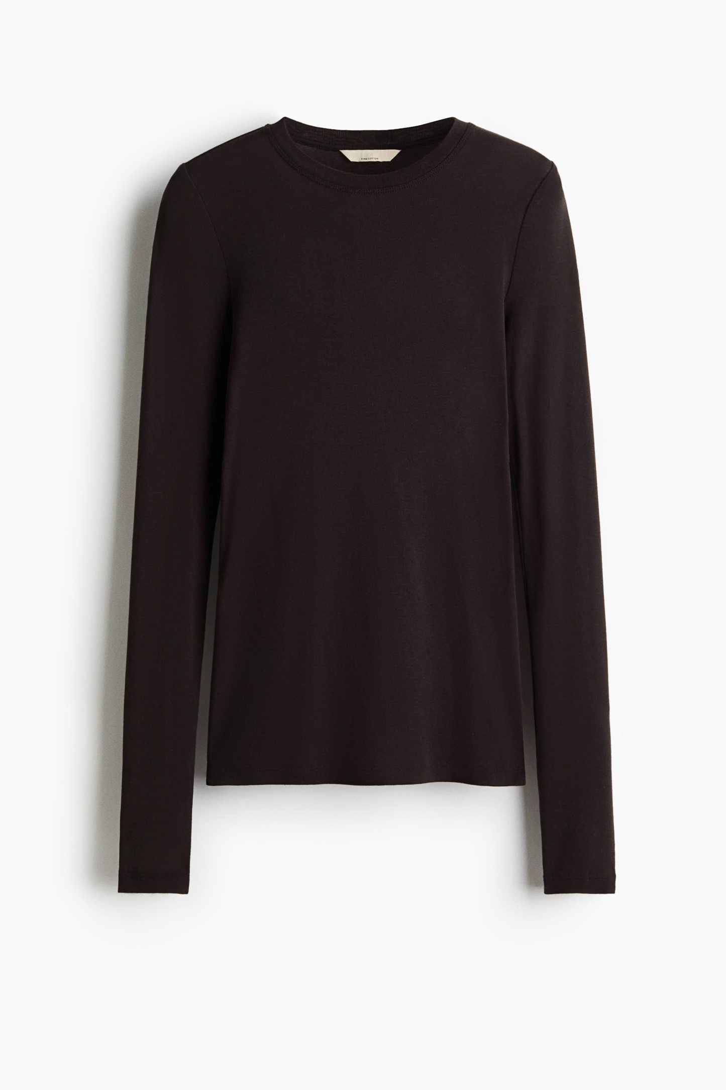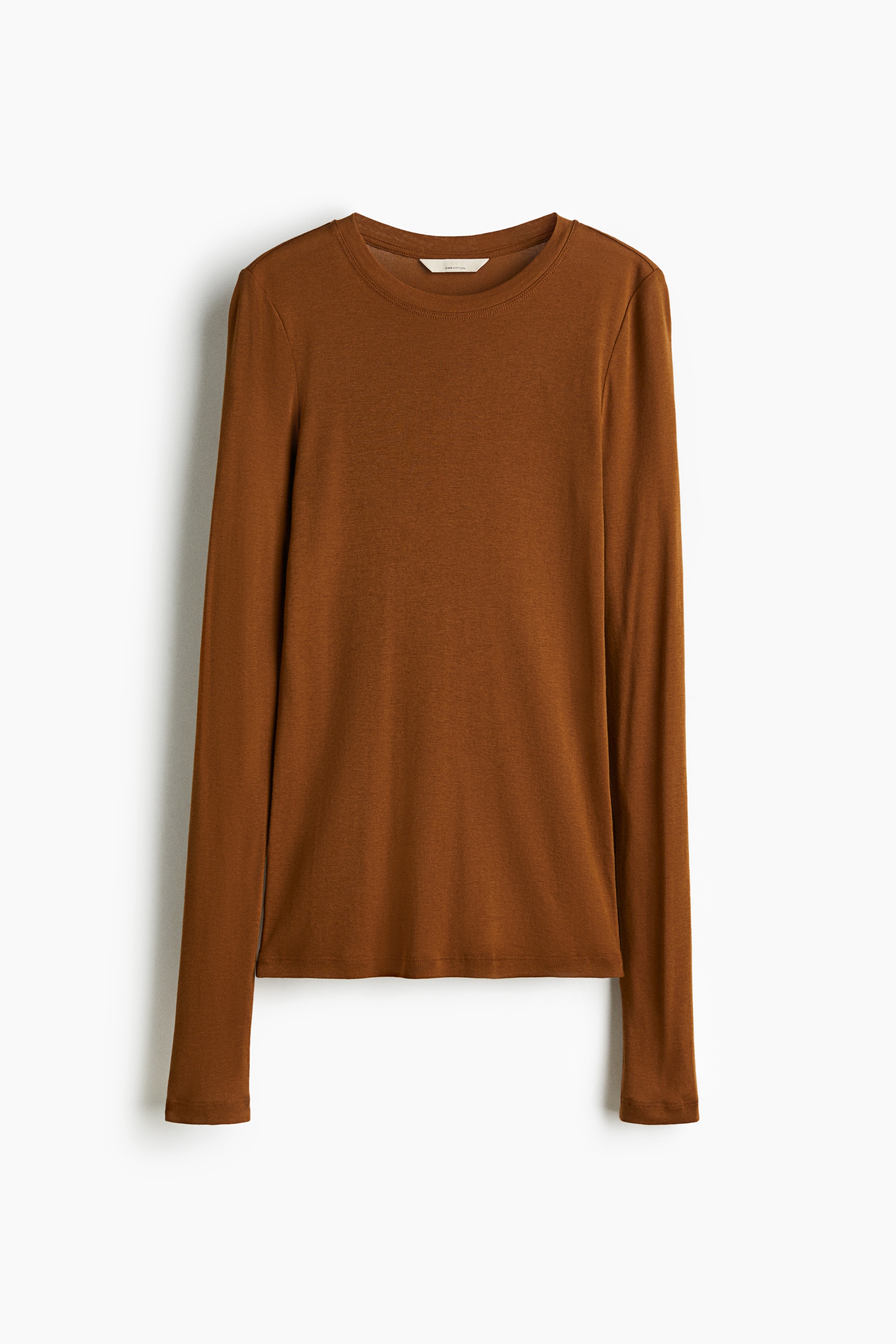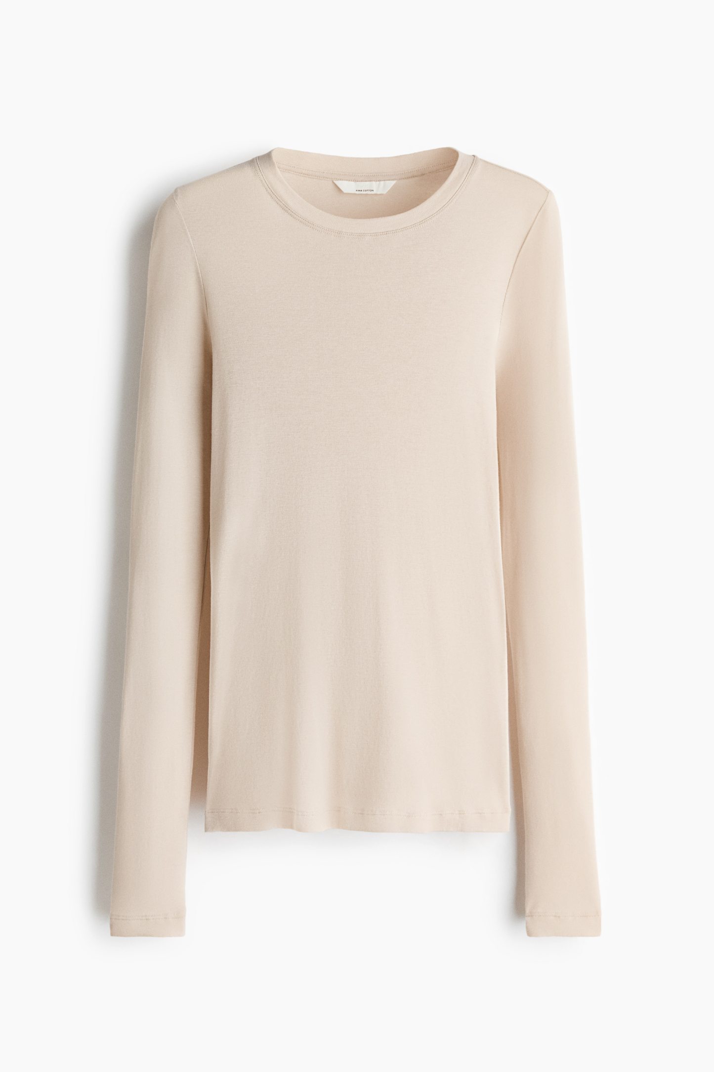 Fitted top in sheer pima cotton jersey with a round neckline and extra-long sleeves.