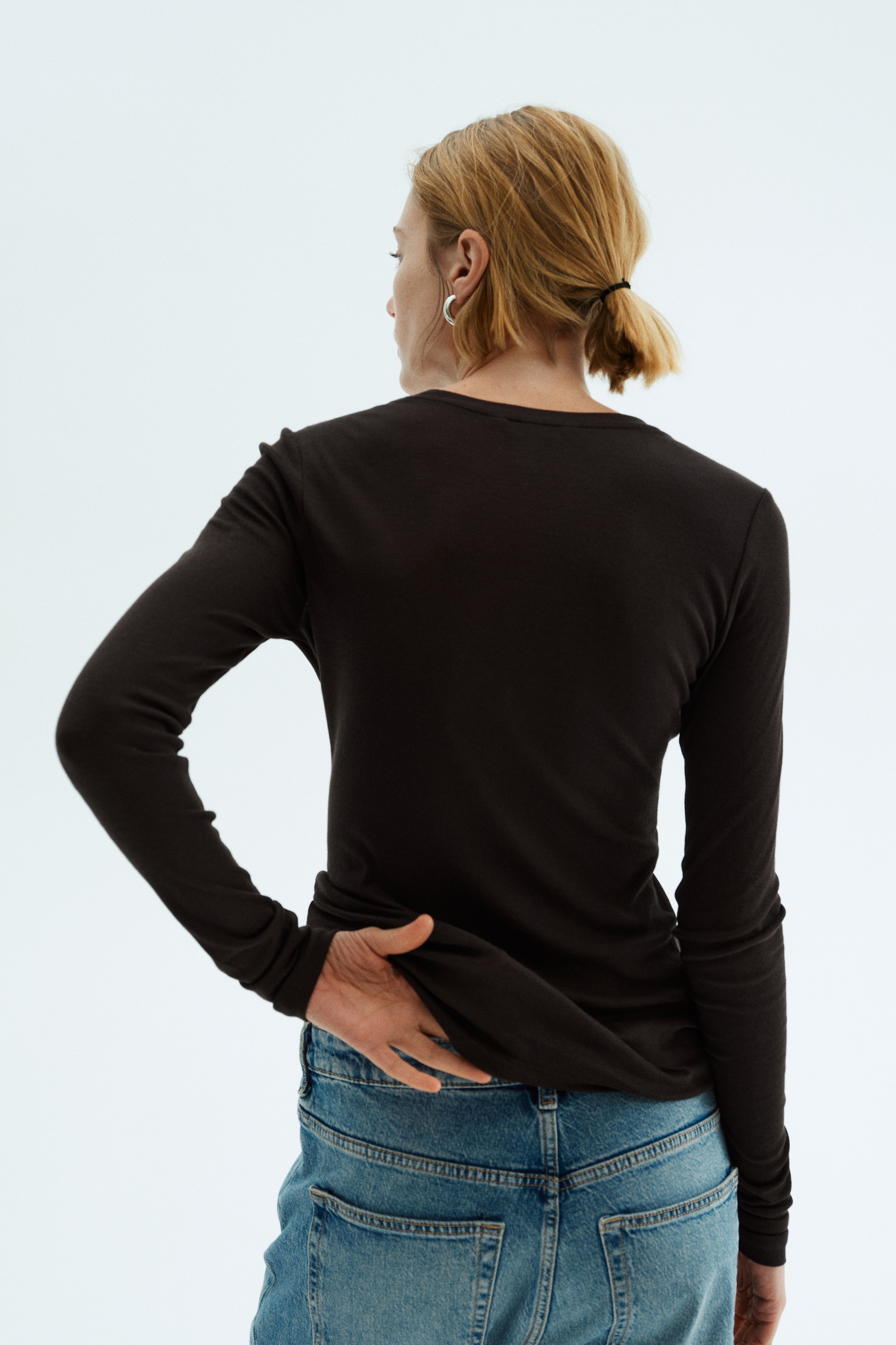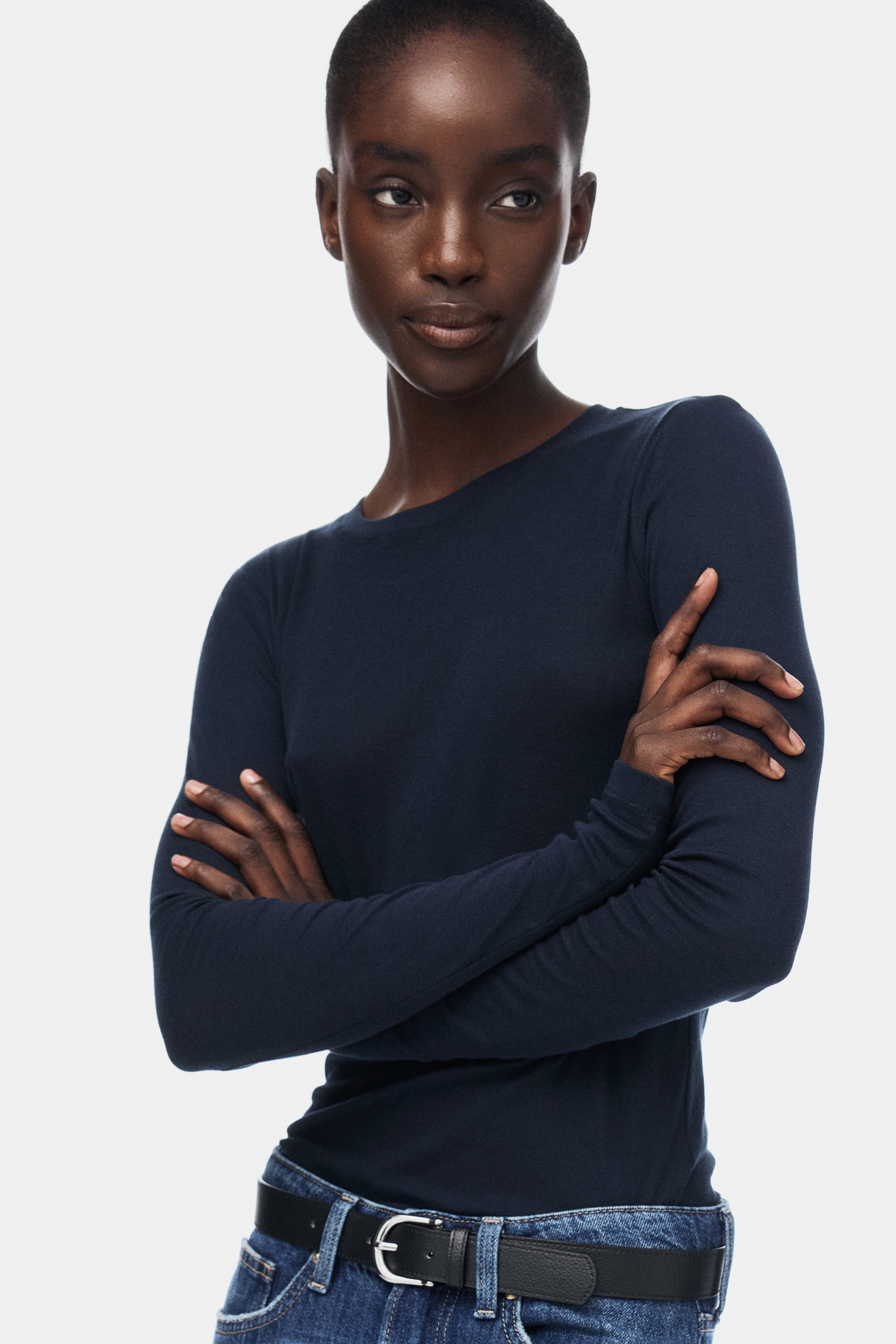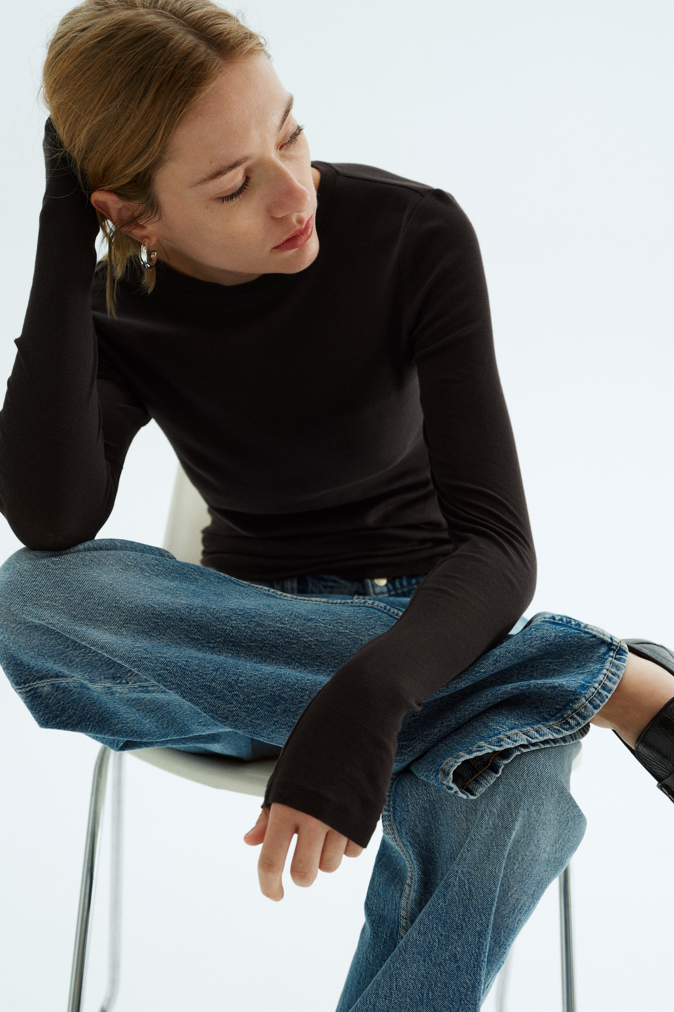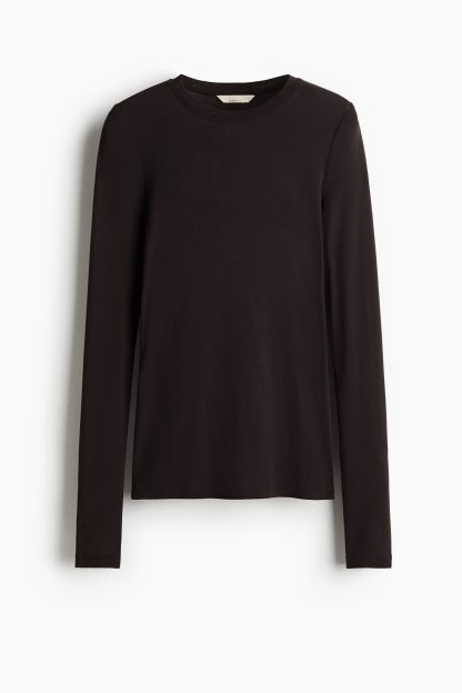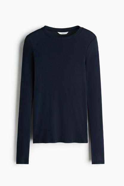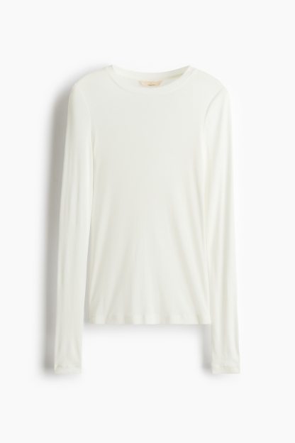 Fitted top in sheer pima cotton jersey with a round neckline and extra-long sleeves.