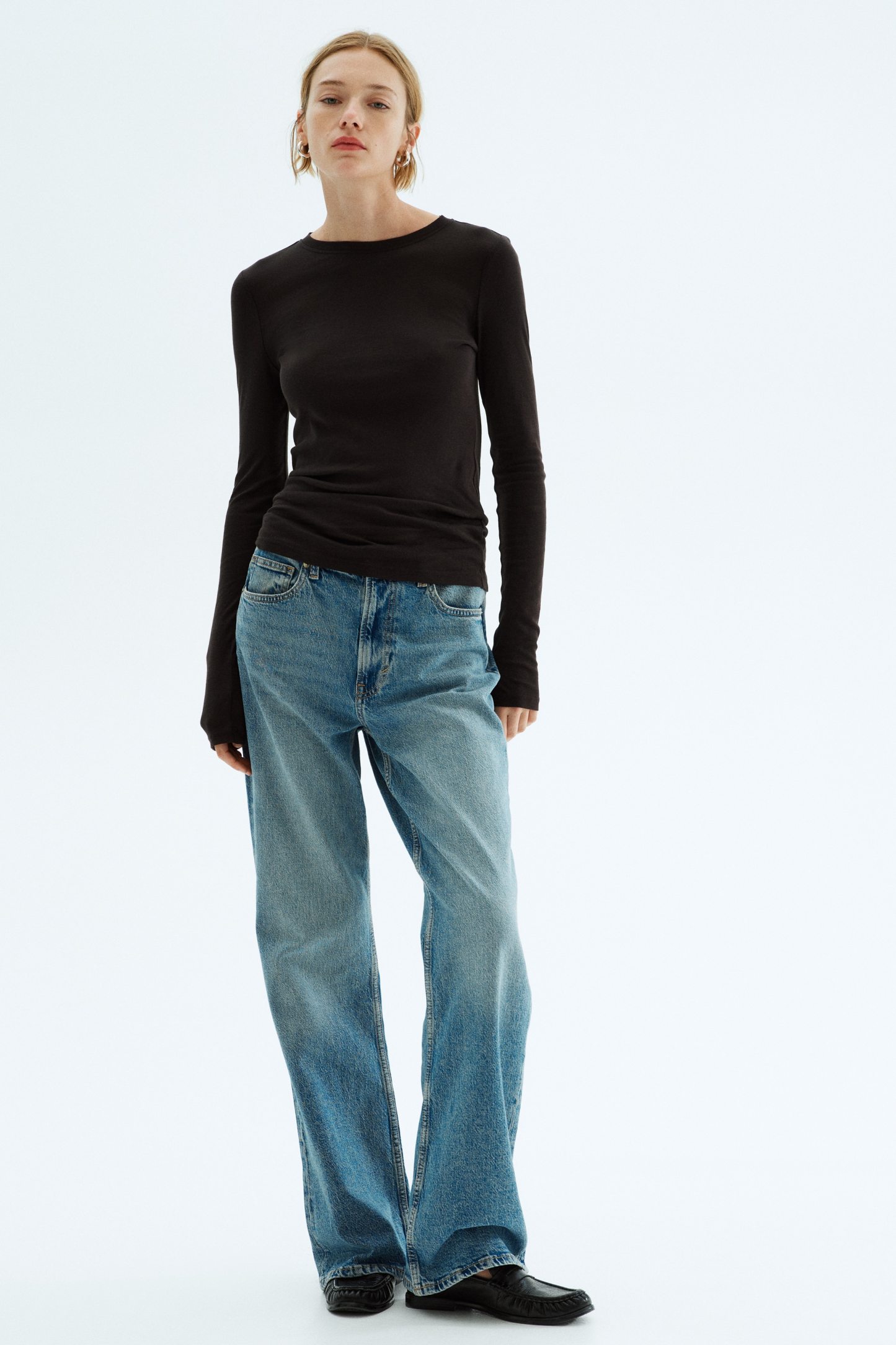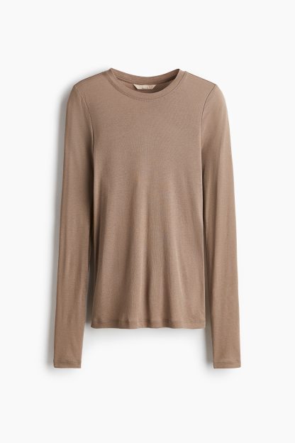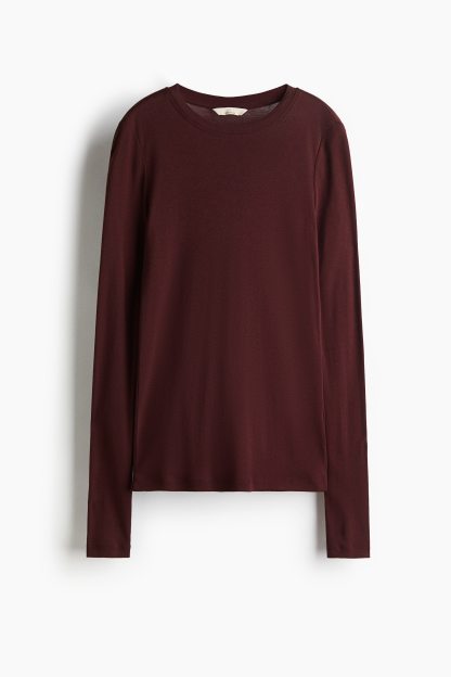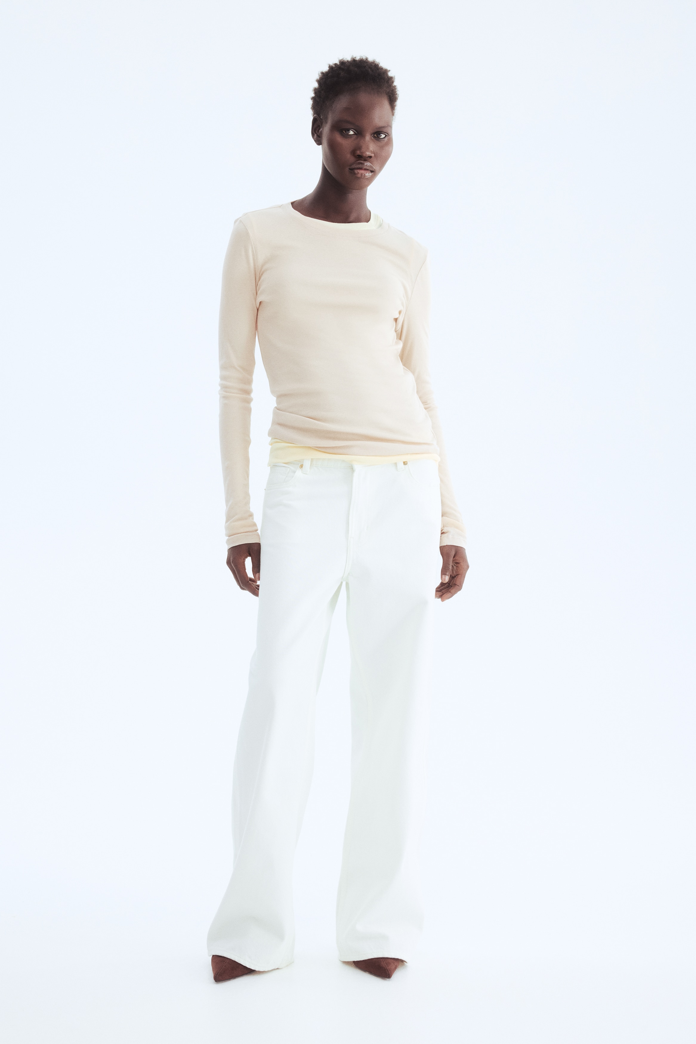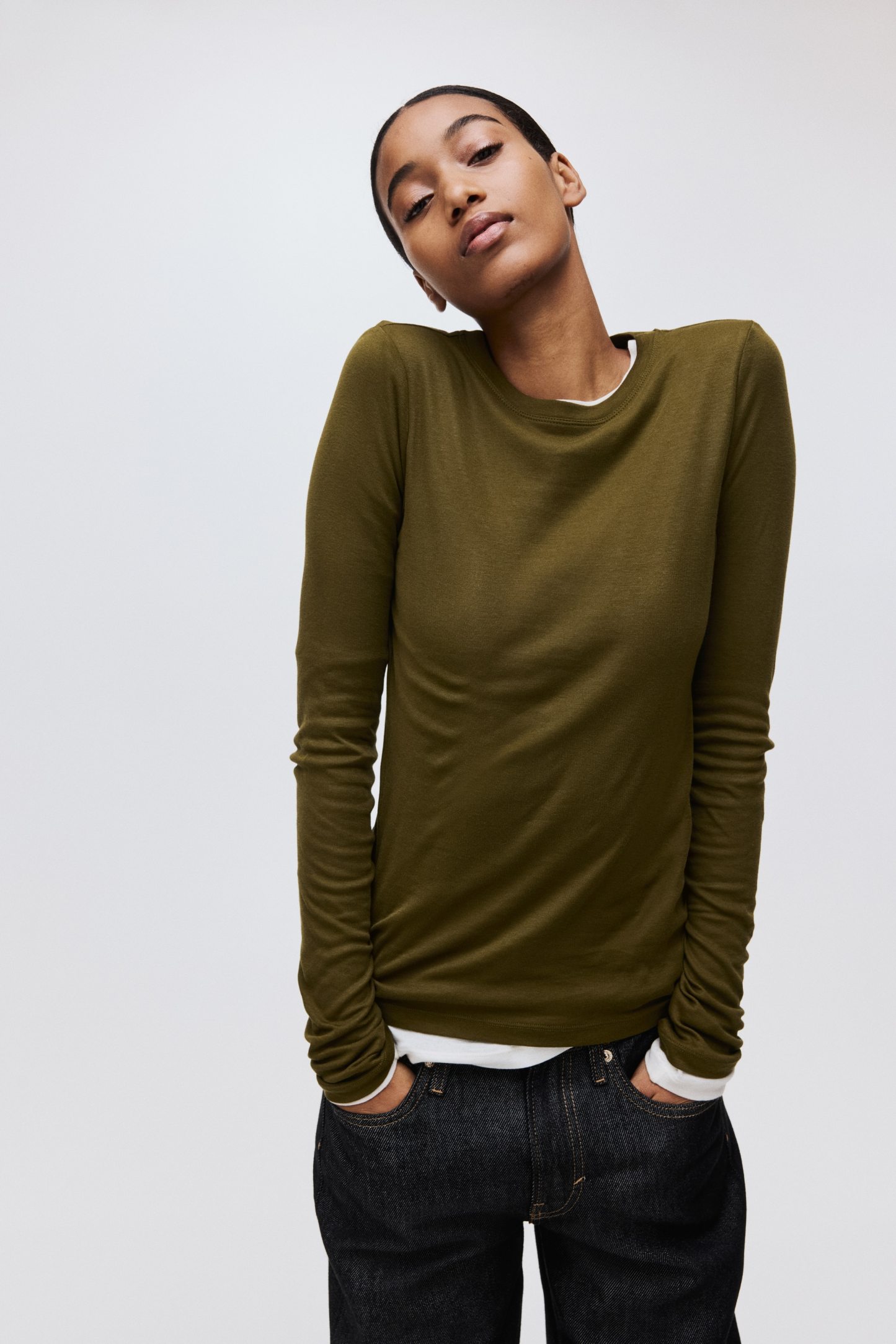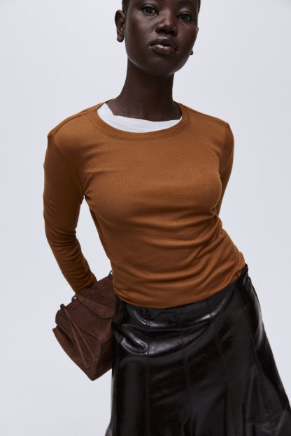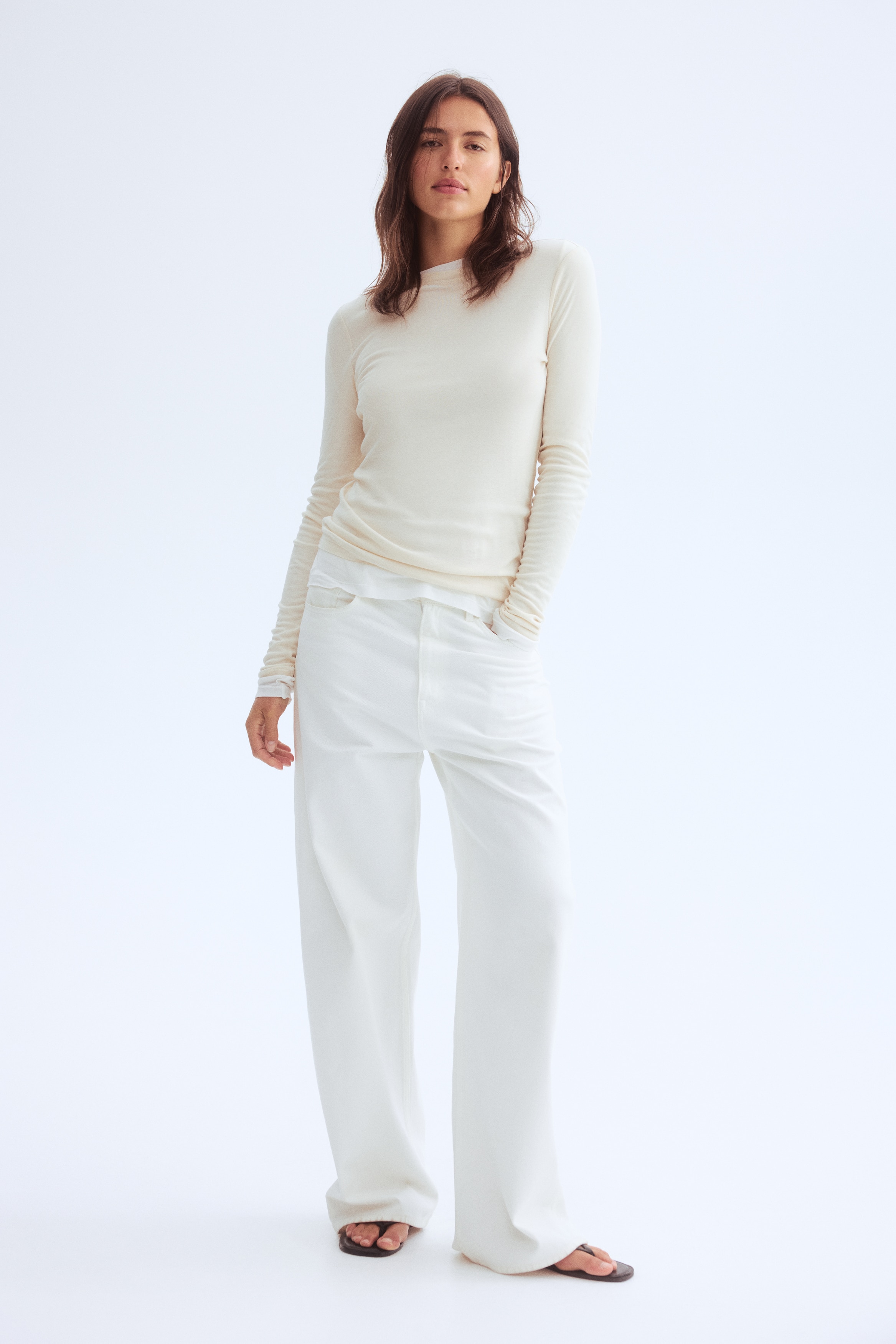Fitted top in sheer pima cotton jersey with a round neckline and extra-long sleeves.