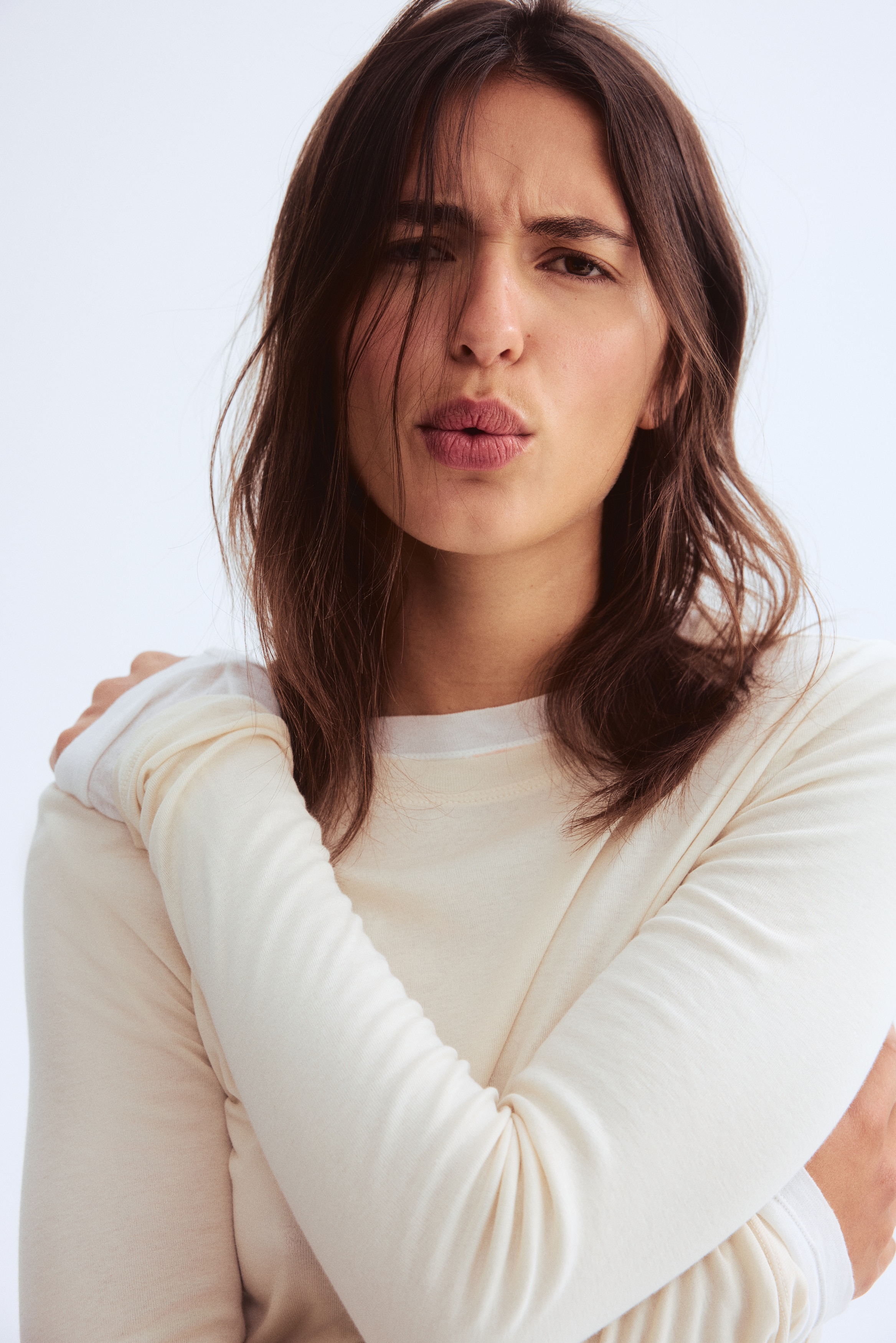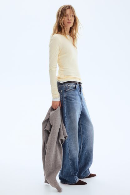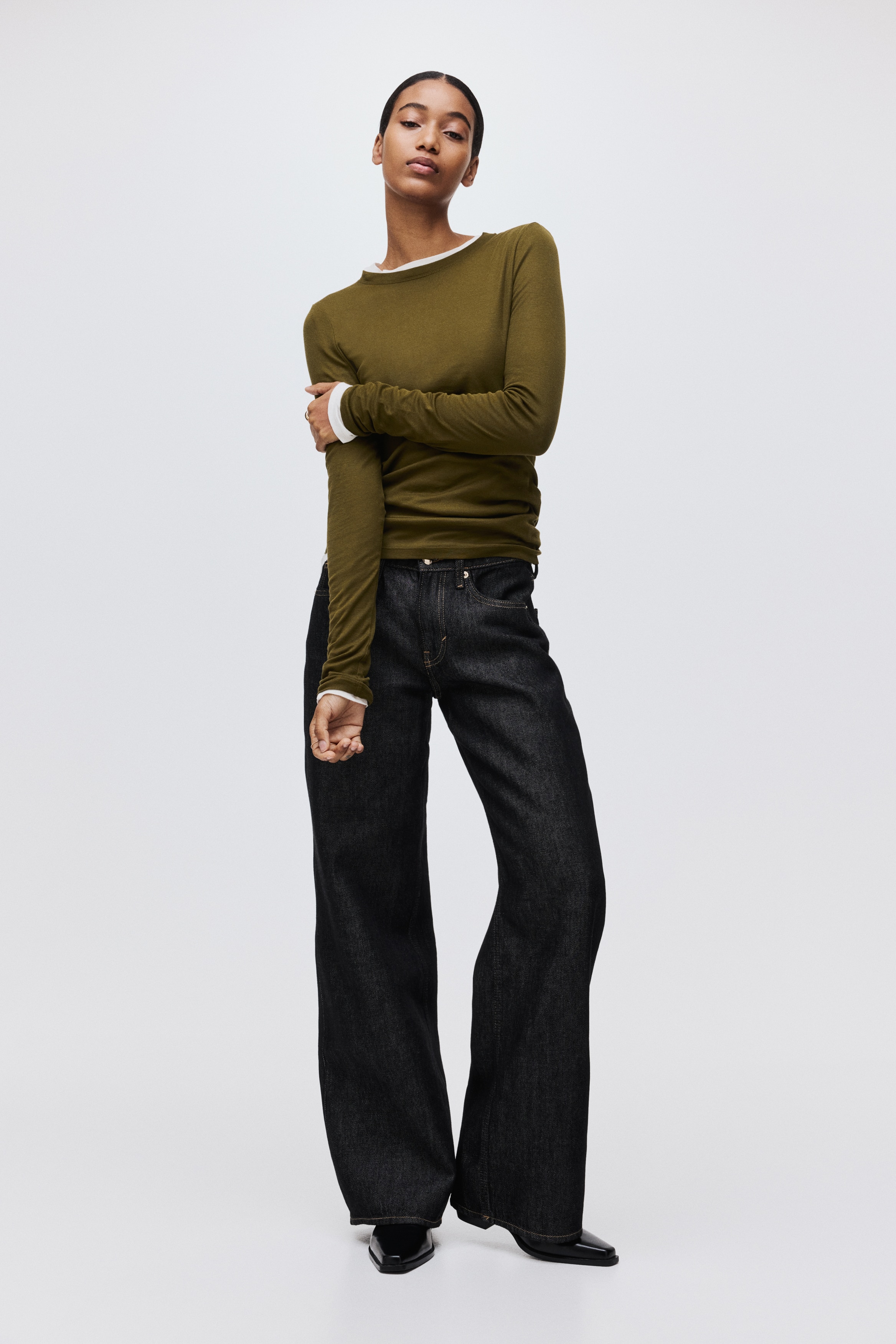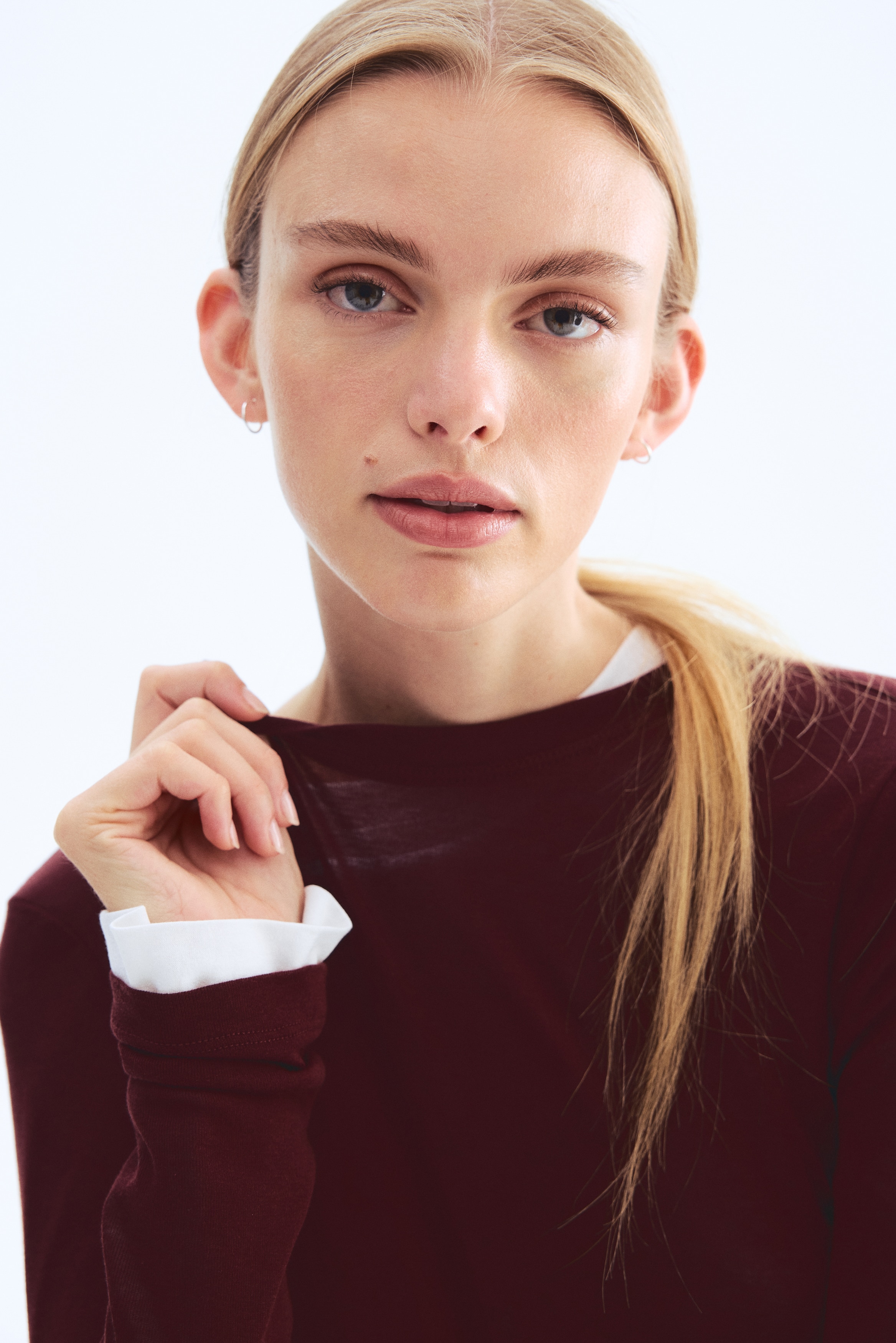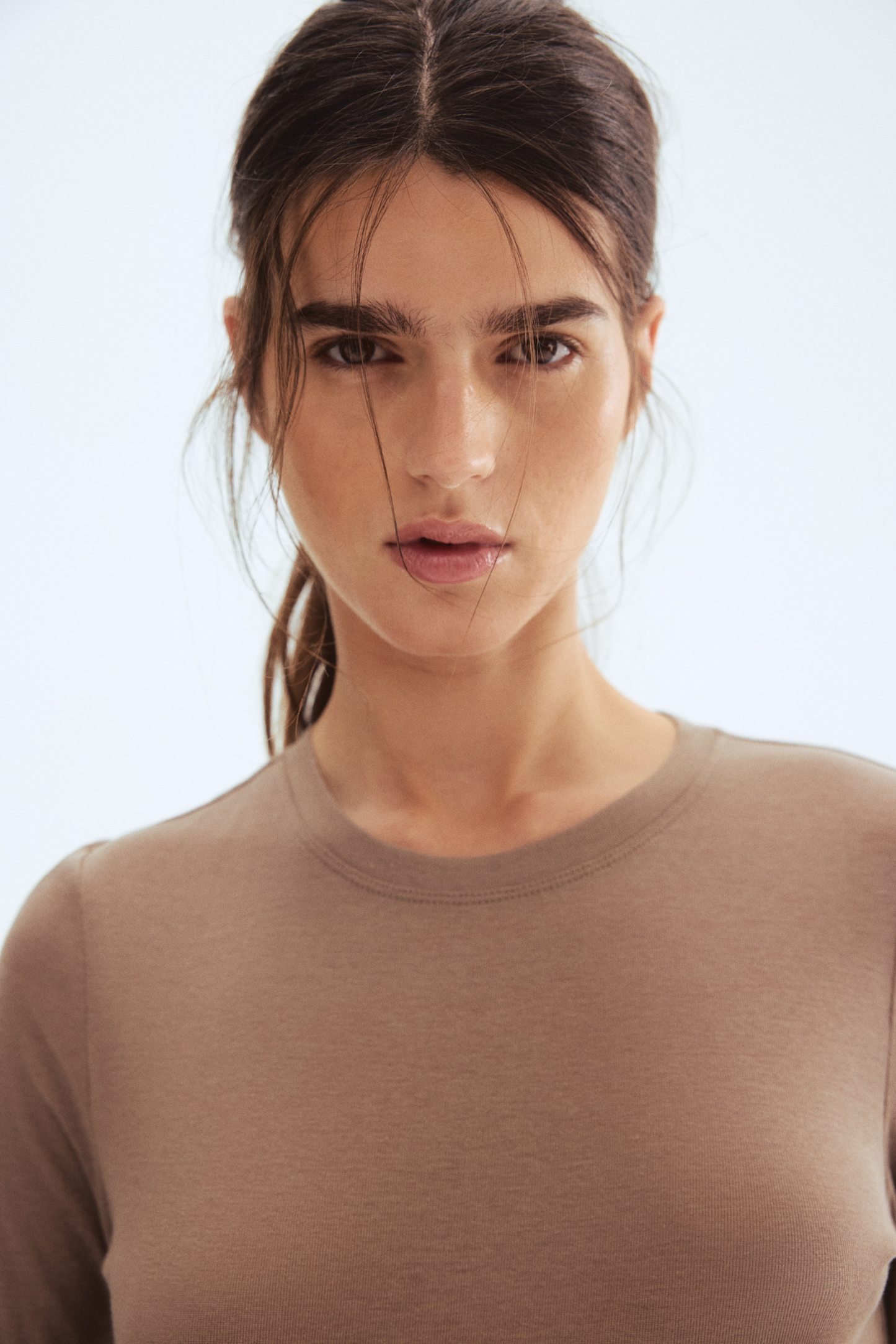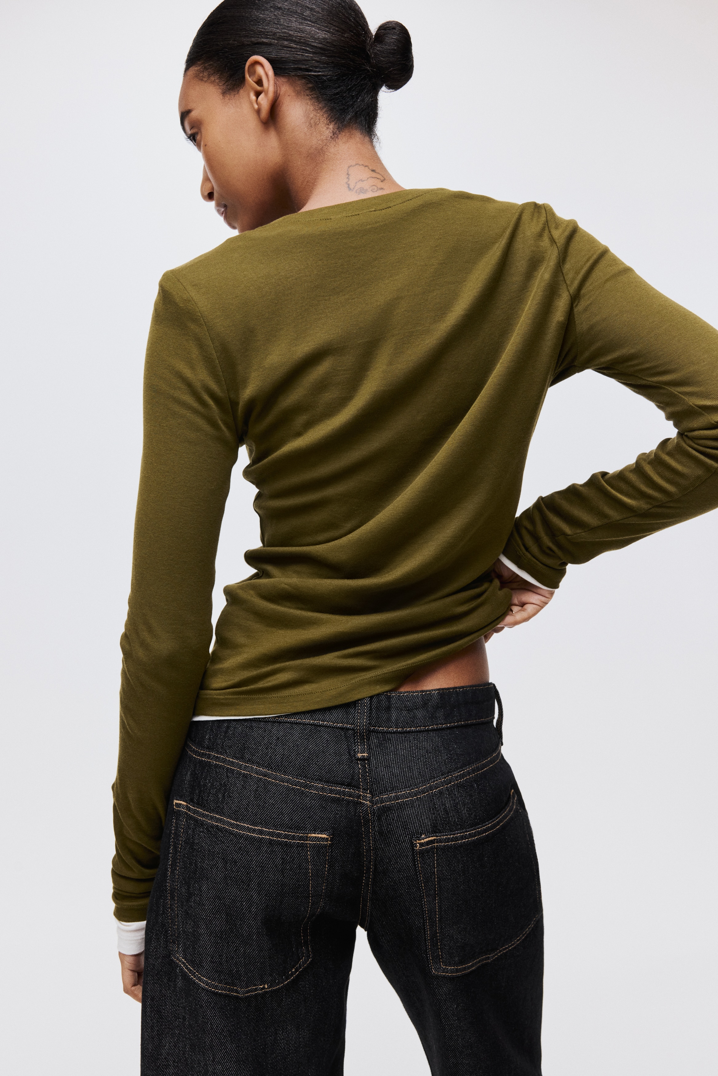 Fitted top in sheer pima cotton jersey with a round neckline and extra-long sleeves.