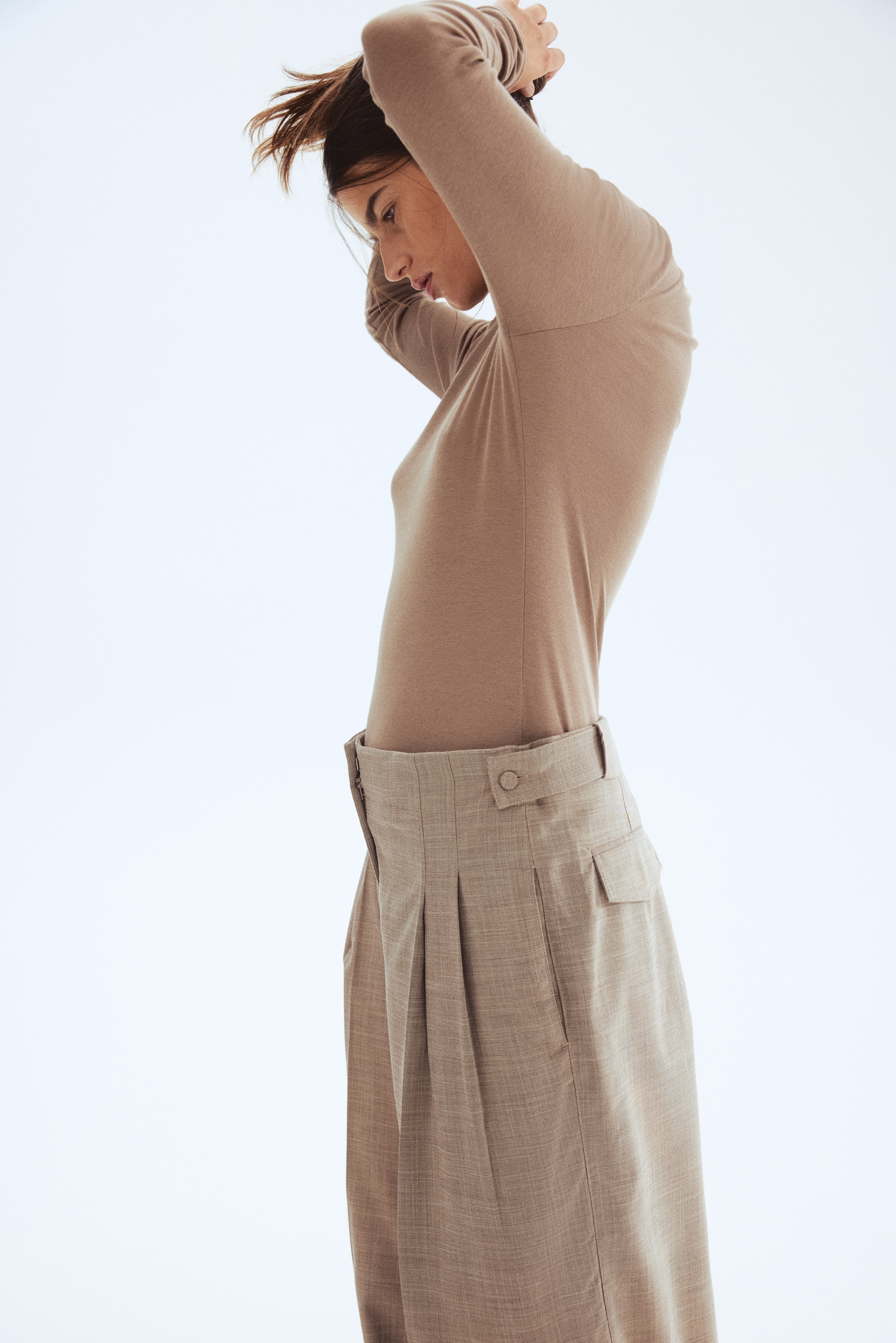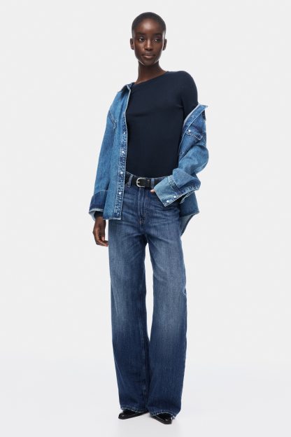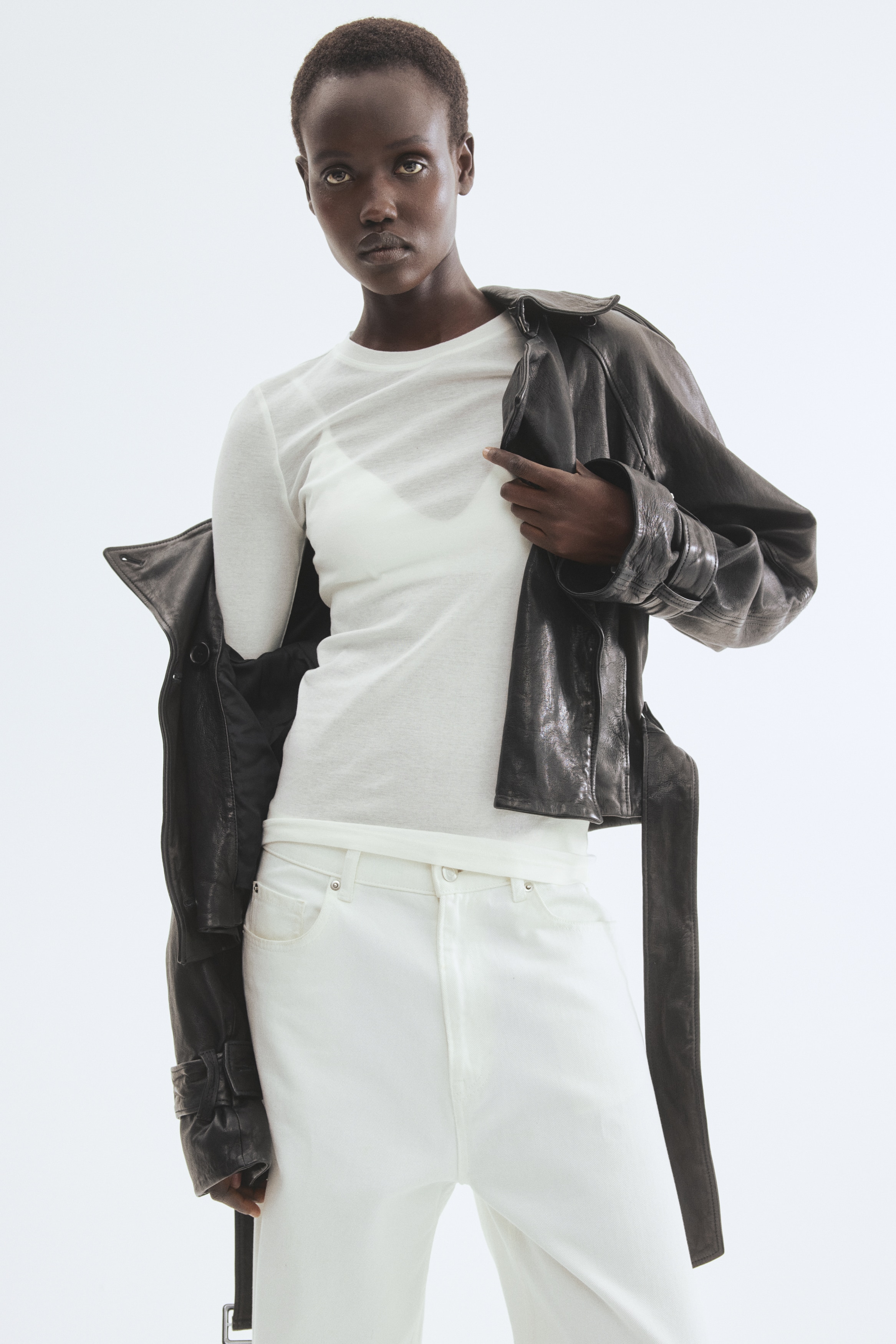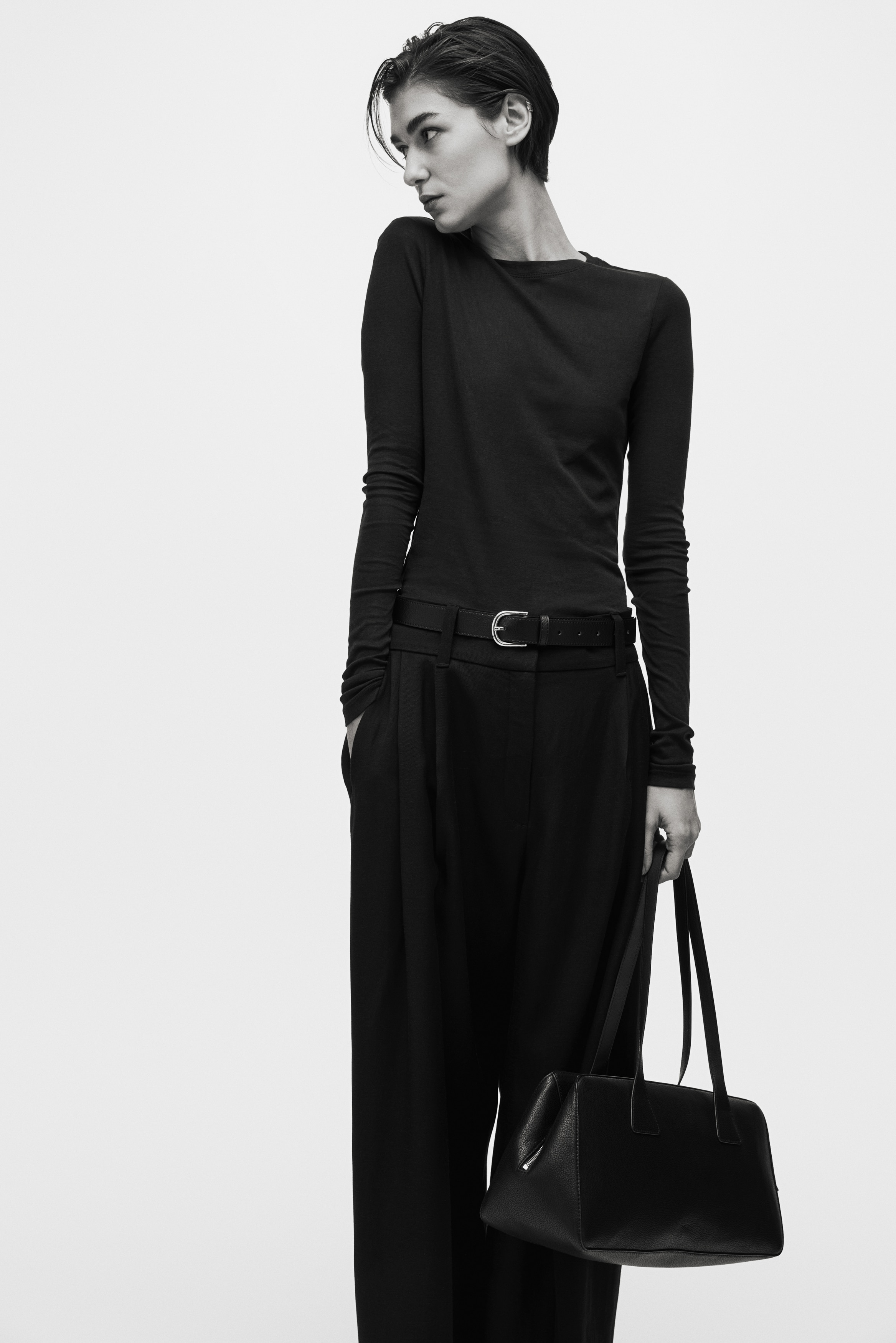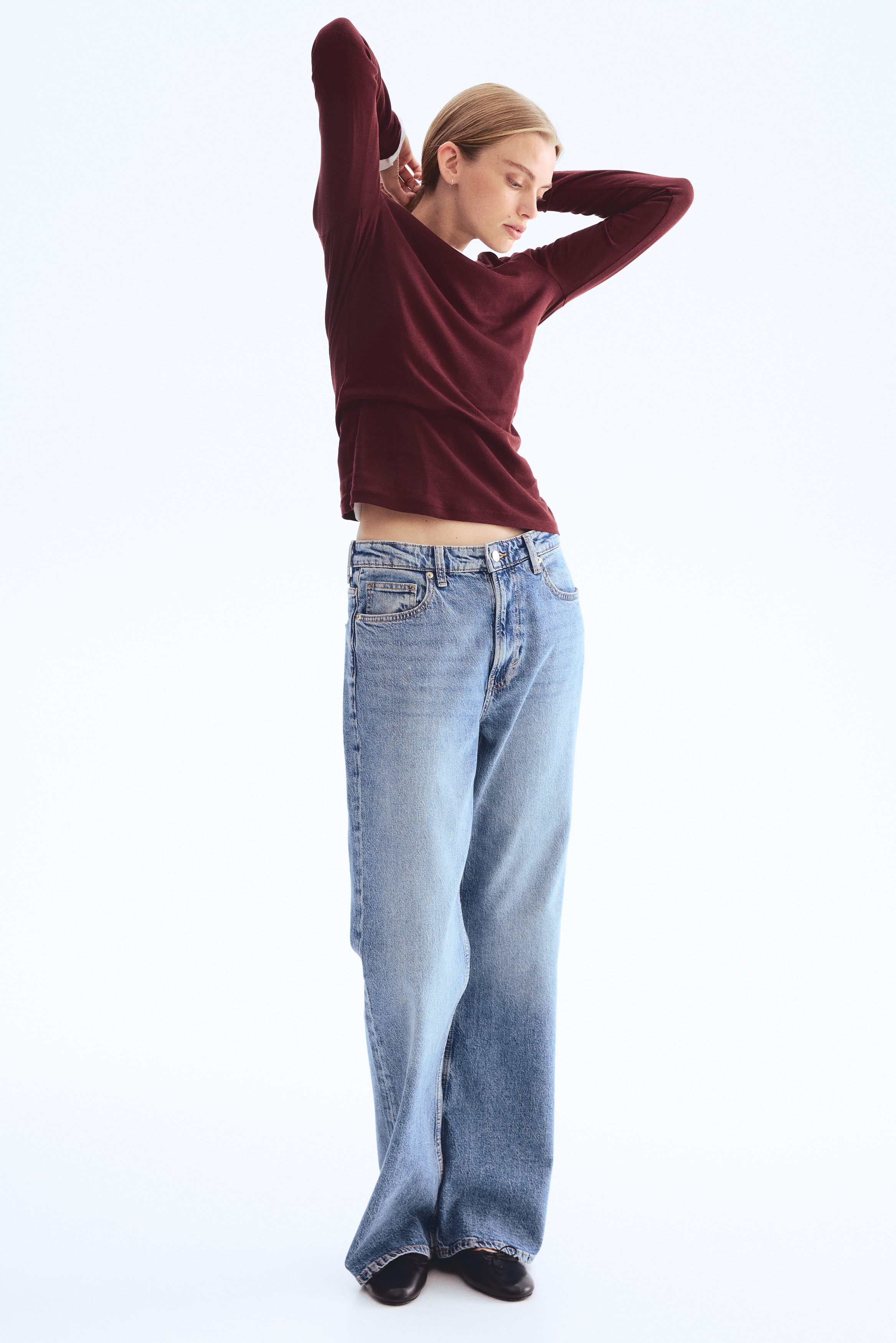Fitted top in sheer pima cotton jersey with a round neckline and extra-long sleeves.