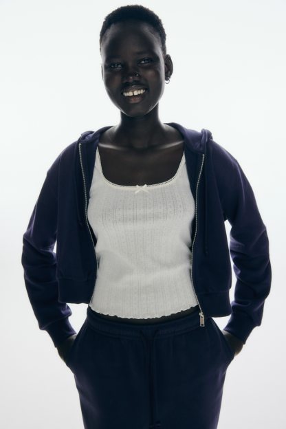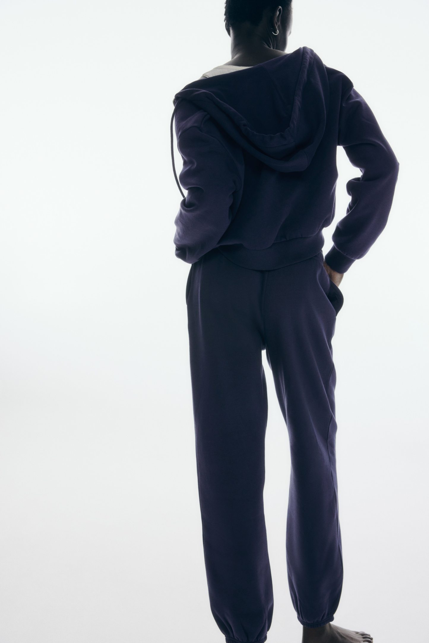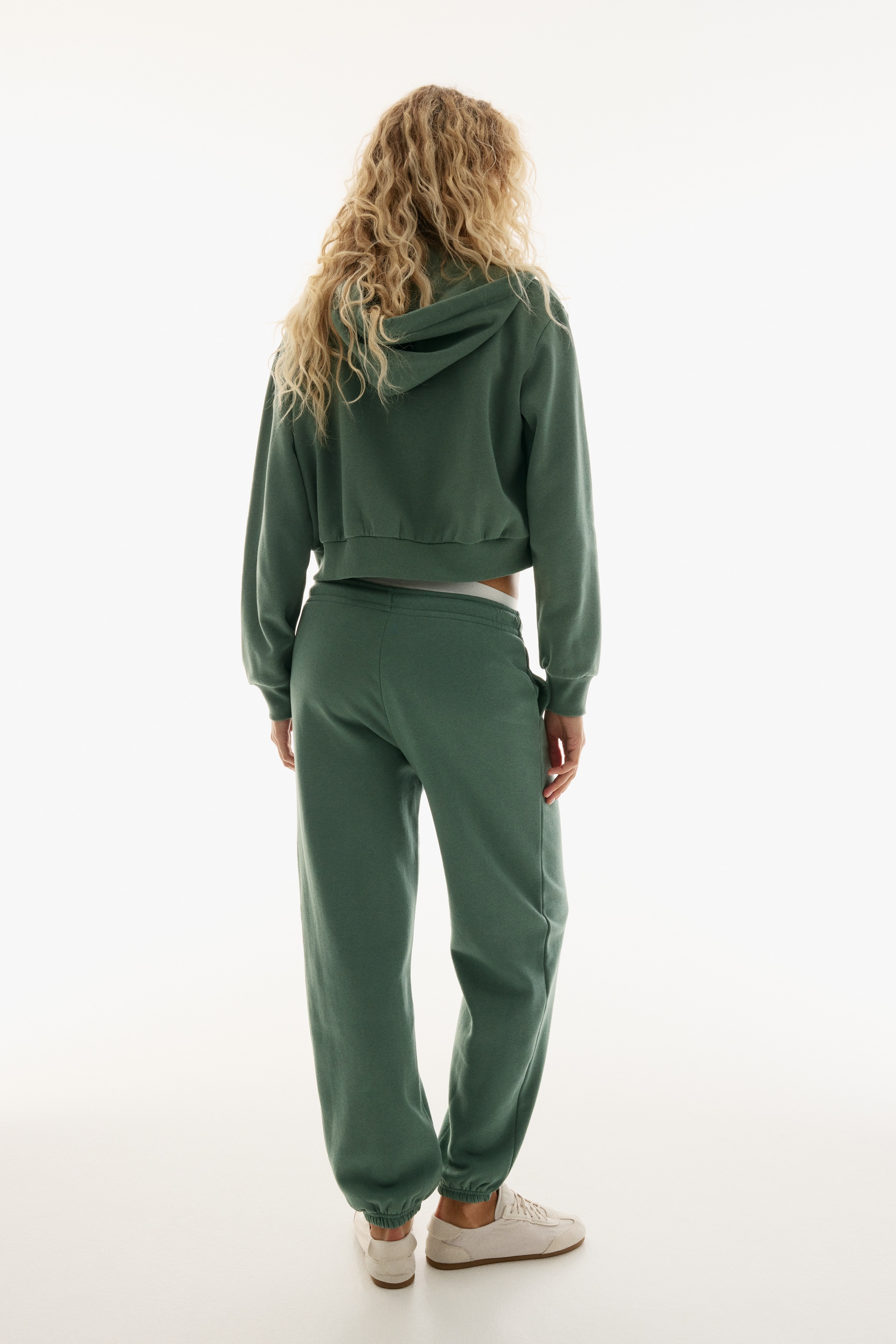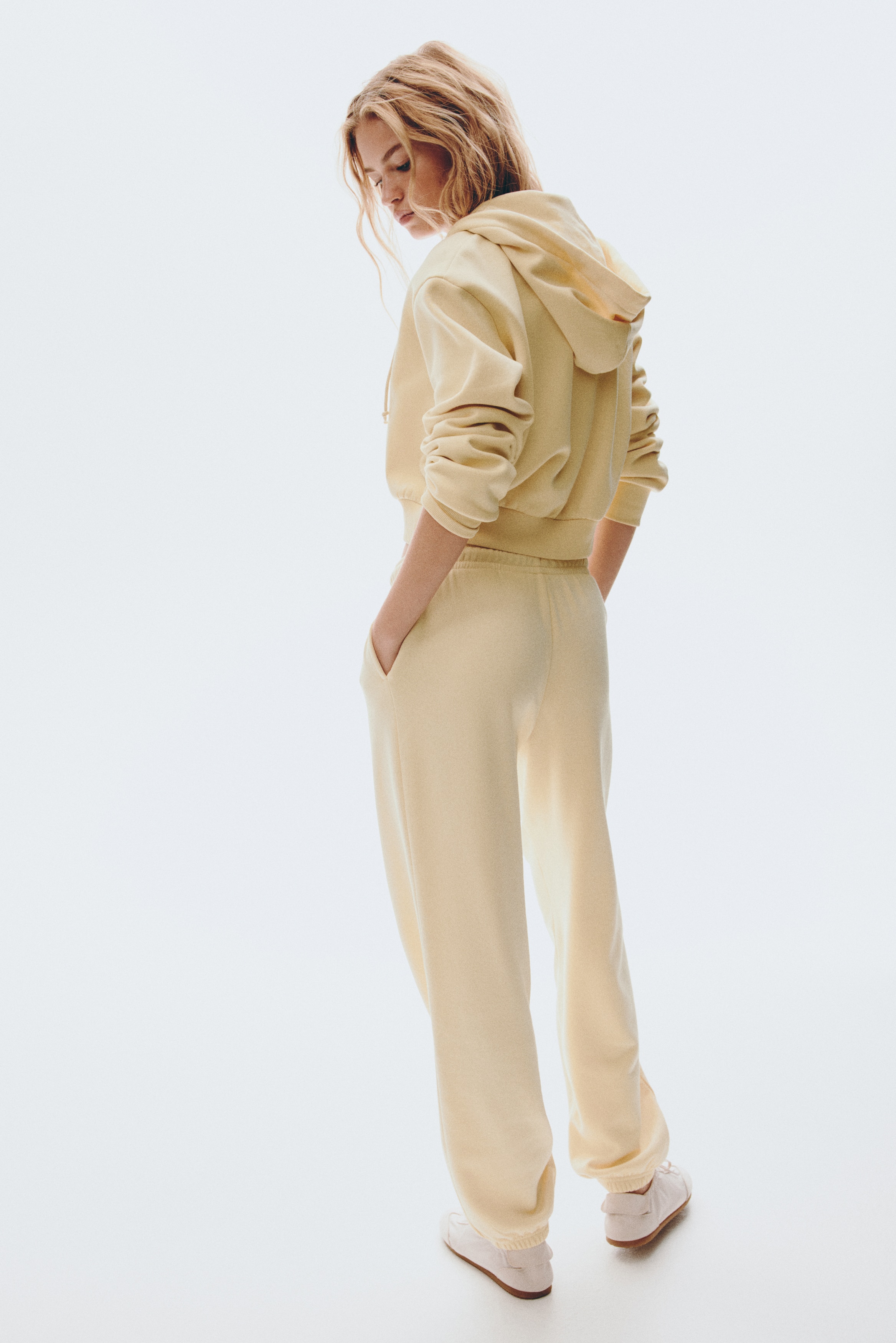 Joggers in sweatshirt fabric with a soft brushed inside. Elasticated smocking and a drawstring at the waist. Discreet side pockets and covered elastication at the hems.