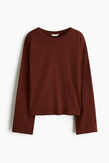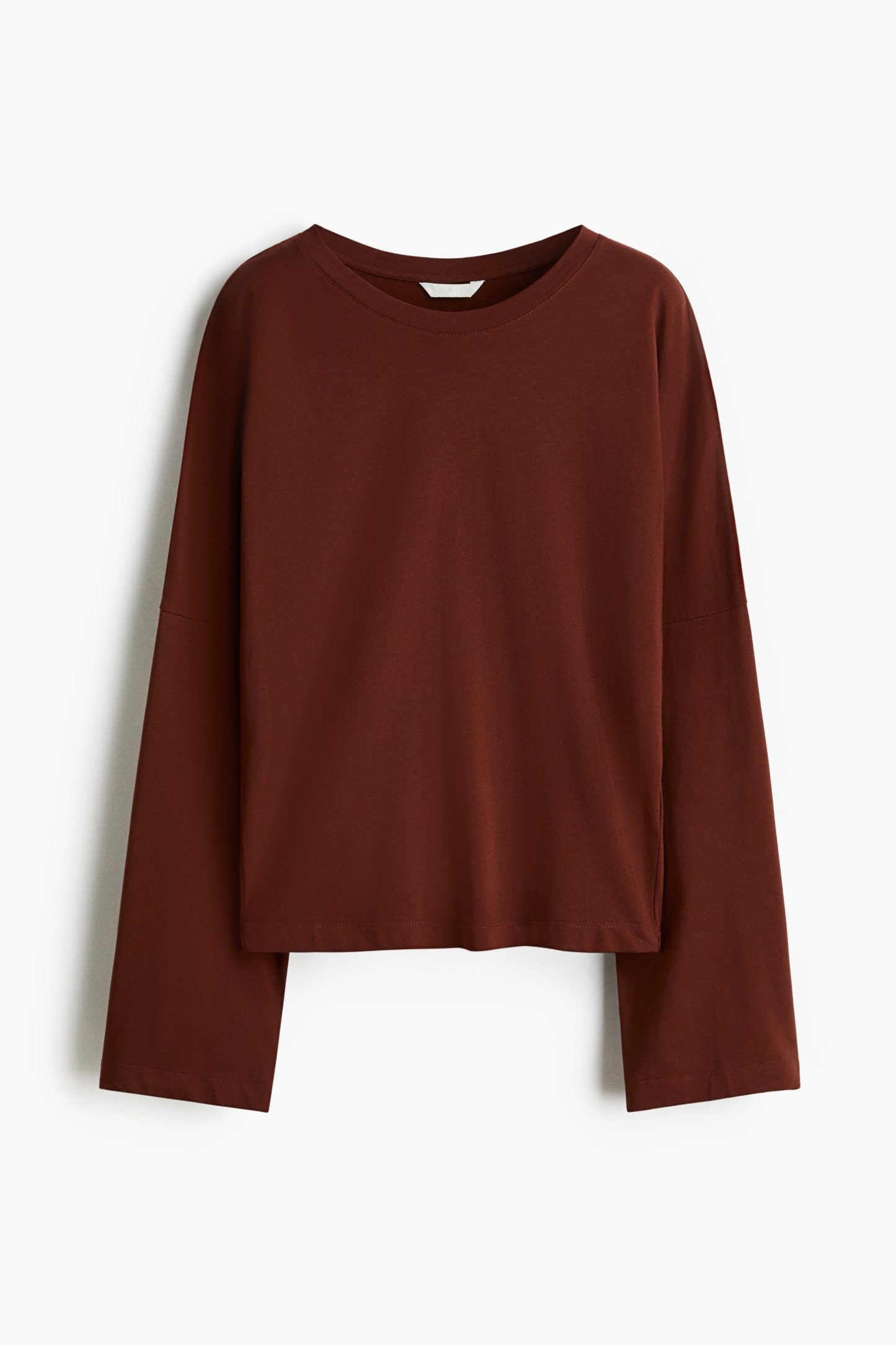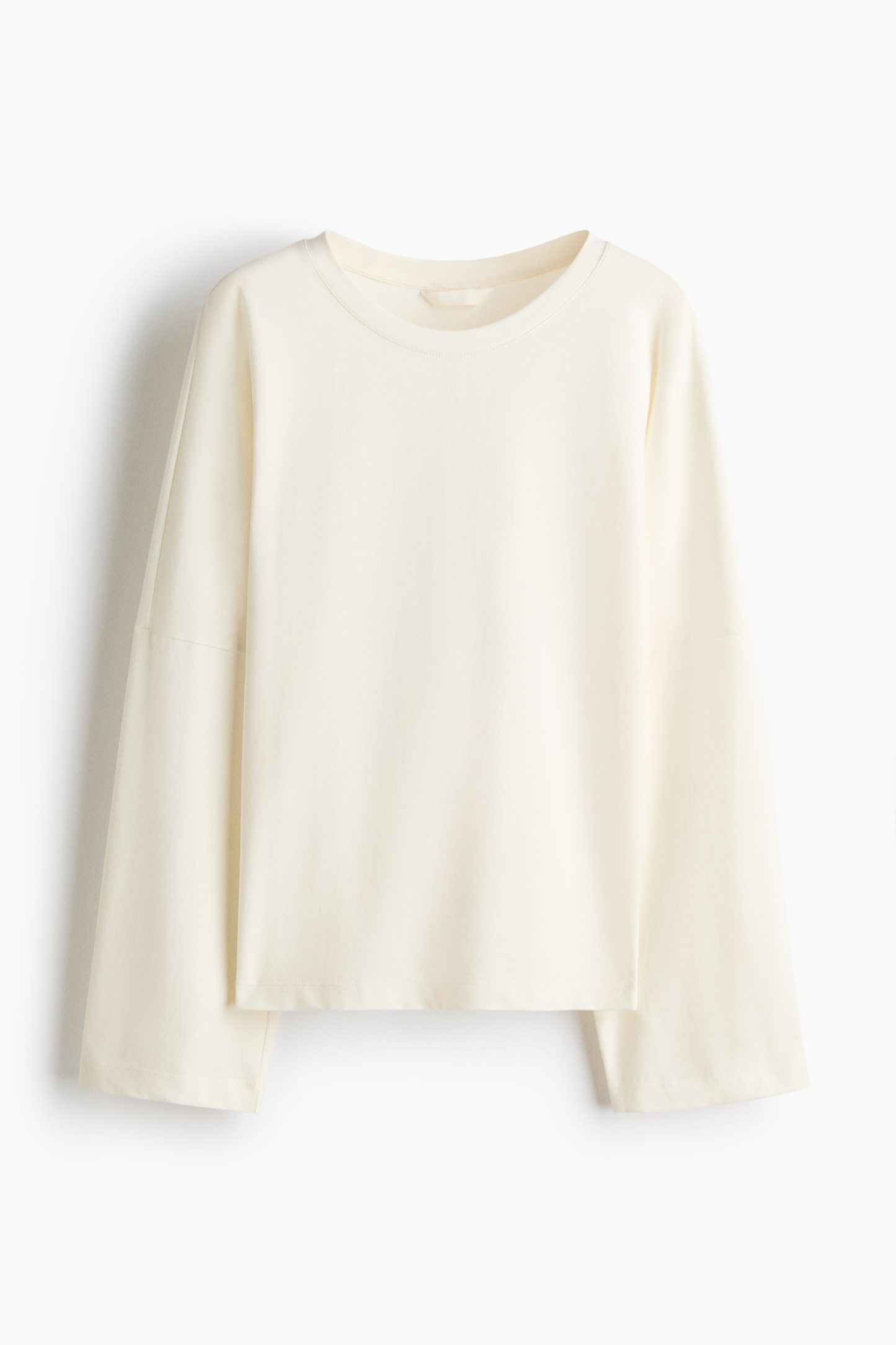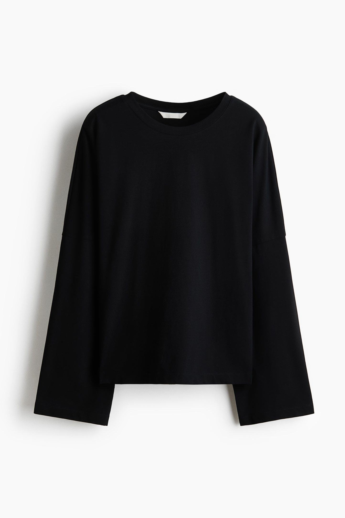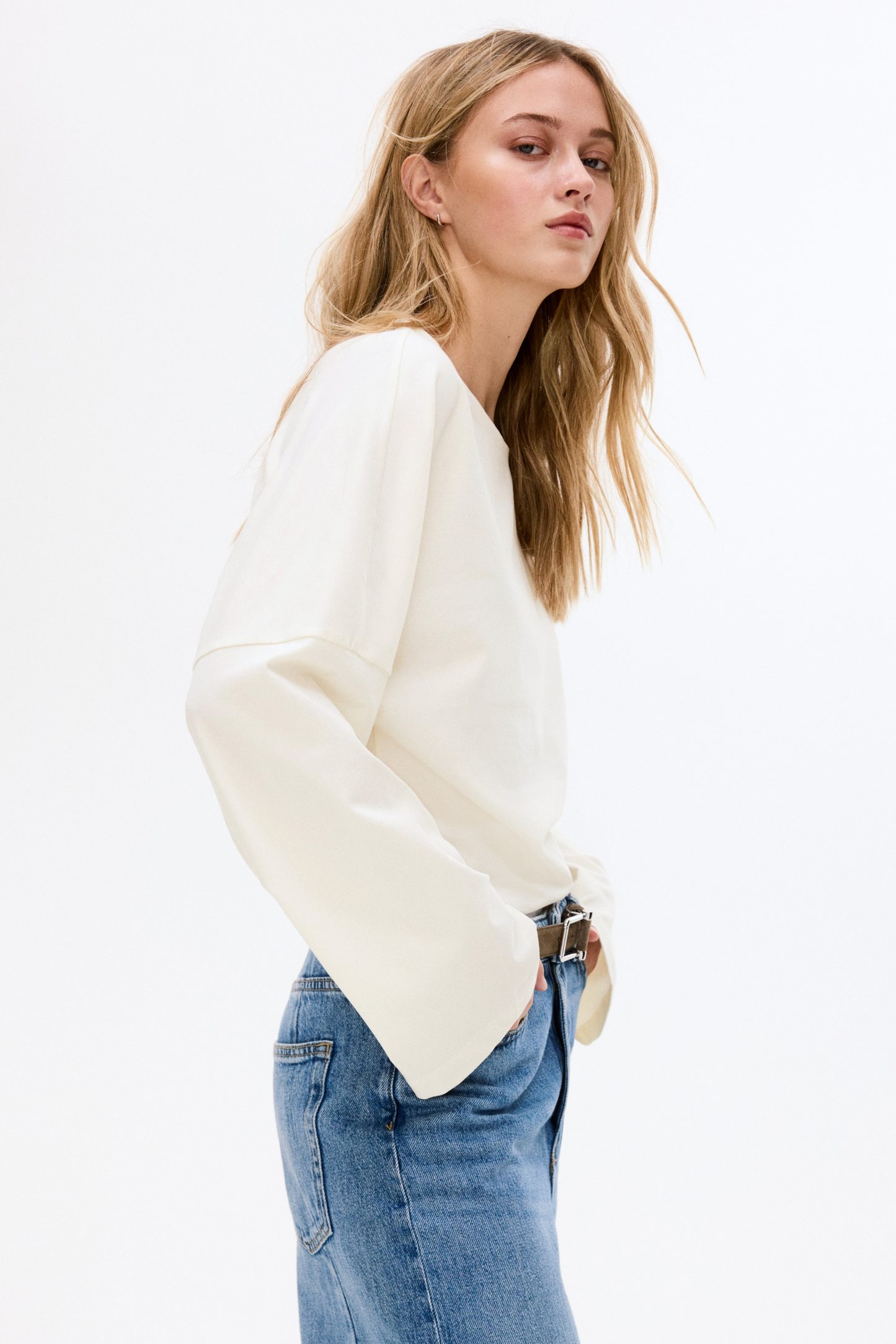 Fitted top in soft cotton jersey with a round neckline and long sleeves. Low dropped shoulders that add a slouchy effect.
