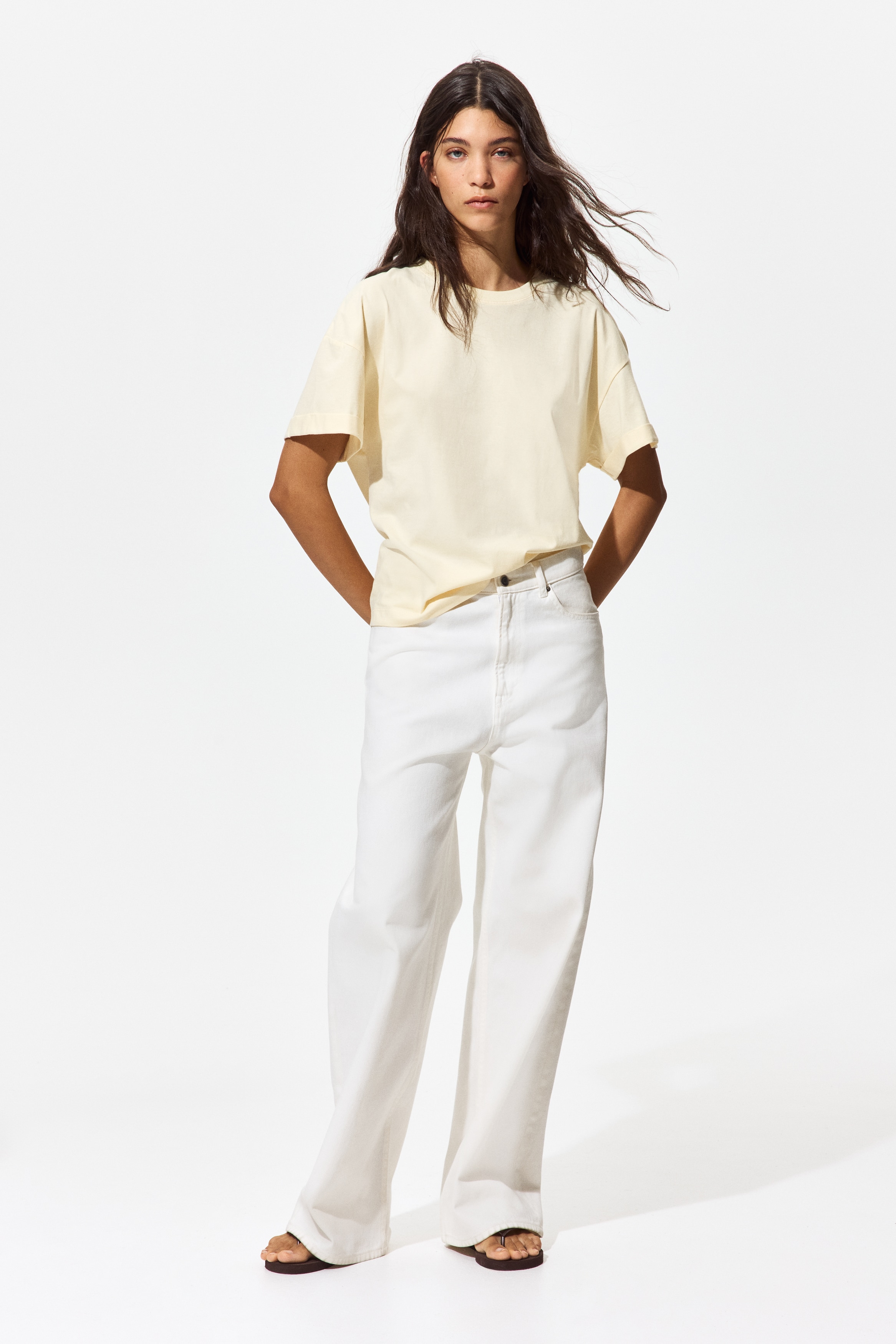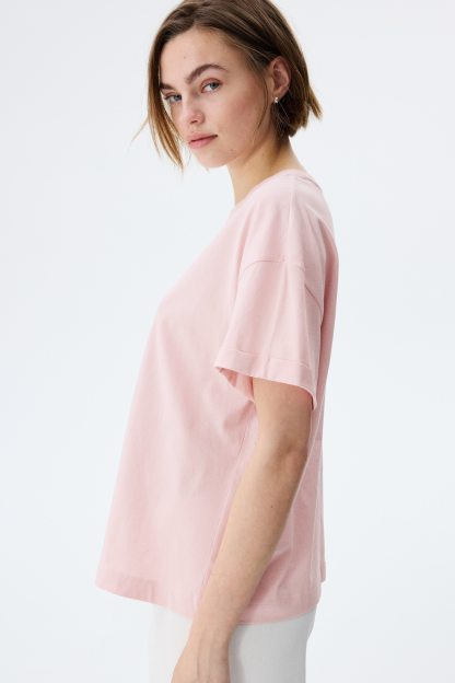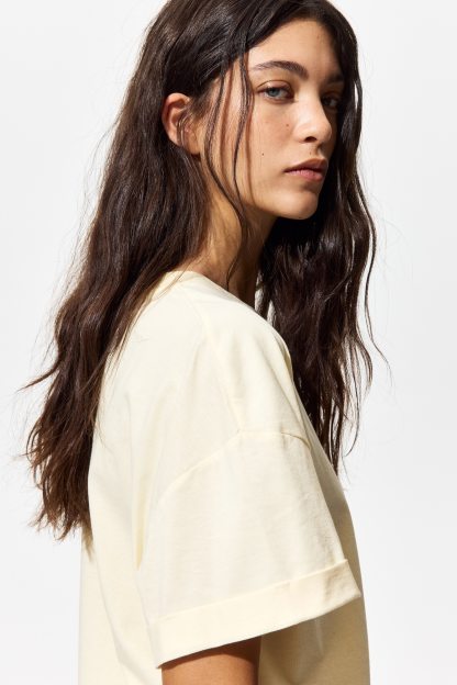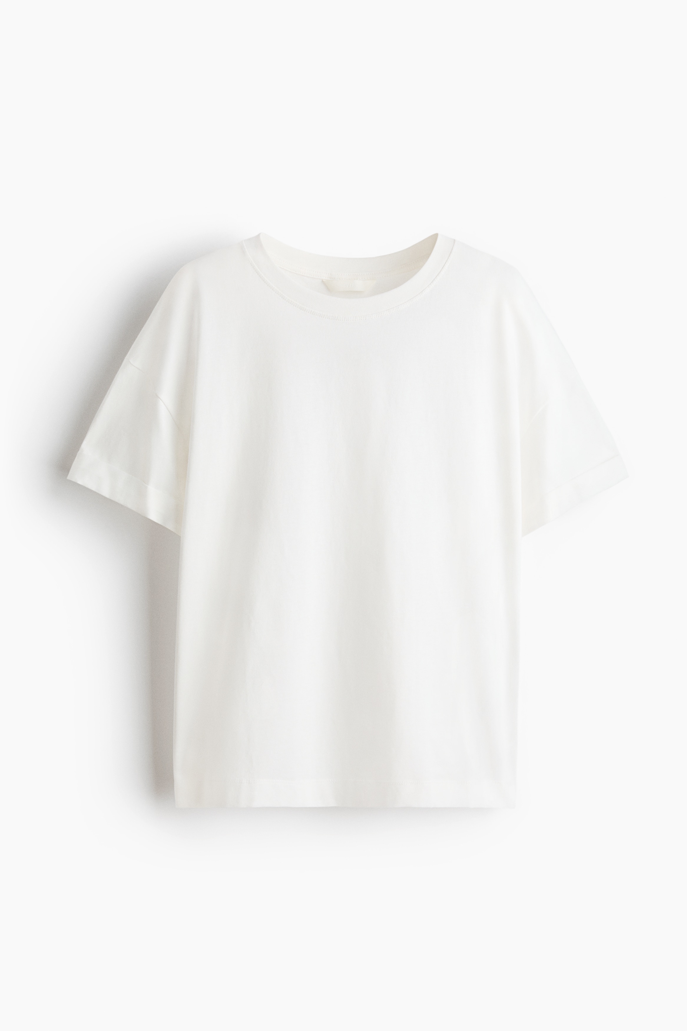 Loose-fit T-shirt in soft cotton jersey with a ribbed trim around the neckline, dropped shoulders and a sewn-in turn-up at the cuffs.