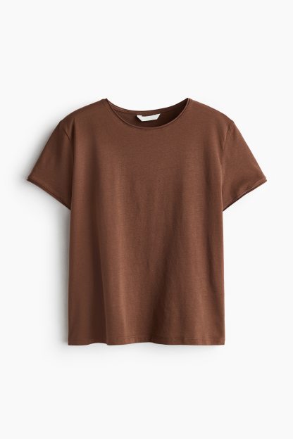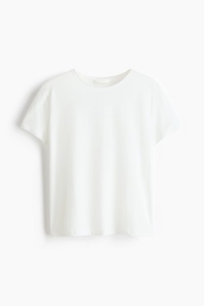 Loose-fit T-shirt in soft cotton jersey with gently dropped shoulders and roll edges around the neckline and cuffs.