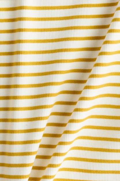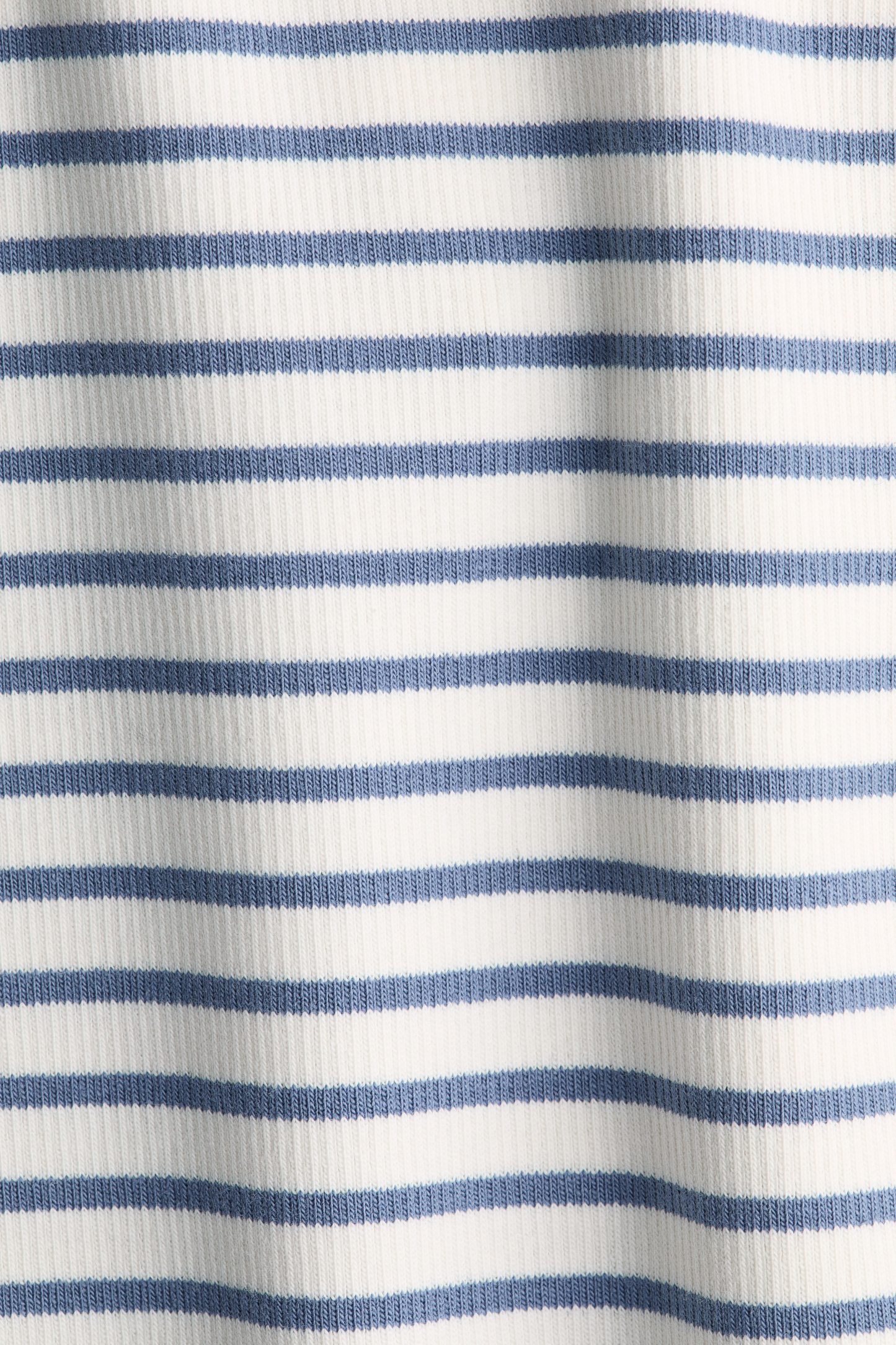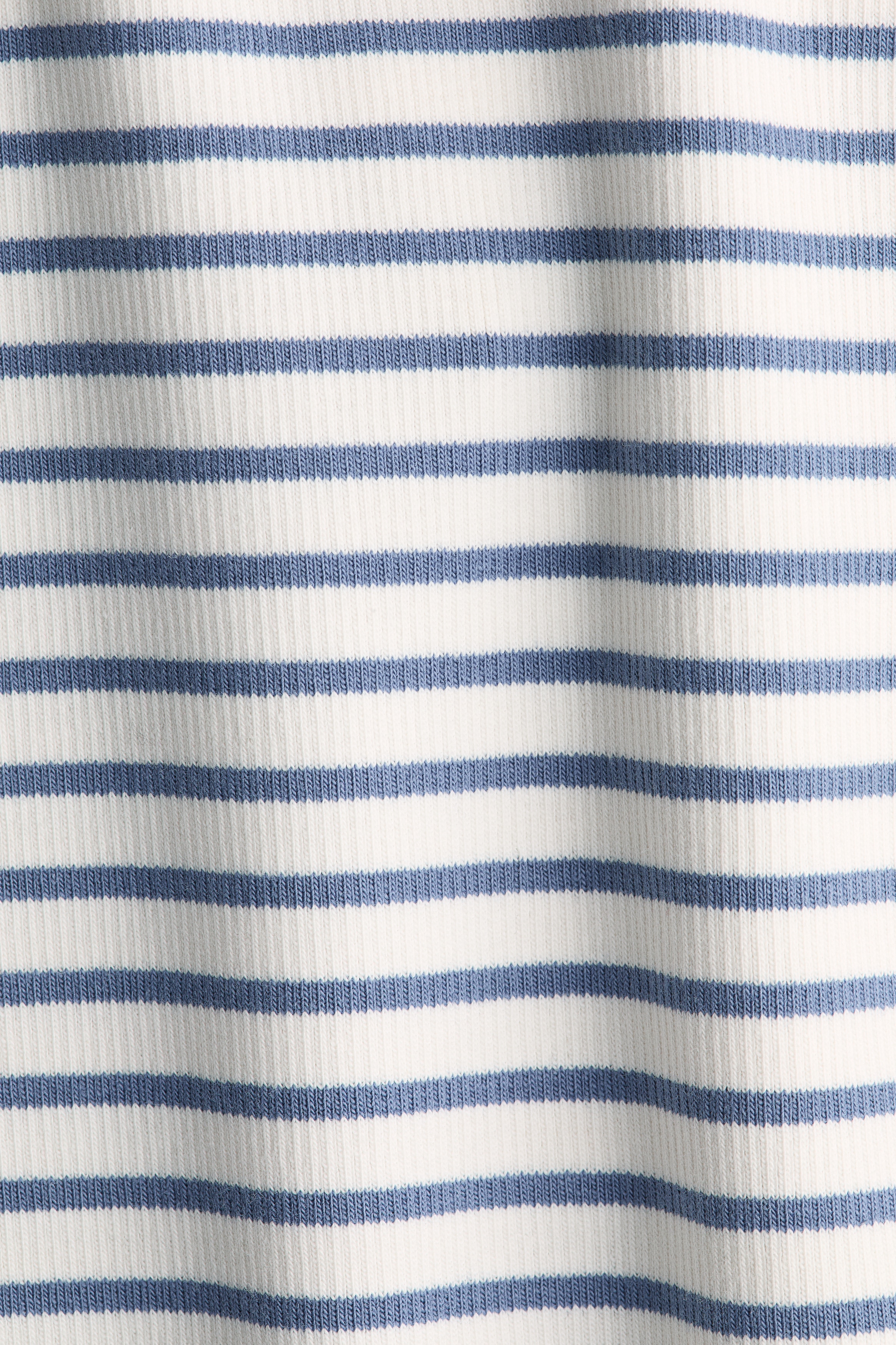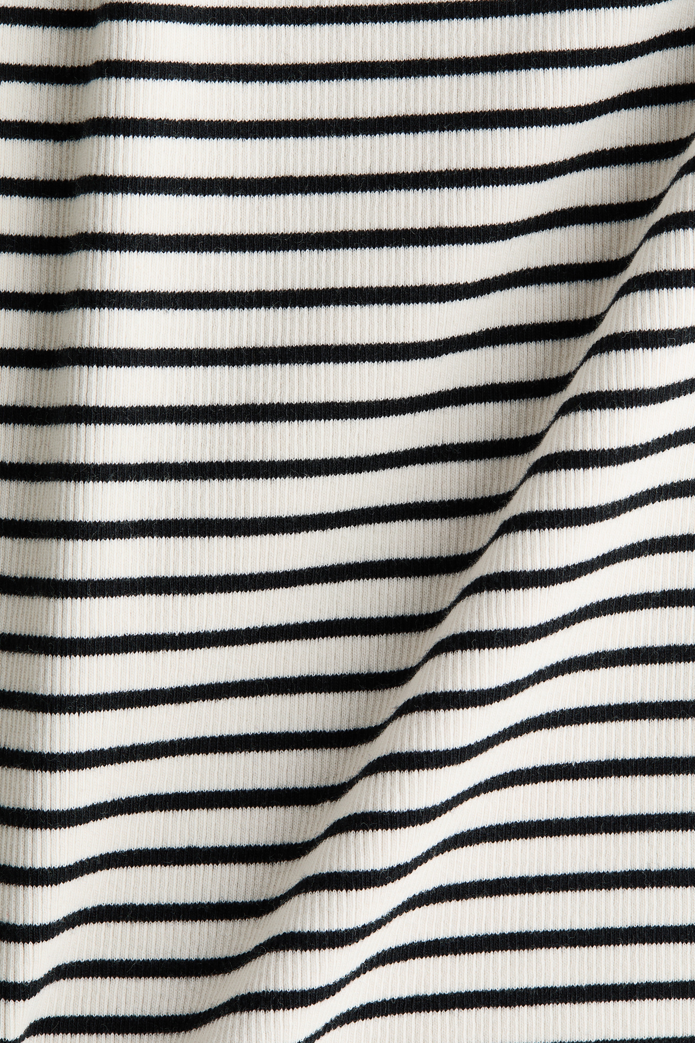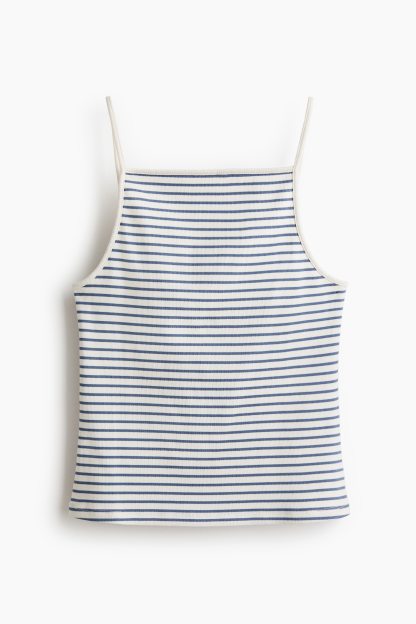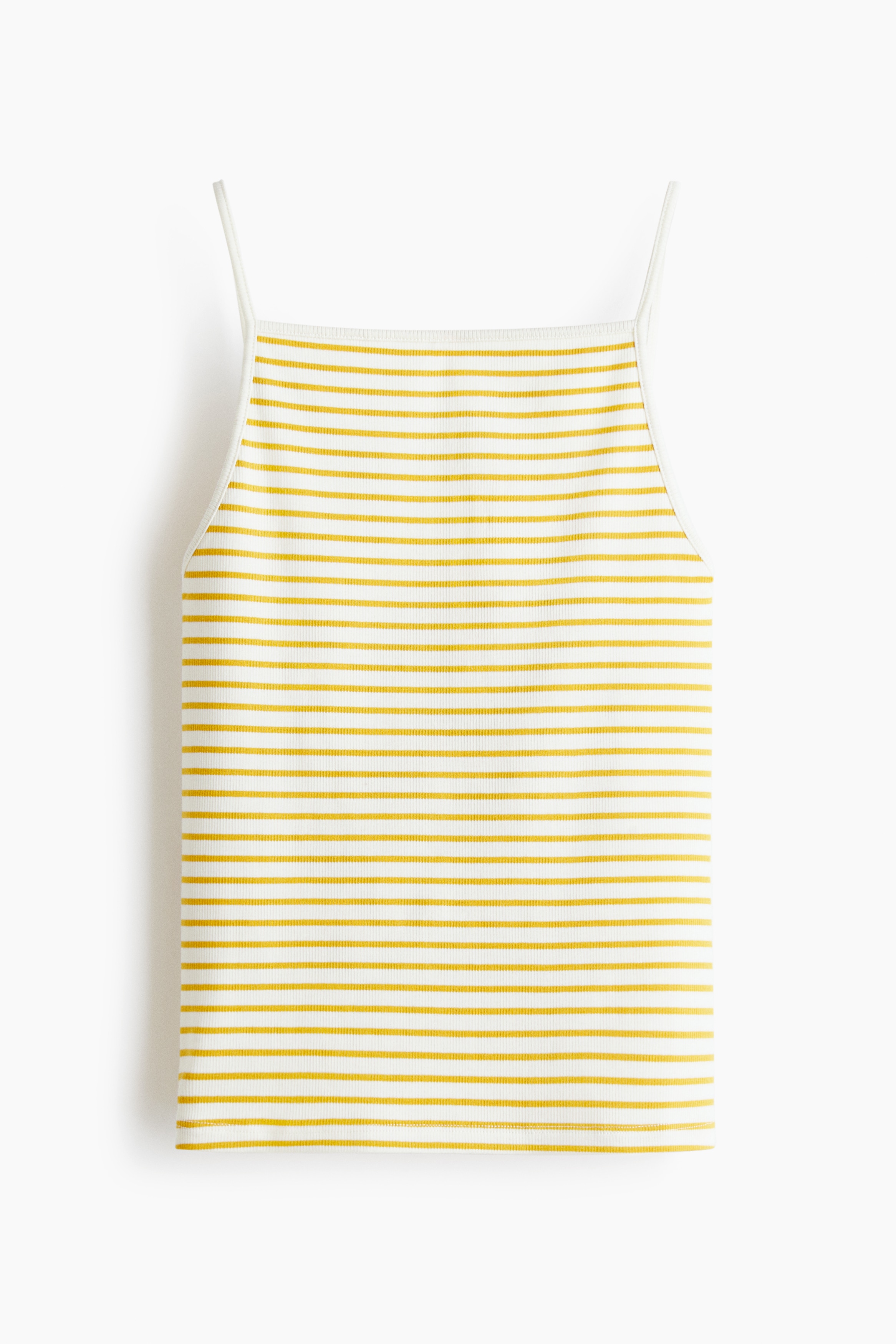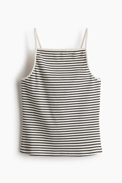 Fitted top in ribbed cotton jersey with a narrow cut at the top, square neckline and narrow shoulder straps.