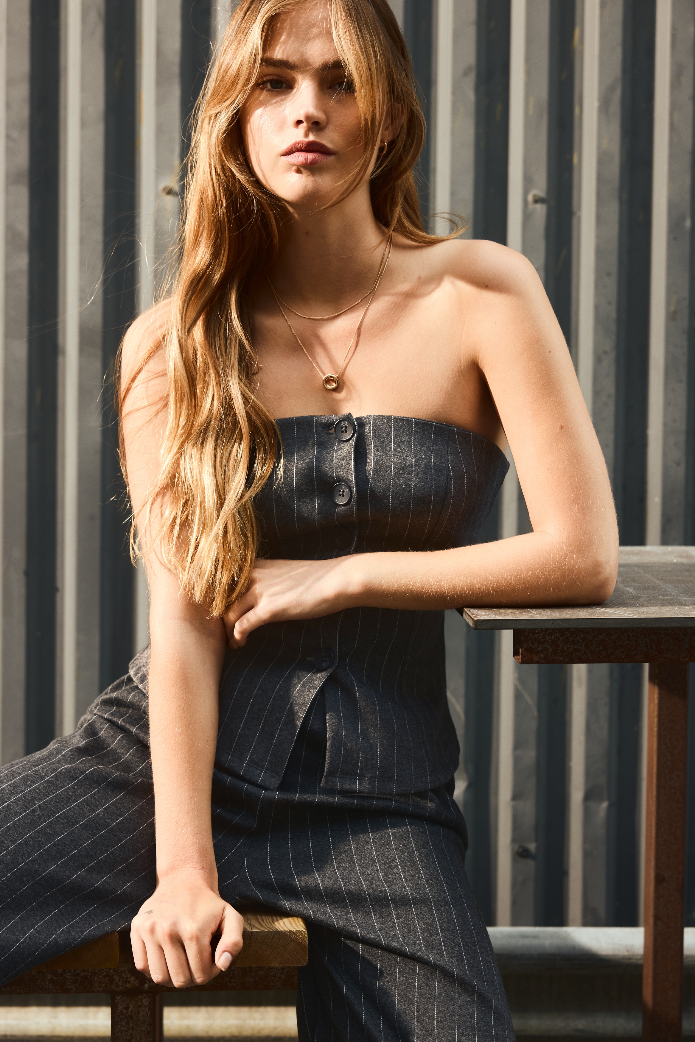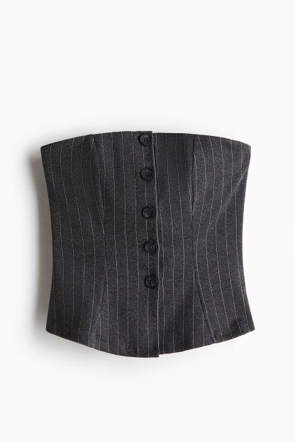 Short, fitted bandeau waistcoat in heavy interlock jersey featuring a straight neckline with a concealed silicone trim and divs at the front.