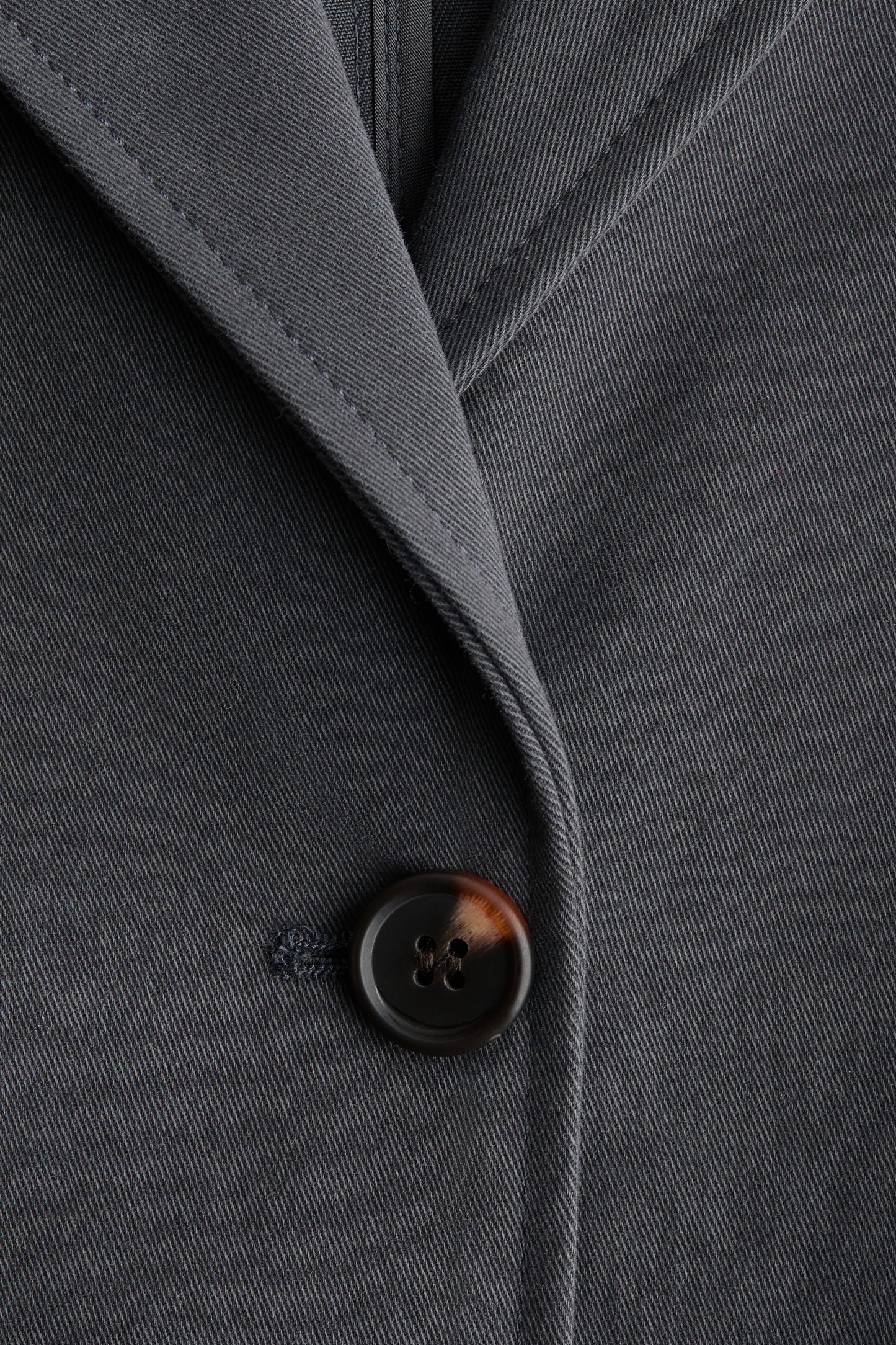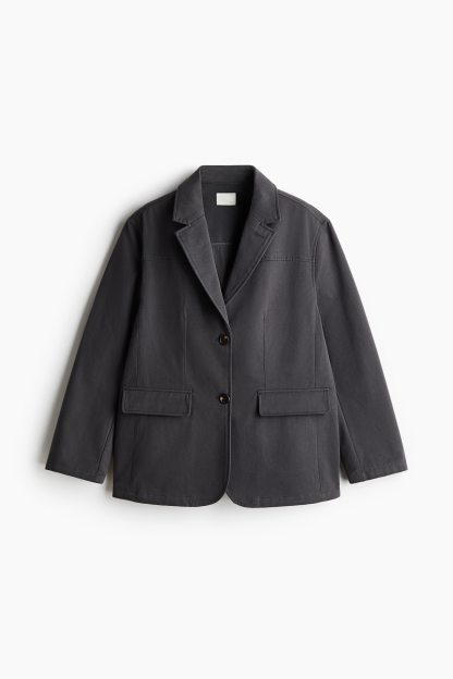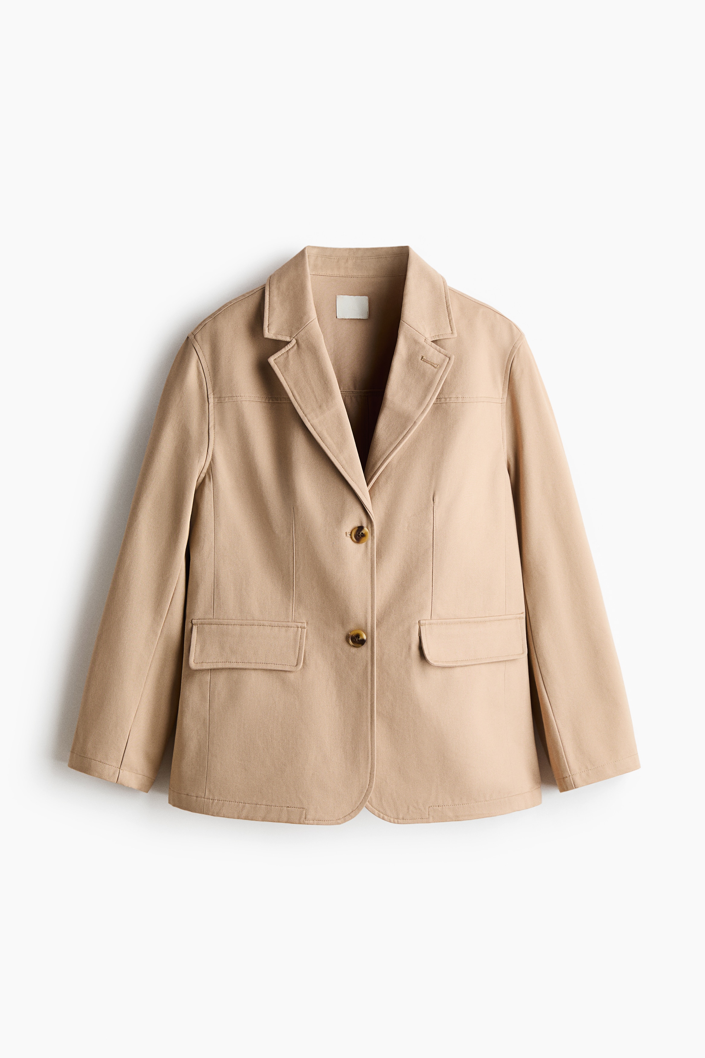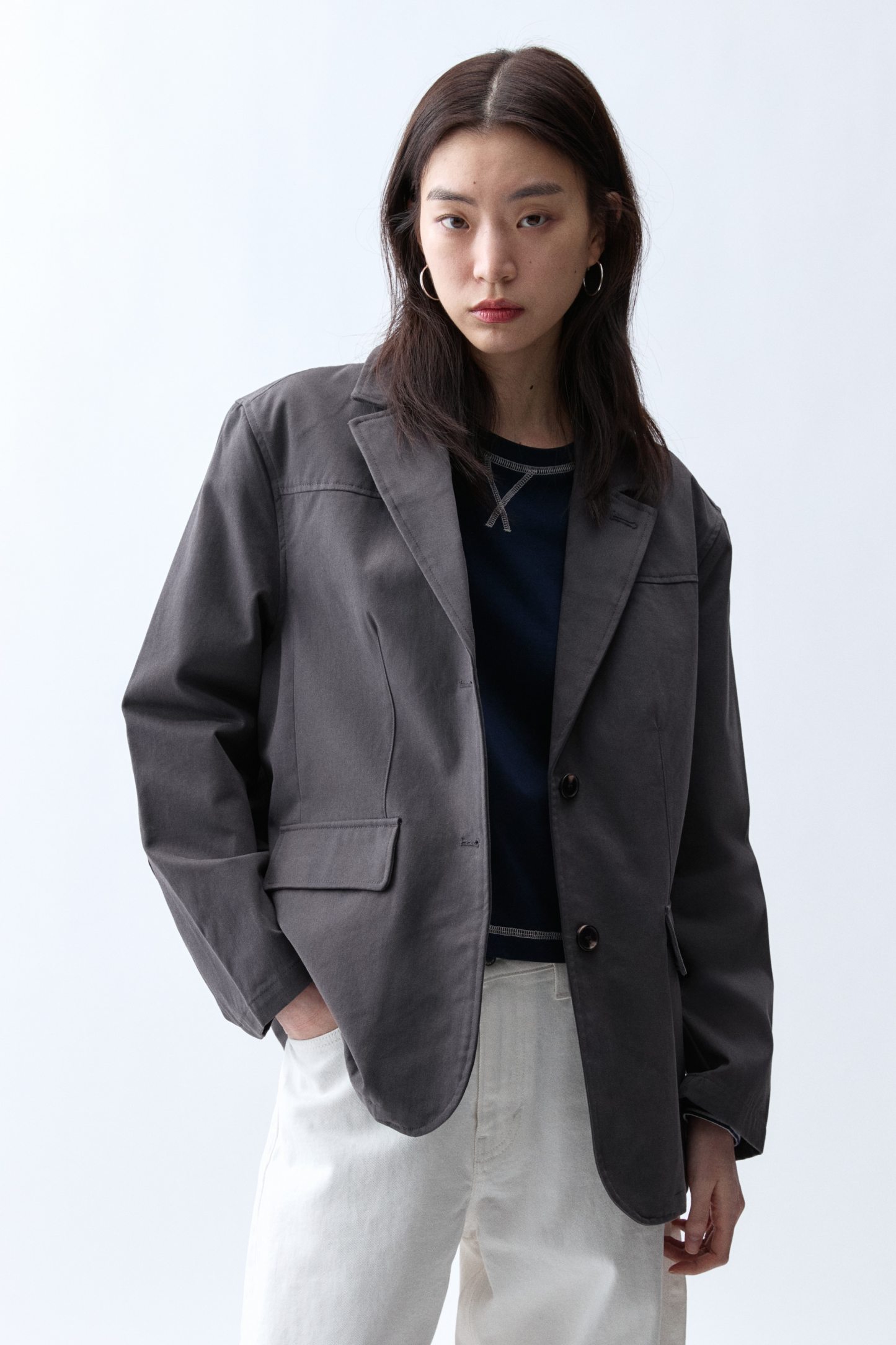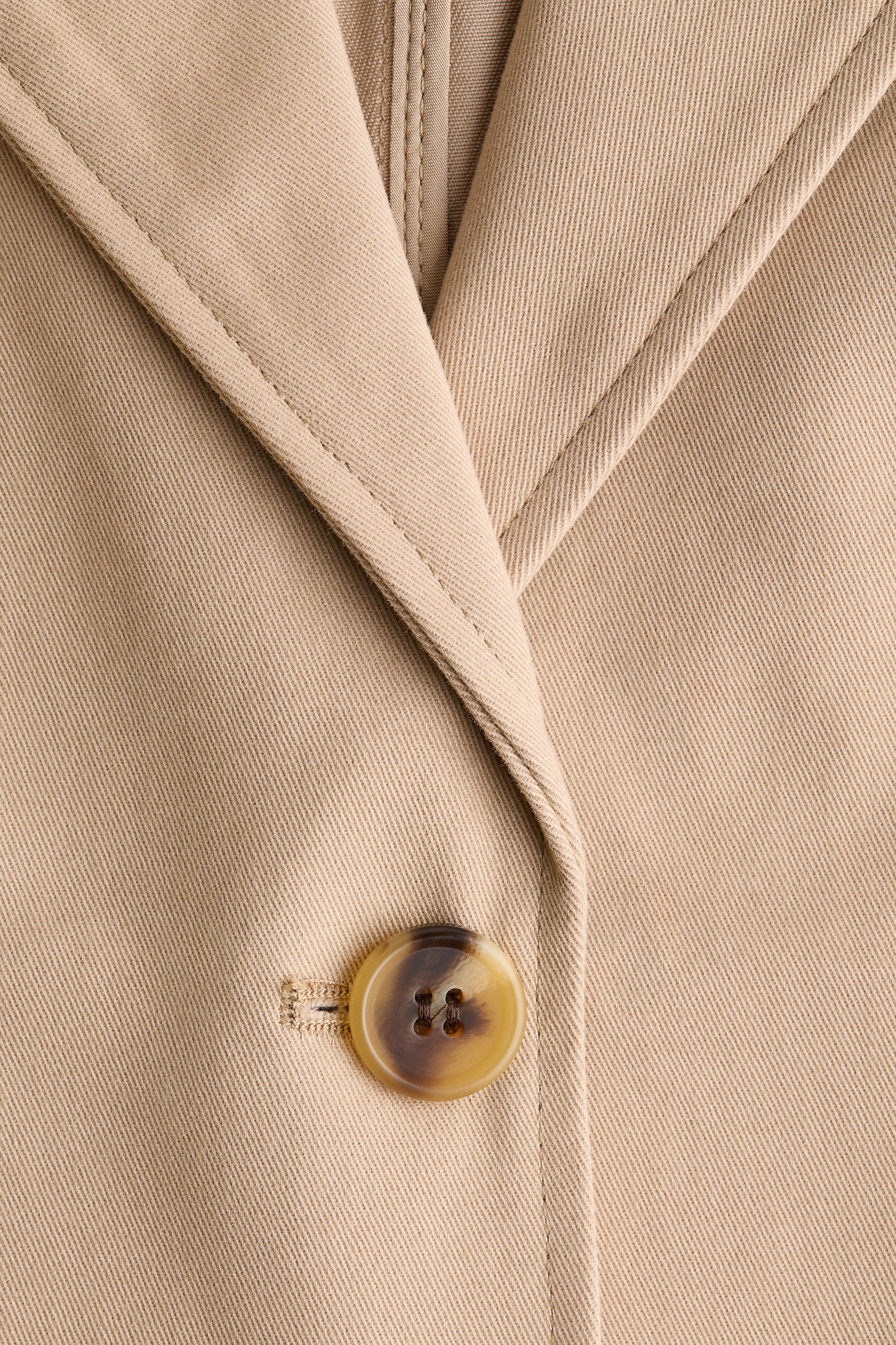Single-breasted blazer in cotton twill with a washed look. Designed with notch lapels, flap front pockets, a yoke at the front and back, and elbow patches. Unlined.