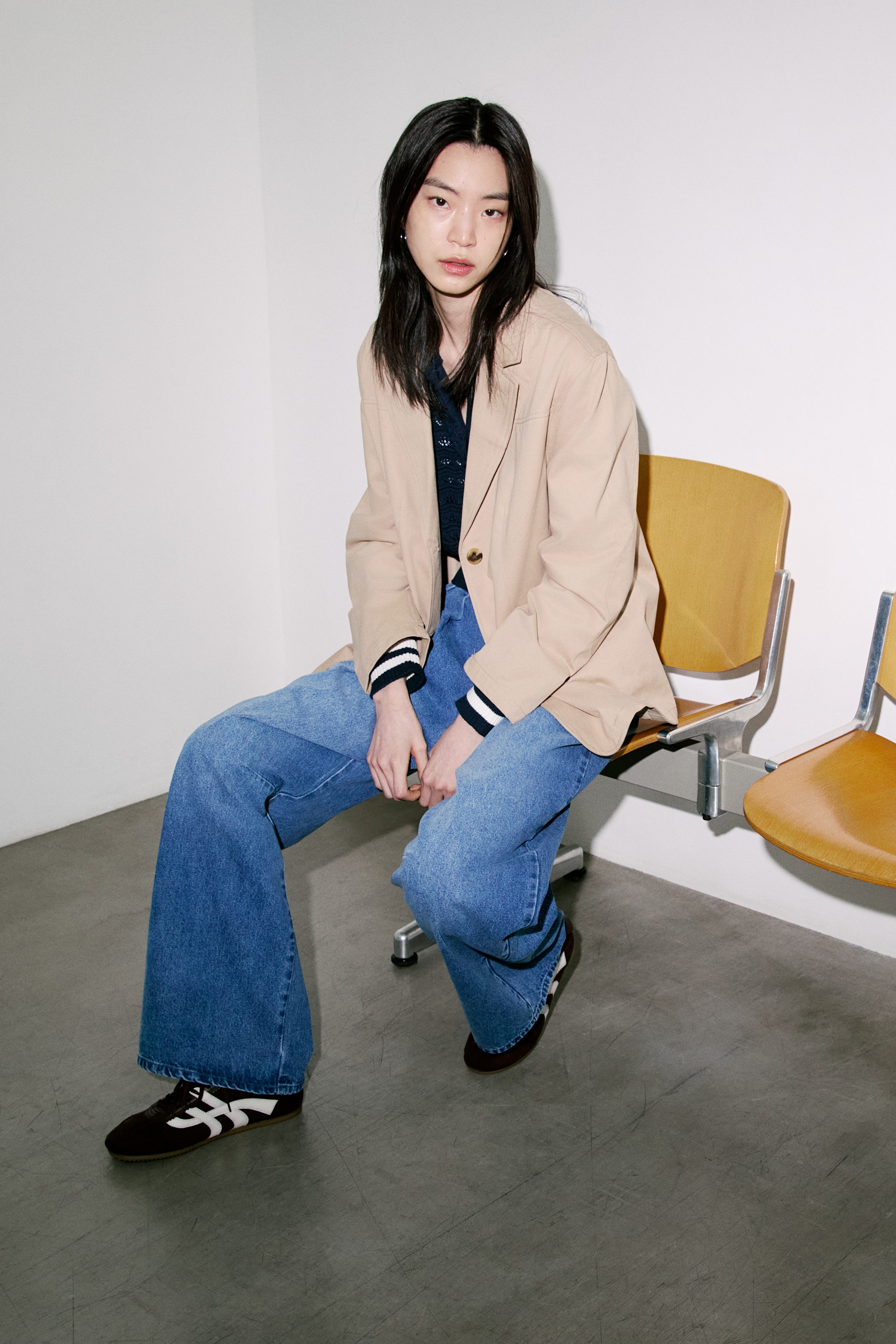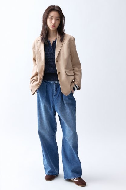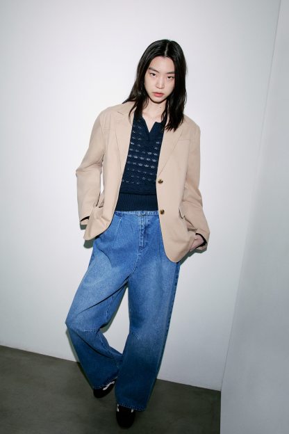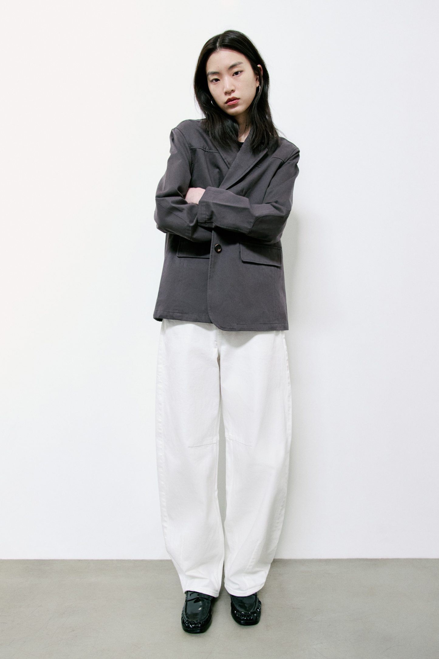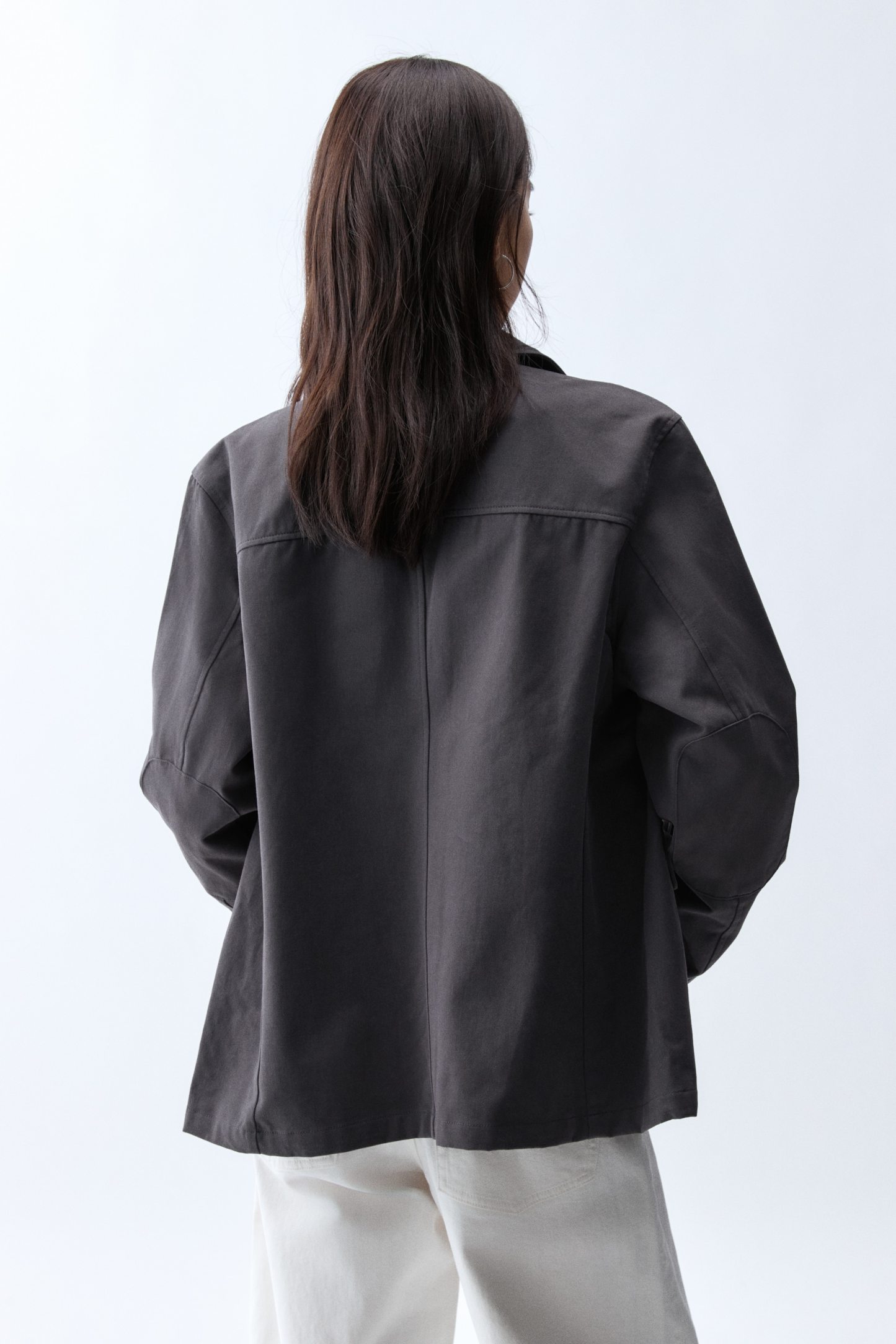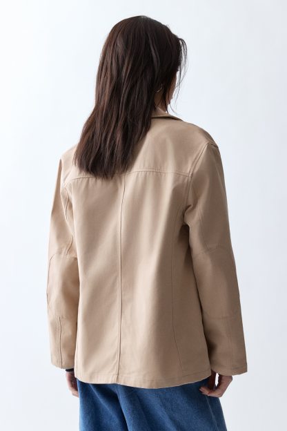 Single-breasted blazer in cotton twill with a washed look. Designed with notch lapels, flap front pockets, a yoke at the front and back, and elbow patches. Unlined.