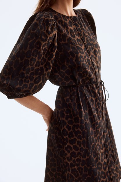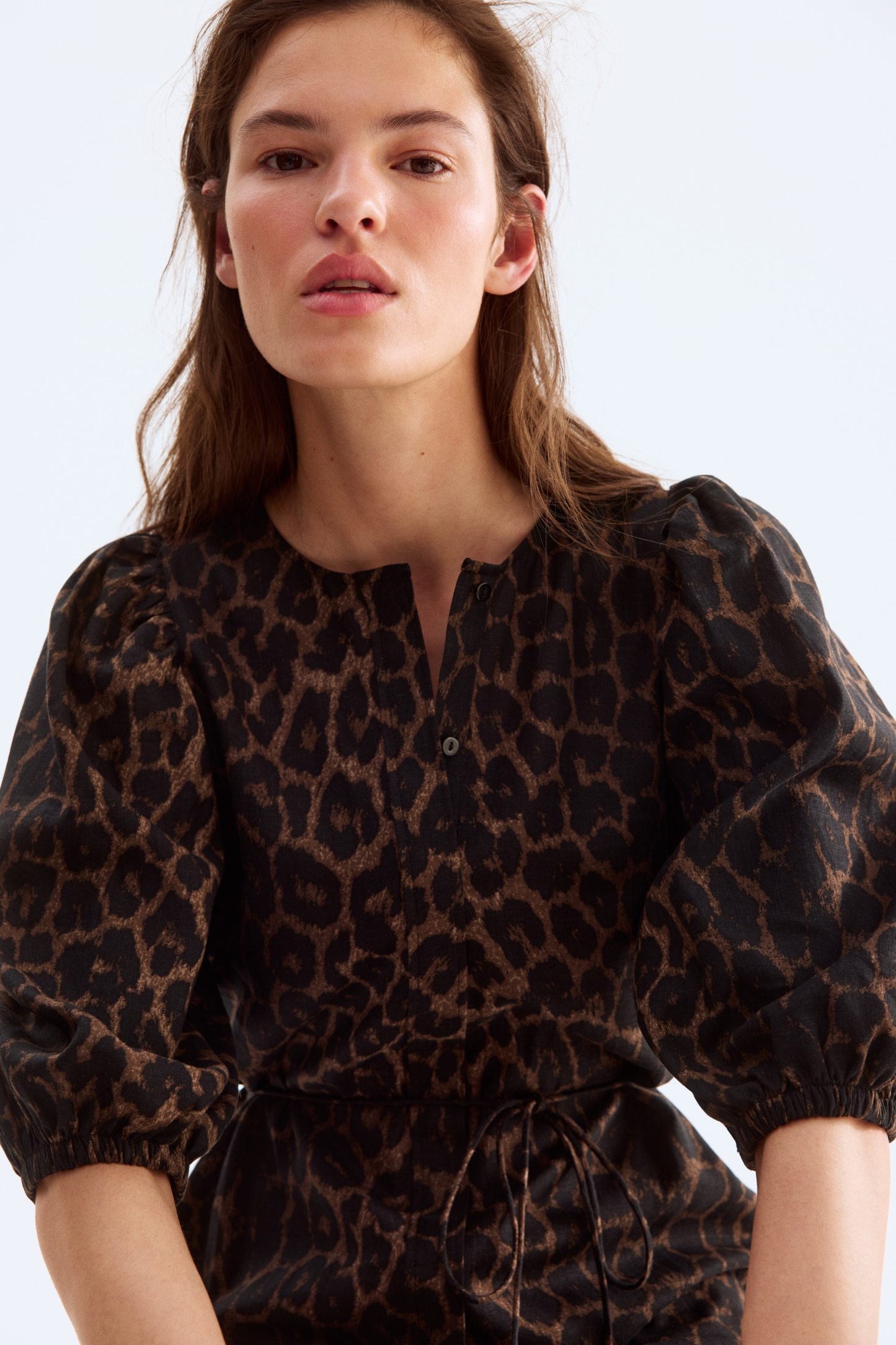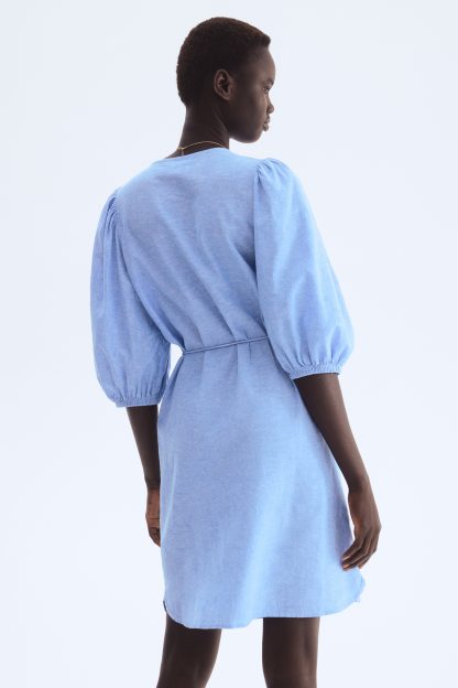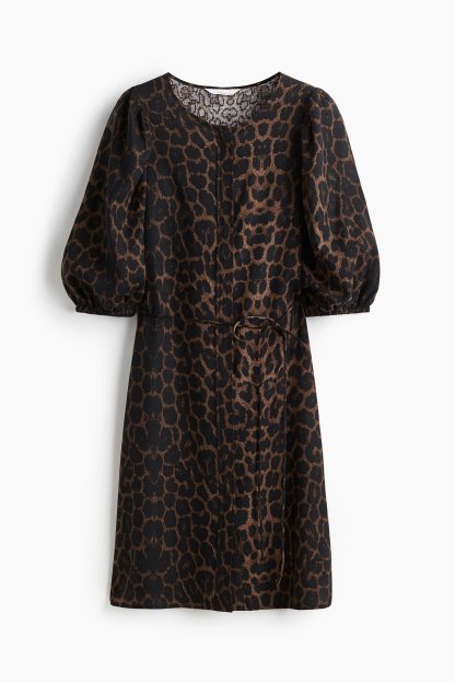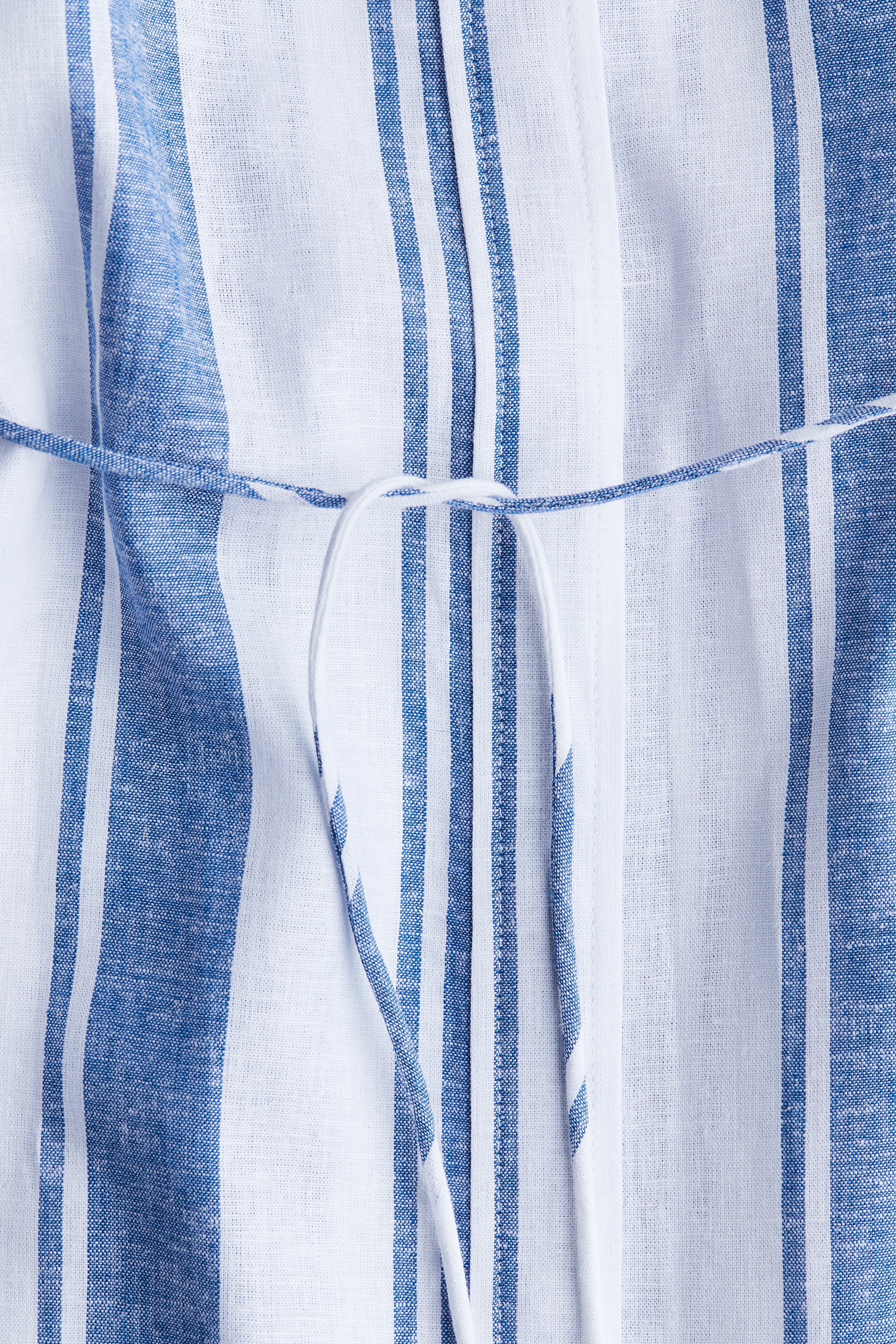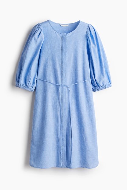 Knee-length dress in an airy, linen-blend weave with a round neckline, concealed divs down the front and a narrow, detachable tie belt at the waist. Elbow-length balloon sleeves with narrow elastication at the cuffs. Unlined.