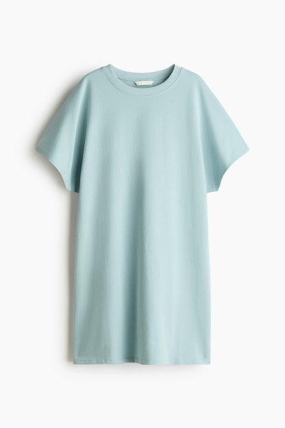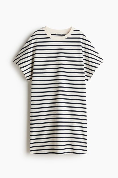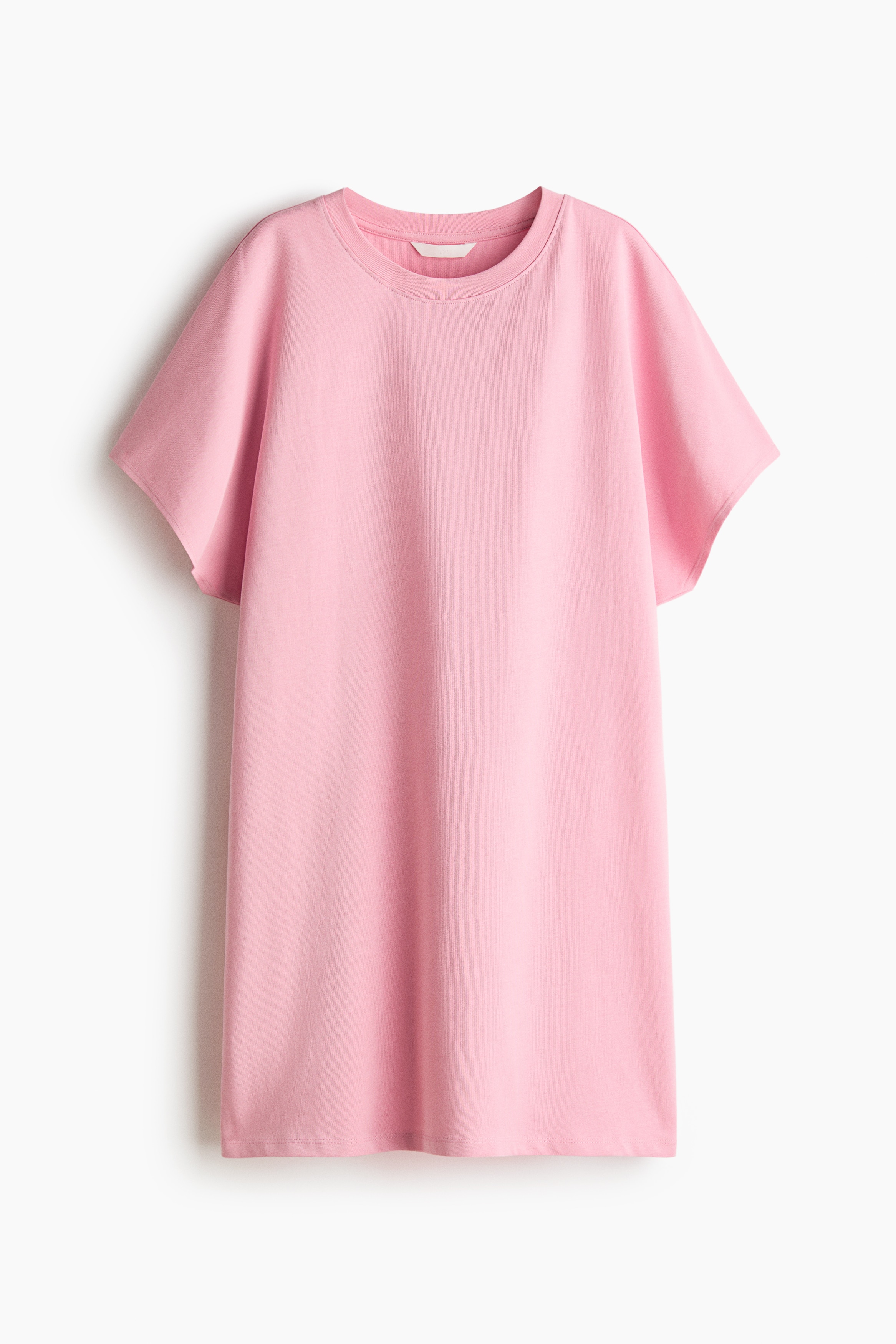 Short, relaxed-fit T-shirt dress in heavy cotton jersey with ribbing around the neckline and a straight-cut hem.