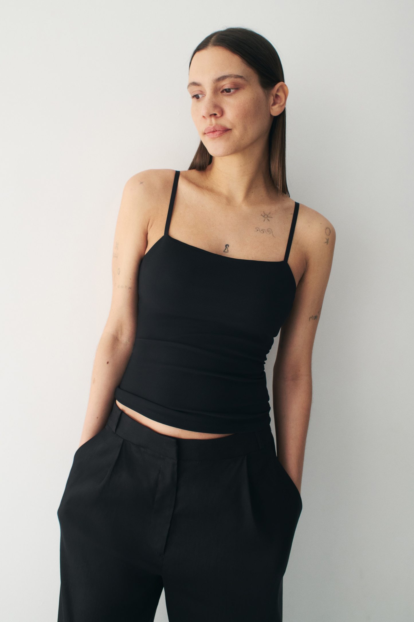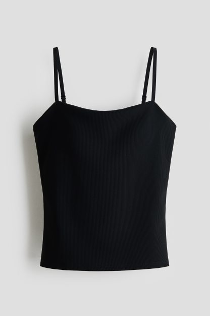 Ribbed top in a breathable and moisture-wicking fabric with four-way stretch that offers complete flexibility, shape and fluid motion in every direction. Slim fit with a square neckline, built-in bra, narrow shoulder straps and a straight-cut hem. Functional Essentials is a curated selection of pieces that incorporates comfort and performance into everyday wear.