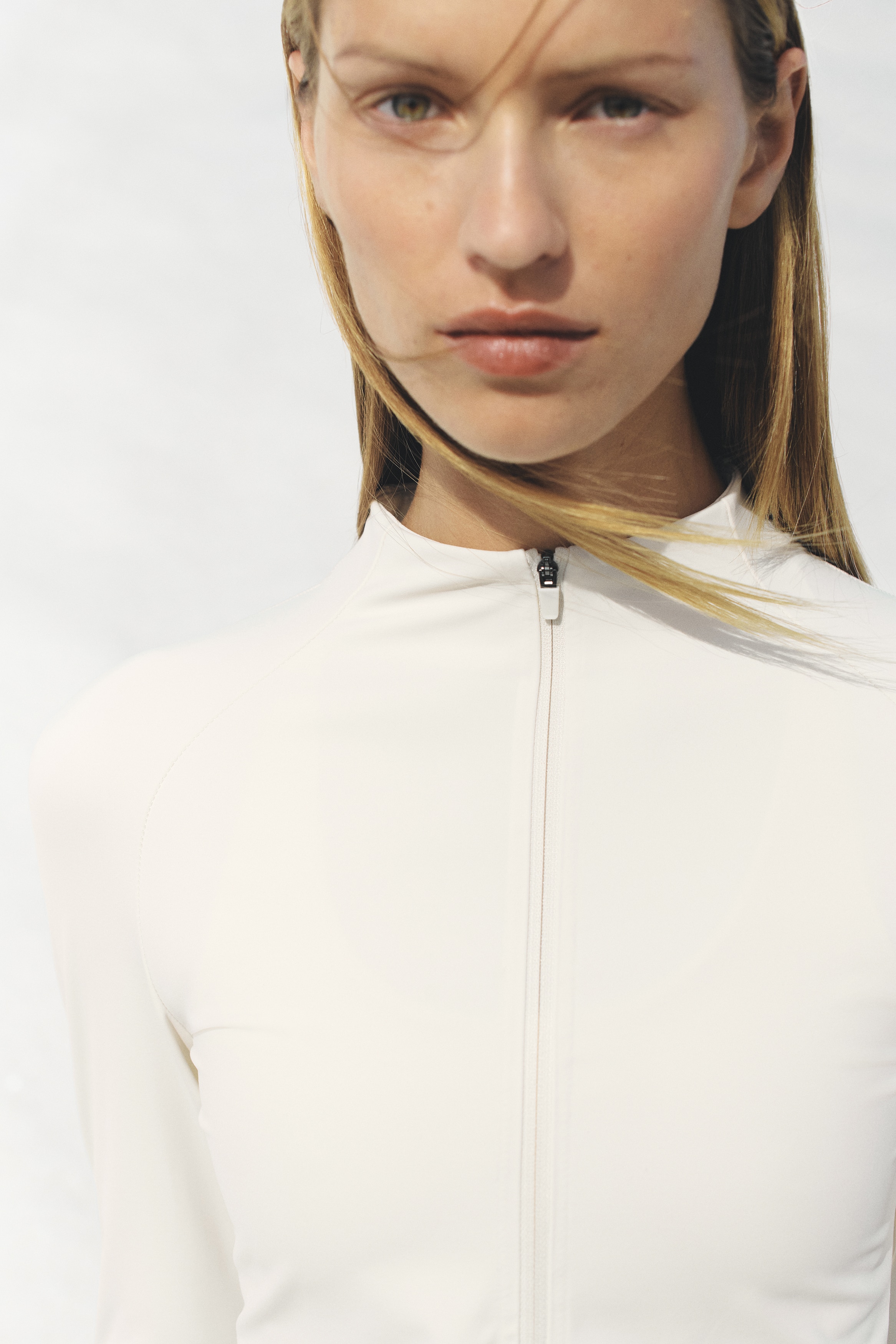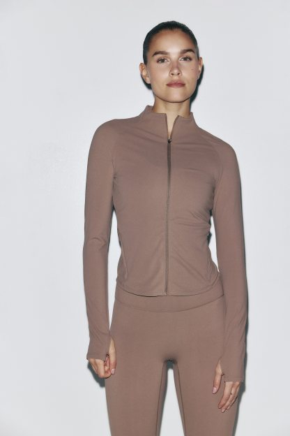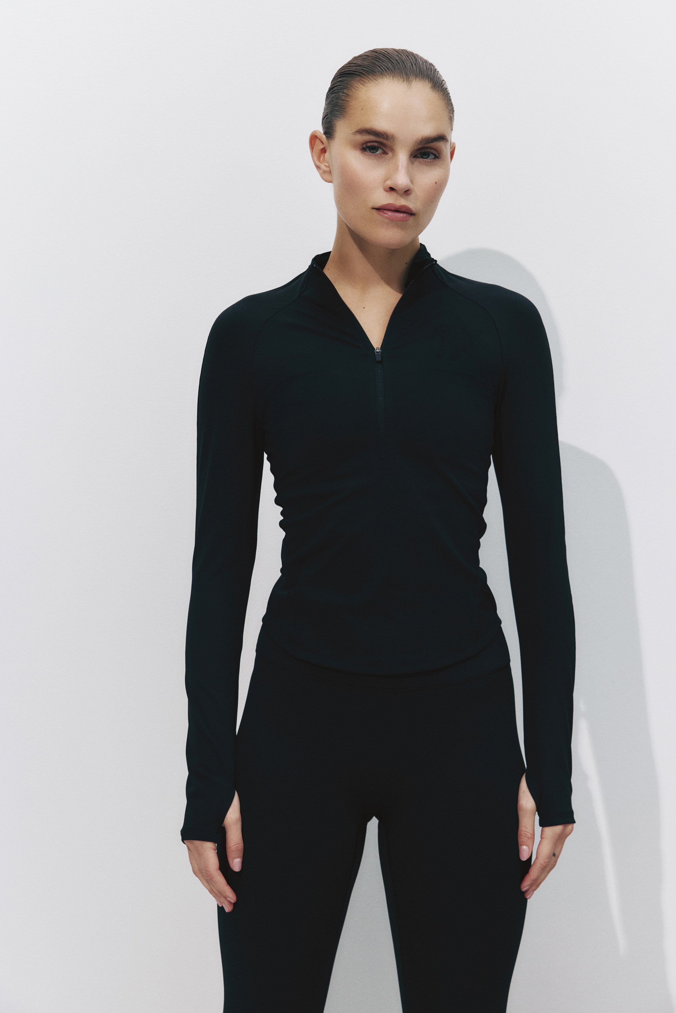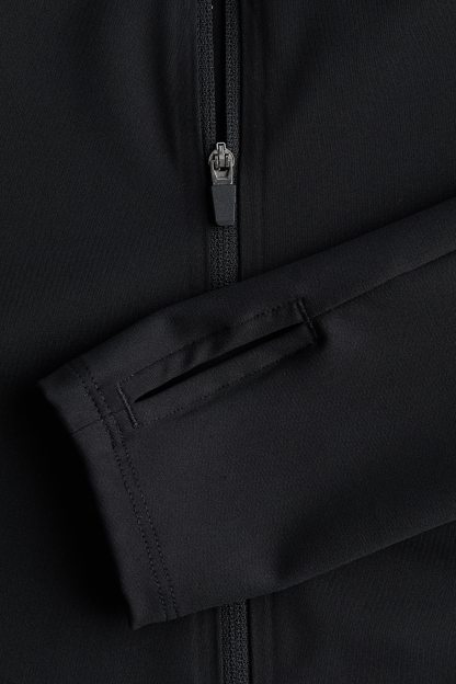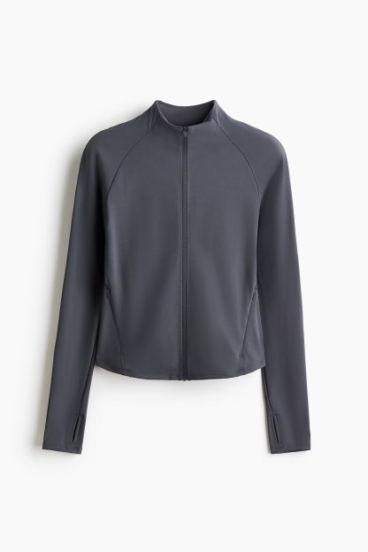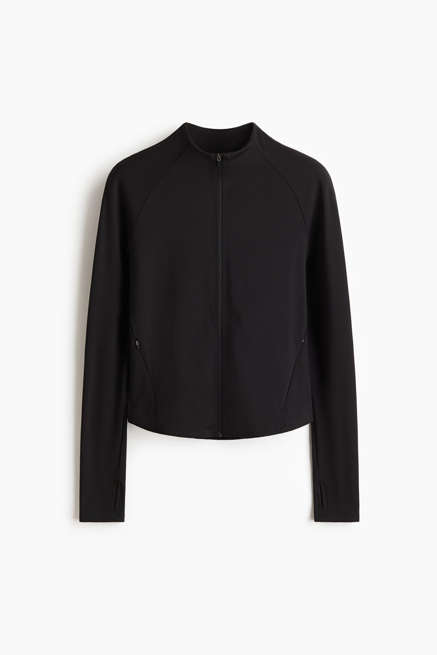 Sports jacket in functional fabric made with SculptMove™, a contour-hugging fit with sculpting support in all the right places, and DryMove™, which helps pull moisture away from your skin, keeping you comfortably cool and dry while moving. Slim fit with a small stand collar, front zip fastening, and extra-long raglan sleeves with thumbholes. Finished with zipped side pockets for secure storage.