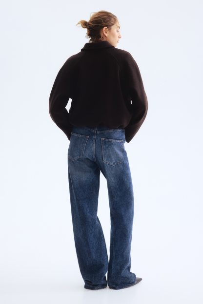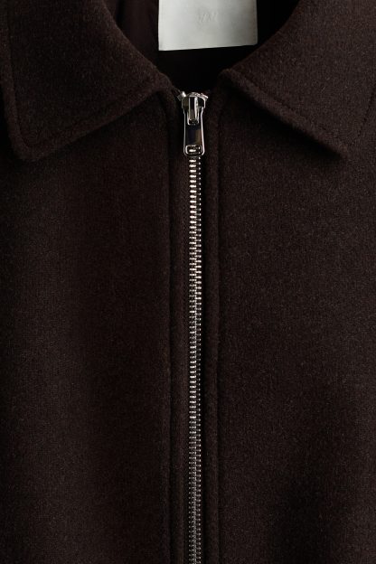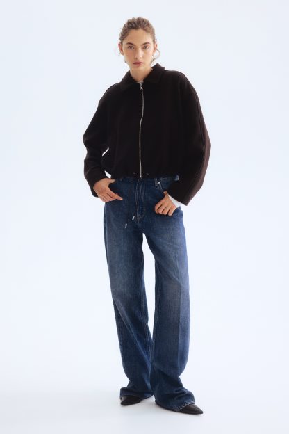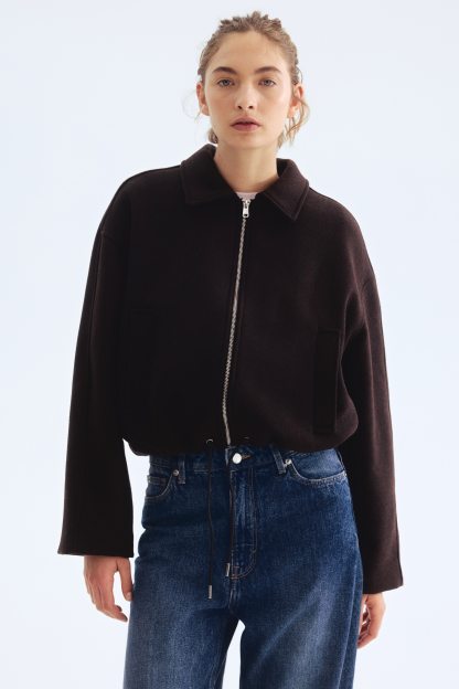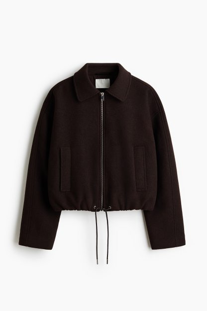 Short, oversized jacket in a wool blend with a collar, zip down the front and welt side pockets. Dropped shoulders, long sleeves with a raglan seam at the back, and a narrow drawstring at the hem. Lined.
