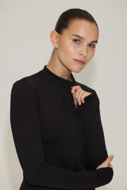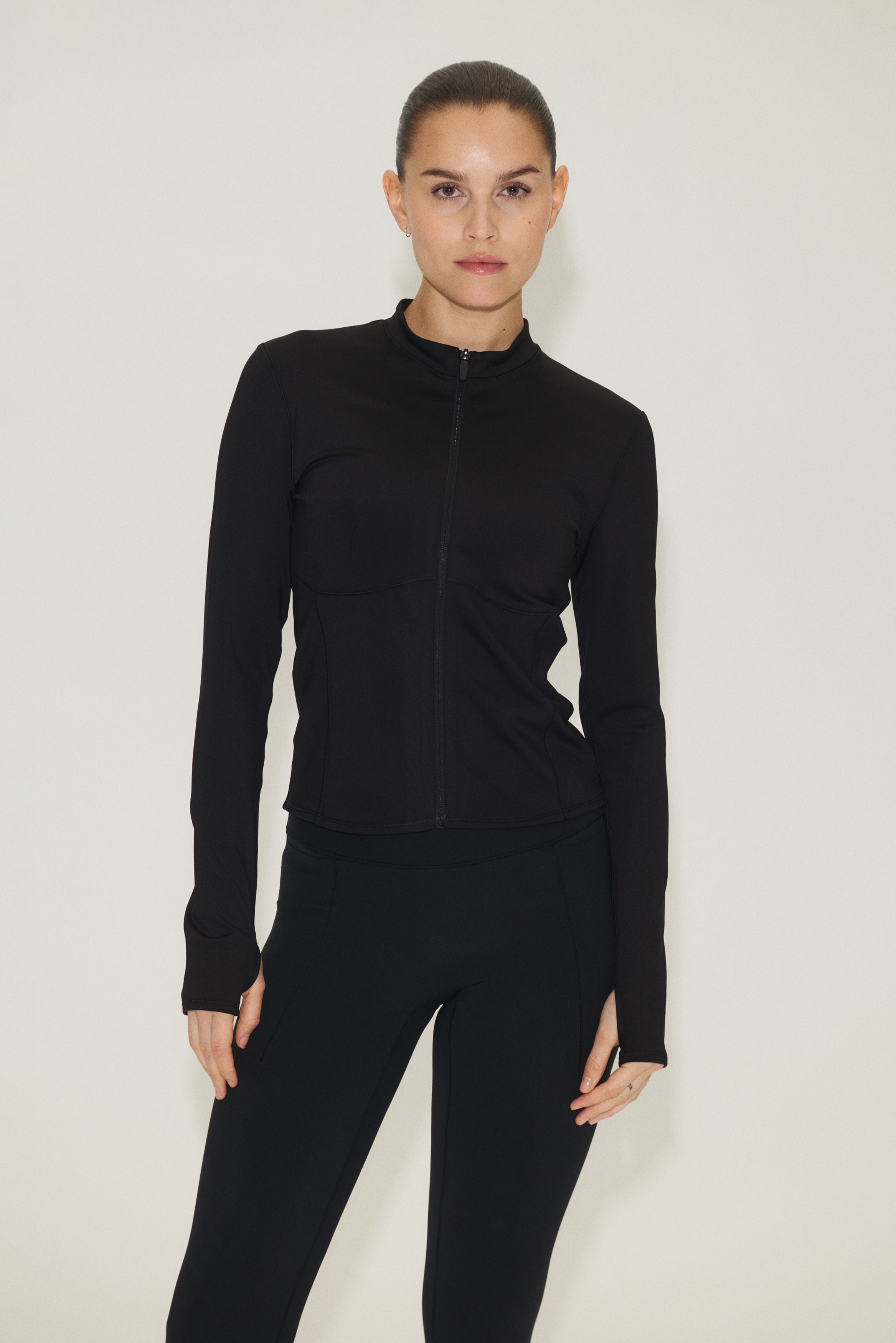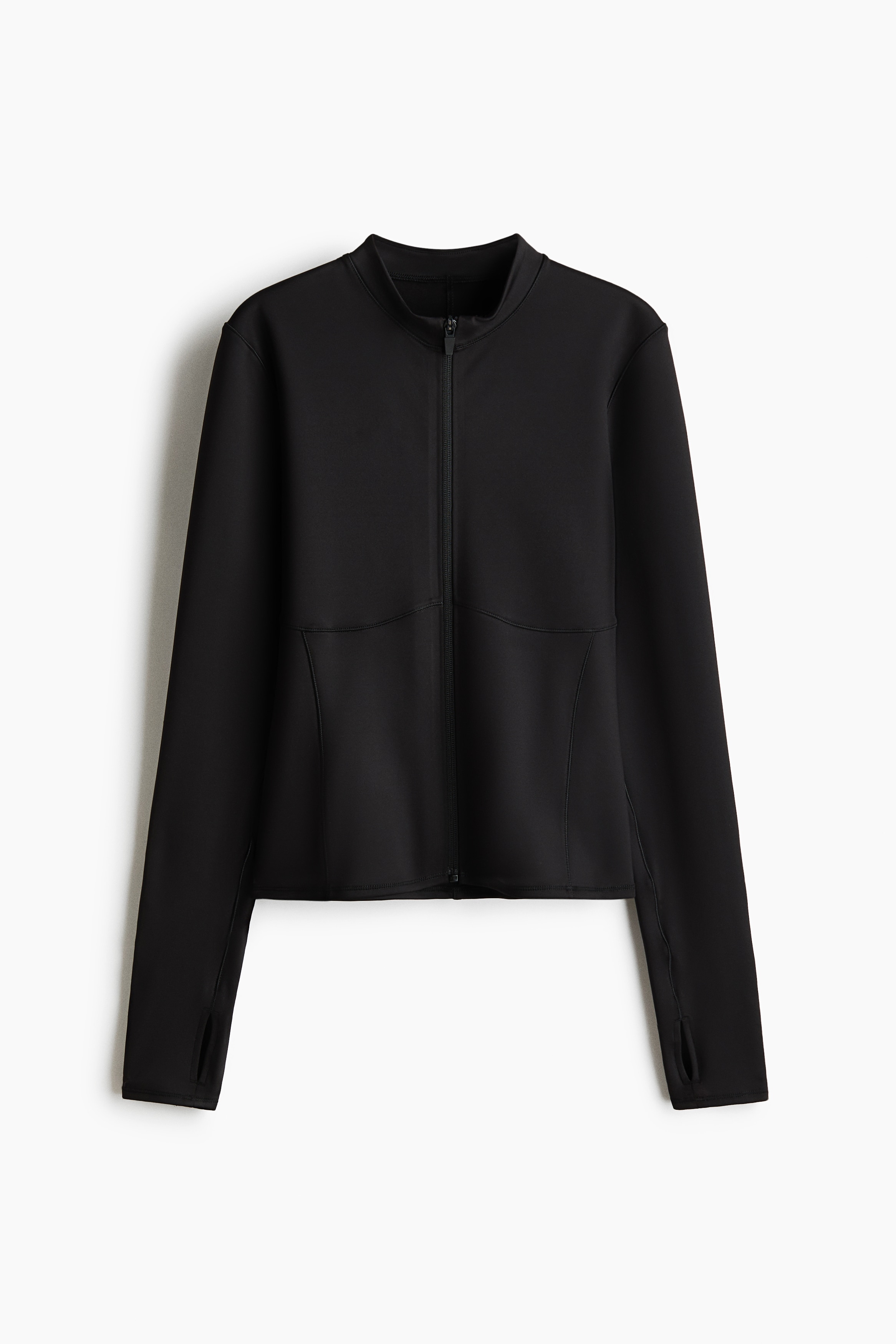 Warming zip-through sports jacket in functional fabric made with DryMove™, which helps pull moisture away from your skin, keeping you comfortably dry while moving. Slim fit with a stand-up collar and a zip down the front with an anti-chafe chin guard. Extra-long sleeves with thumbholes.