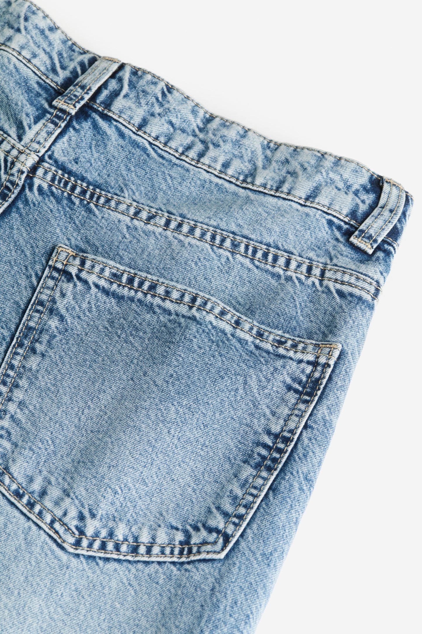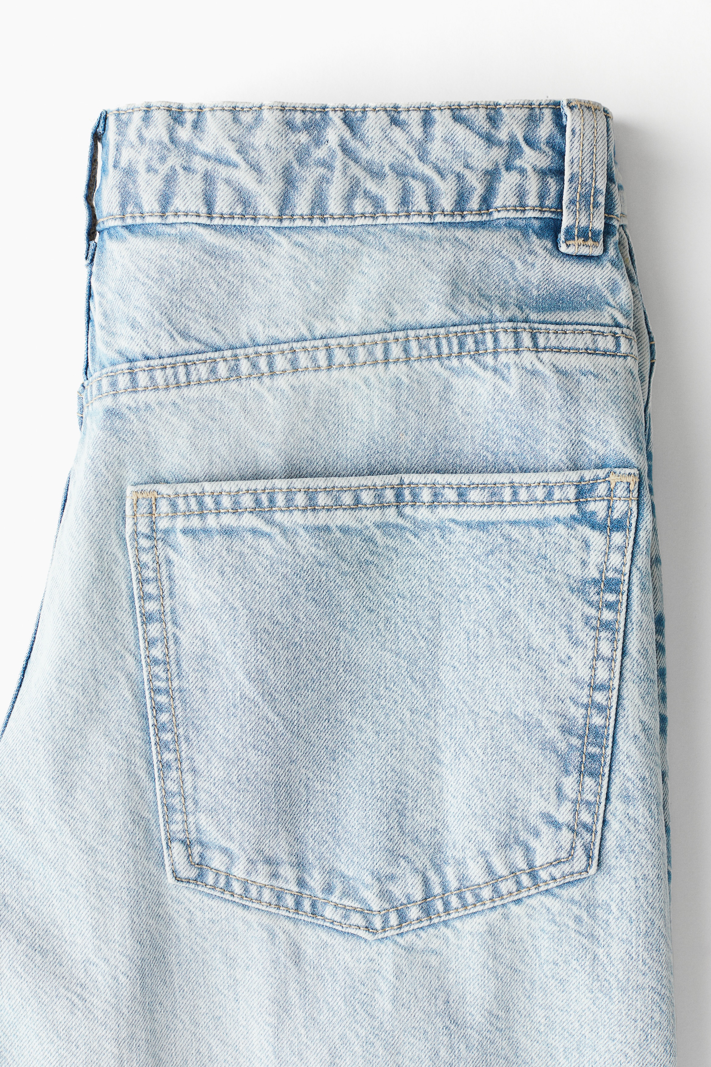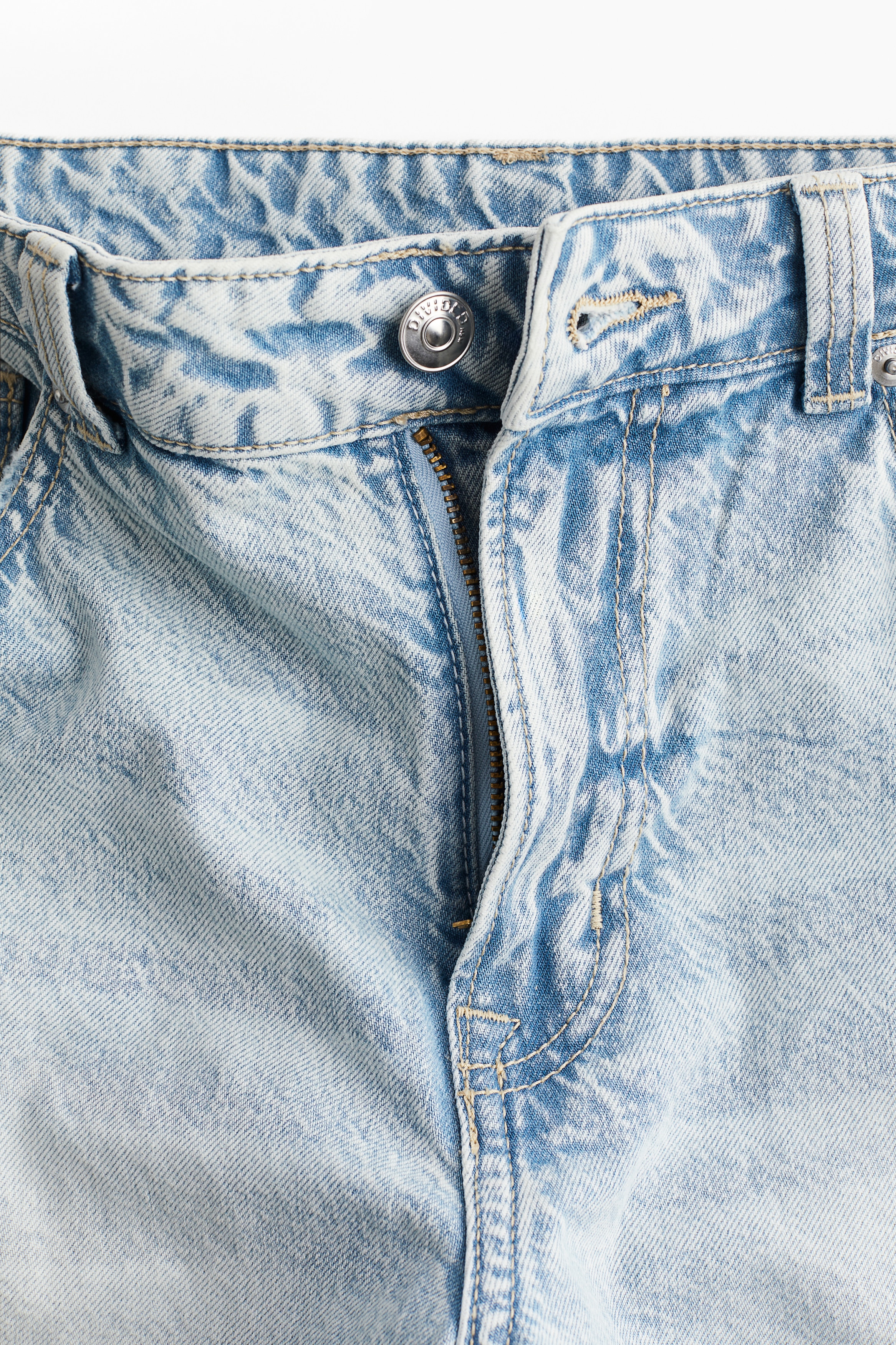 5-pocket jeans in rigid cotton denim that feels firm at first but then softens and loosens with wear. Wide leg with a loose fit from the waist to the hip and a relaxed fit from the thigh to the hem. Regular waist with a zip fly and div. Longer length, designed to fall over the foot with a stacking effect. A relaxed and cool denim statement.