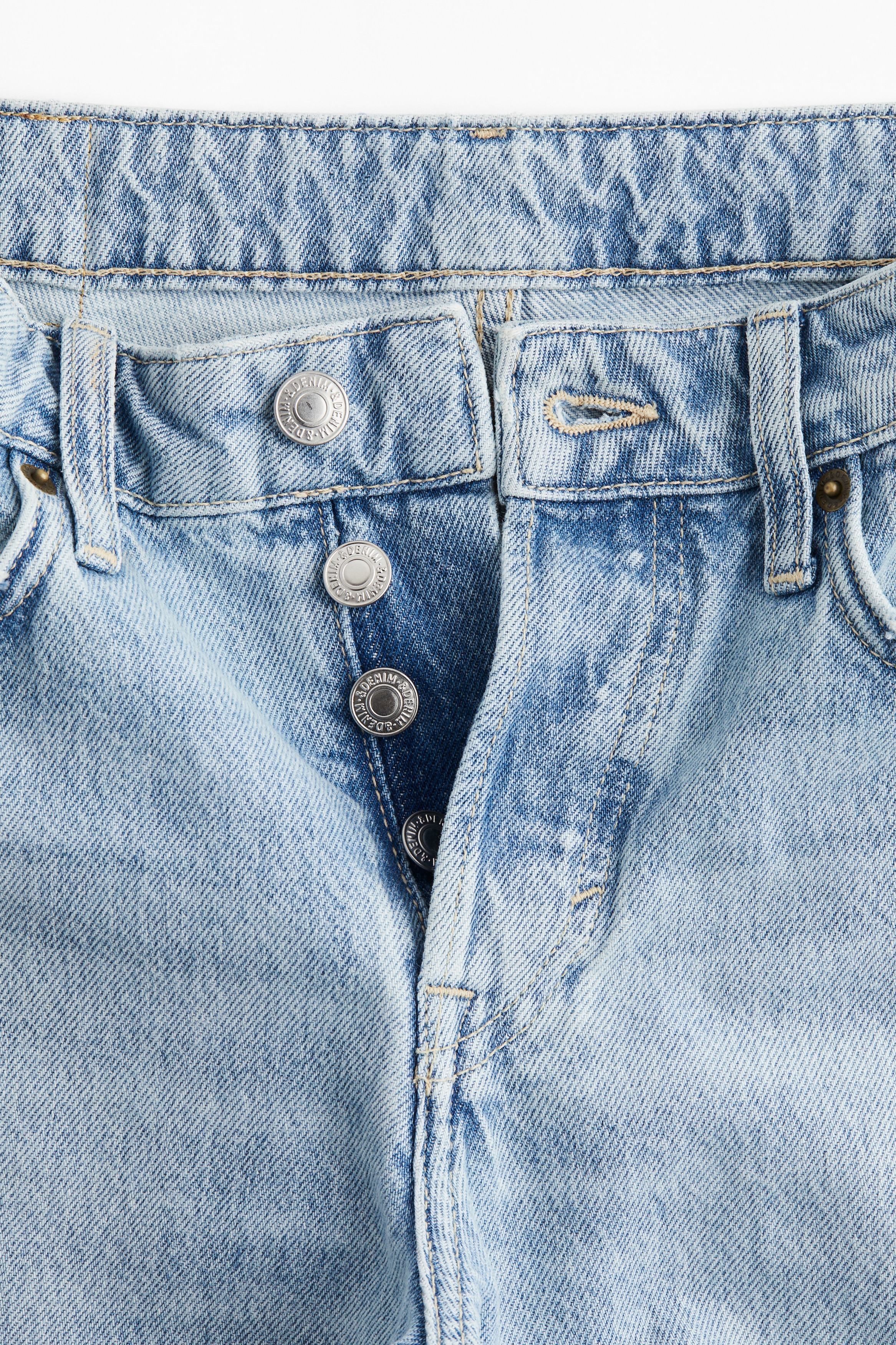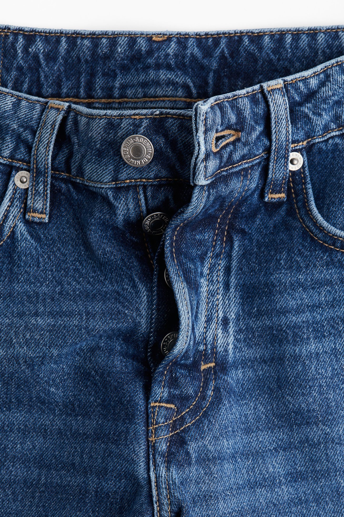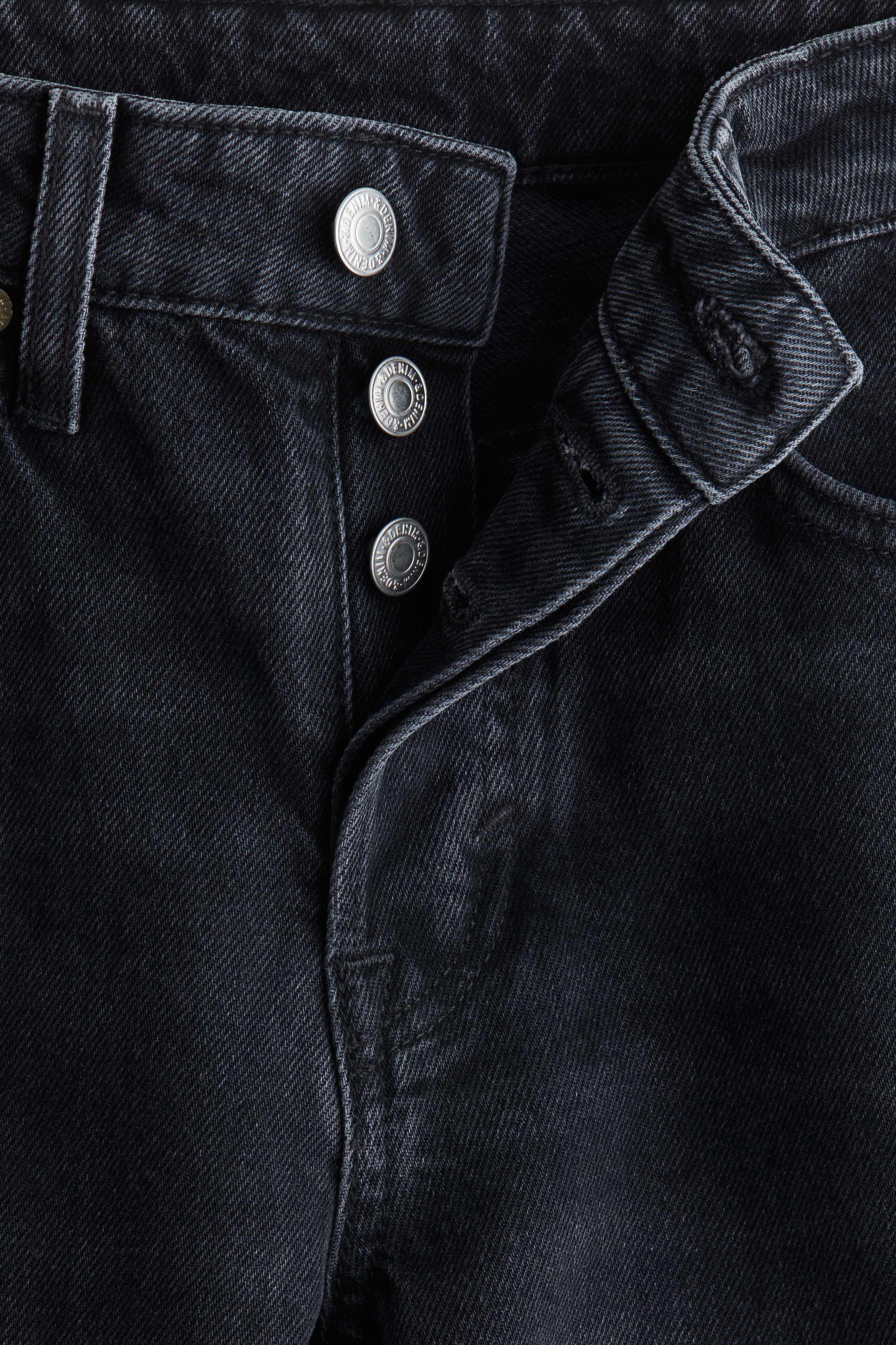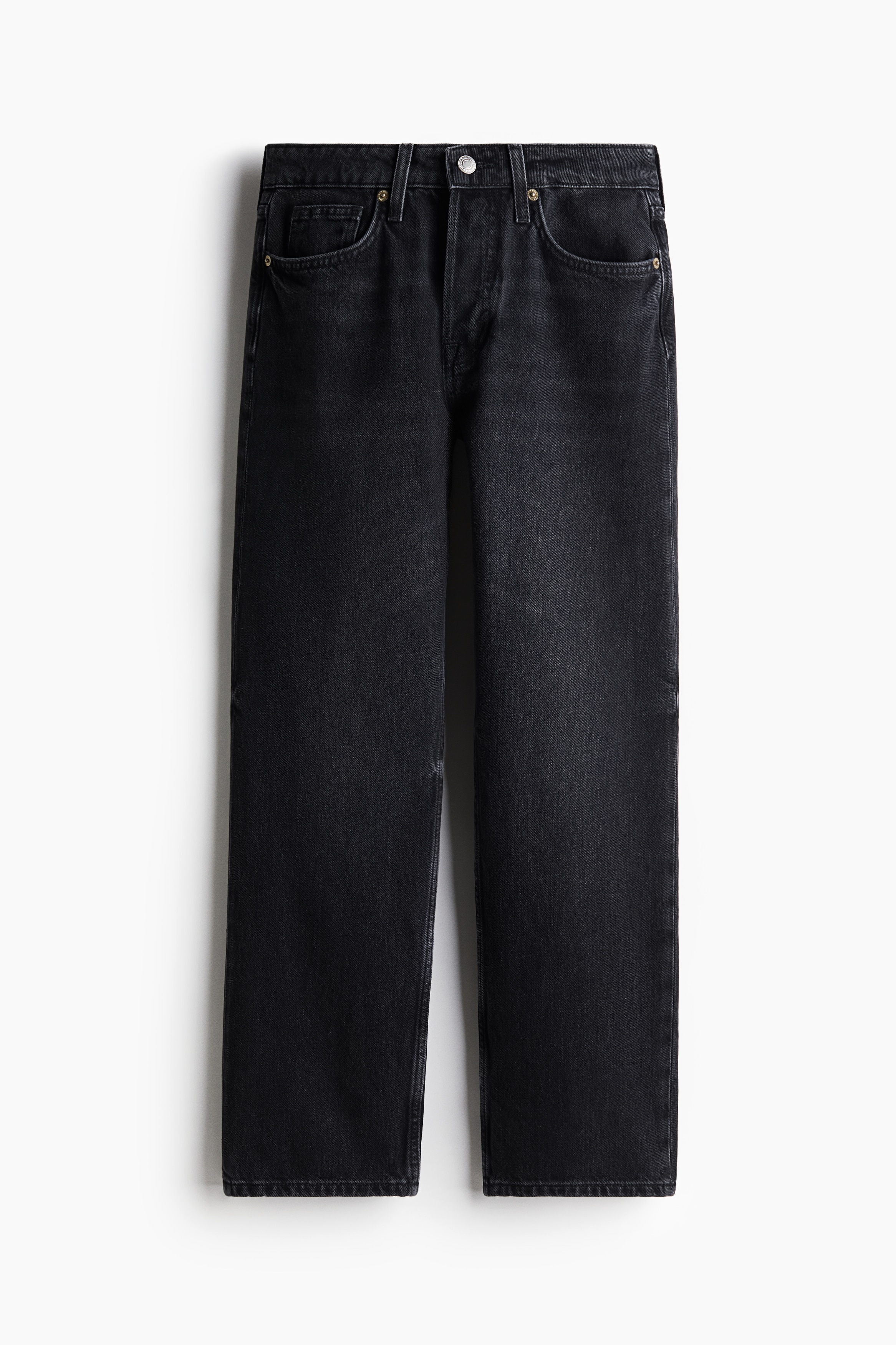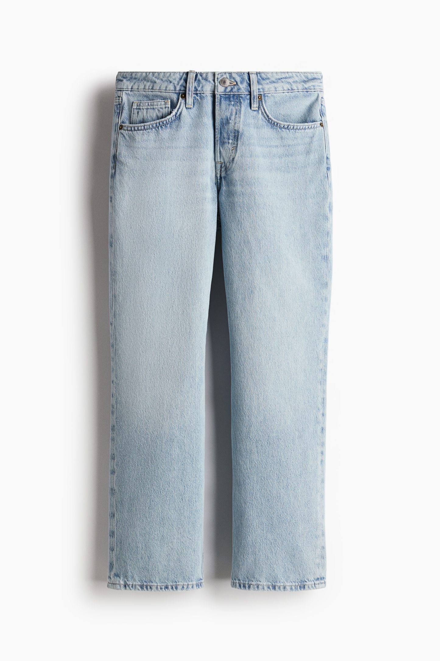 5-pocket jeans in rigid cotton denim that feels firm at first but then softens and loosens with wear. Straight leg with a regular fit from the waist to the hip and a looser, straight cut from the thigh to the hem. Regular waist with a div fly. Ankle length, designed to hit at the ankle bone. The jeans we want to live in every day.