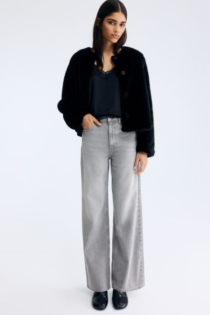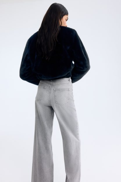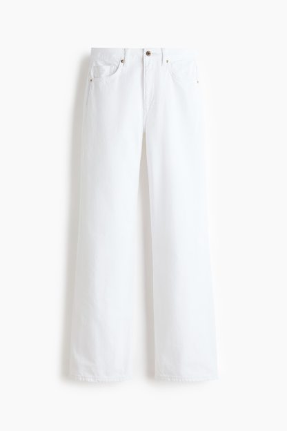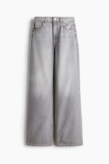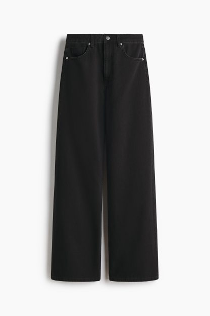 5-pocket jeans in rigid cotton denim that feels firm at first but then softens and loosens with wear. Wide leg with a regular fit from the waist to the hip and a wide cut from the thigh to the hem. Extra-high waist with a zip fly and div. Regular length, designed to hit the top of the foot with little or no stacking. Featuring a wide silhouette that's always flattering.