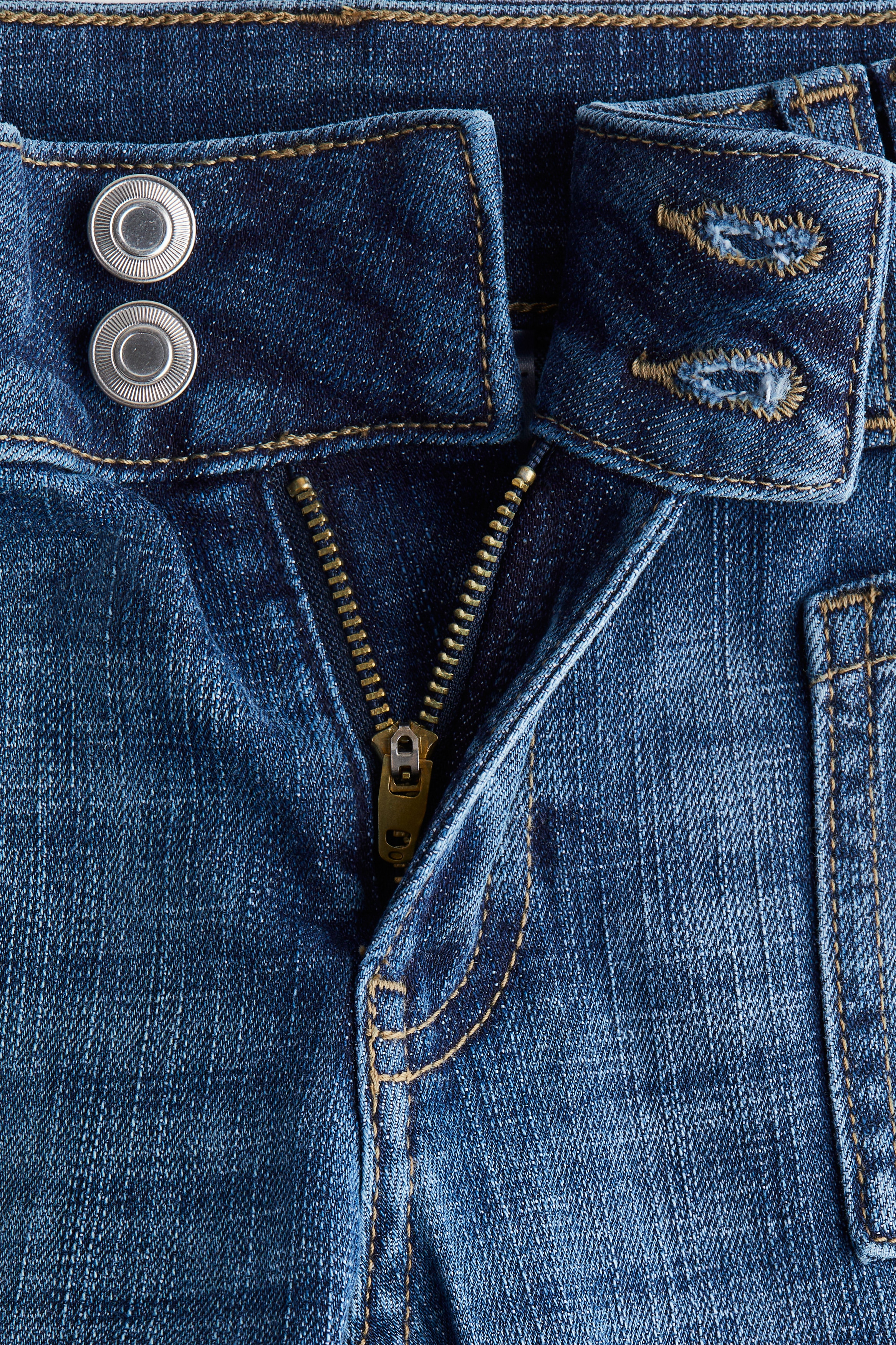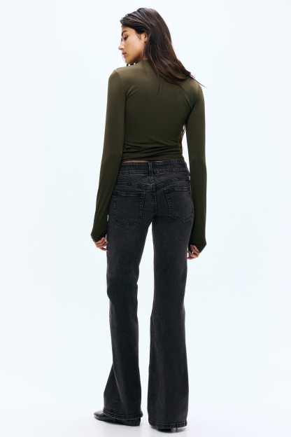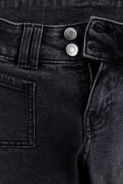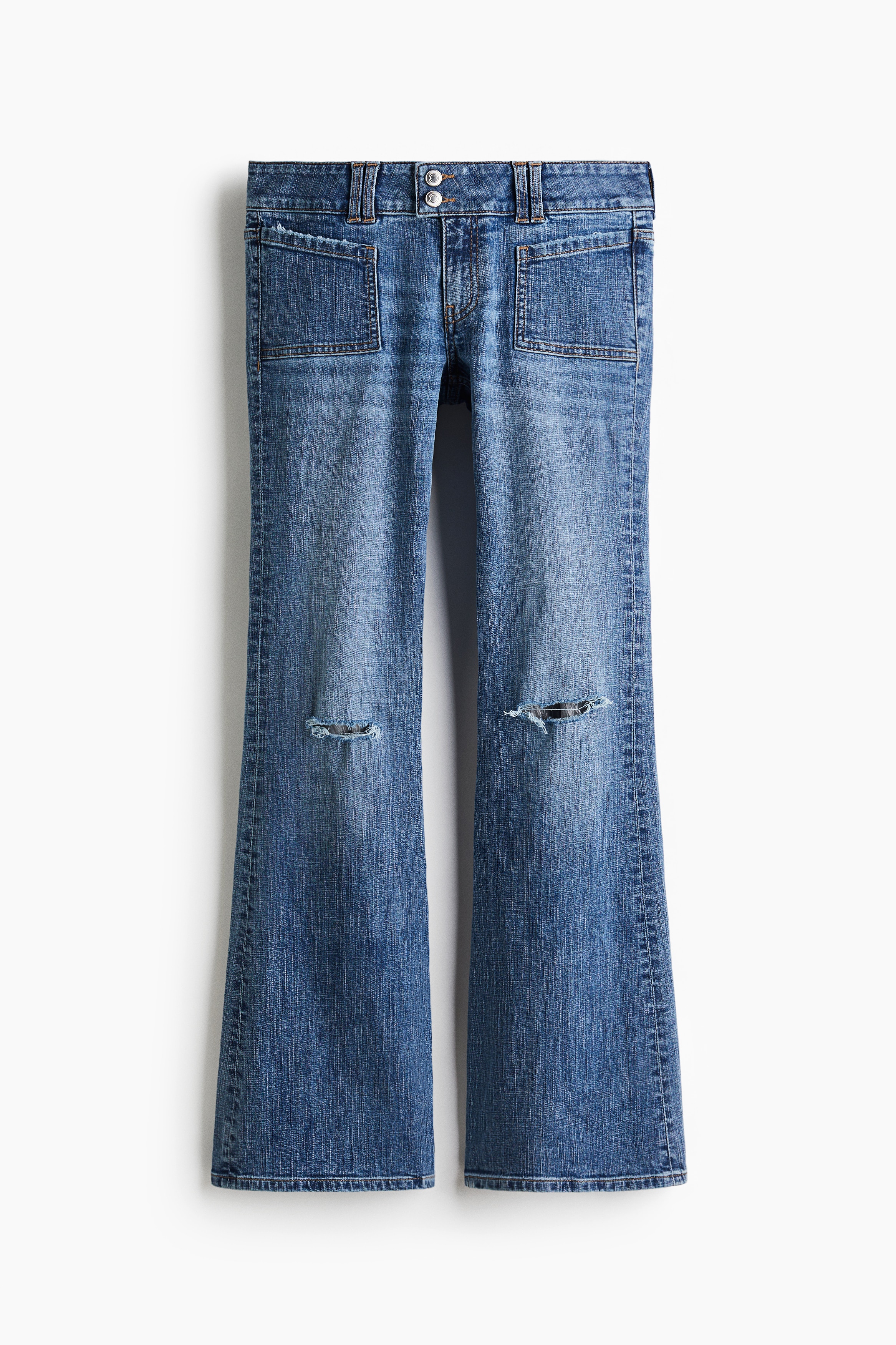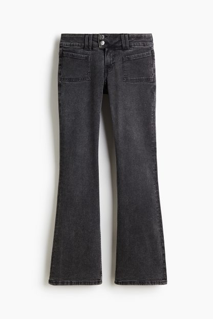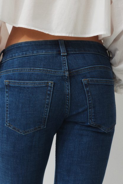 Jeans in denim with a slight stretch for good comfort. Flared leg with a slim fit from the waist to the thigh and a flared cut from the knee to the hem. Low waist with a zip fly and an extended waistband with divs. Front and back pockets. Regular length, designed to hit the top of the foot with little or no stacking. A defining shape from season to season.