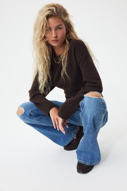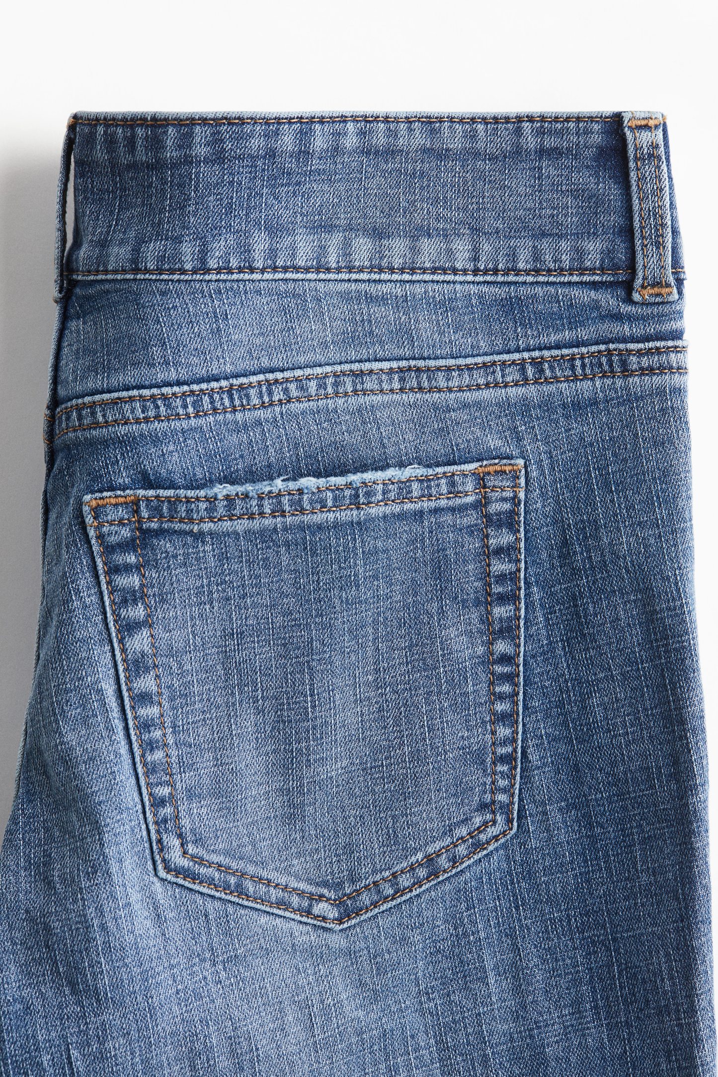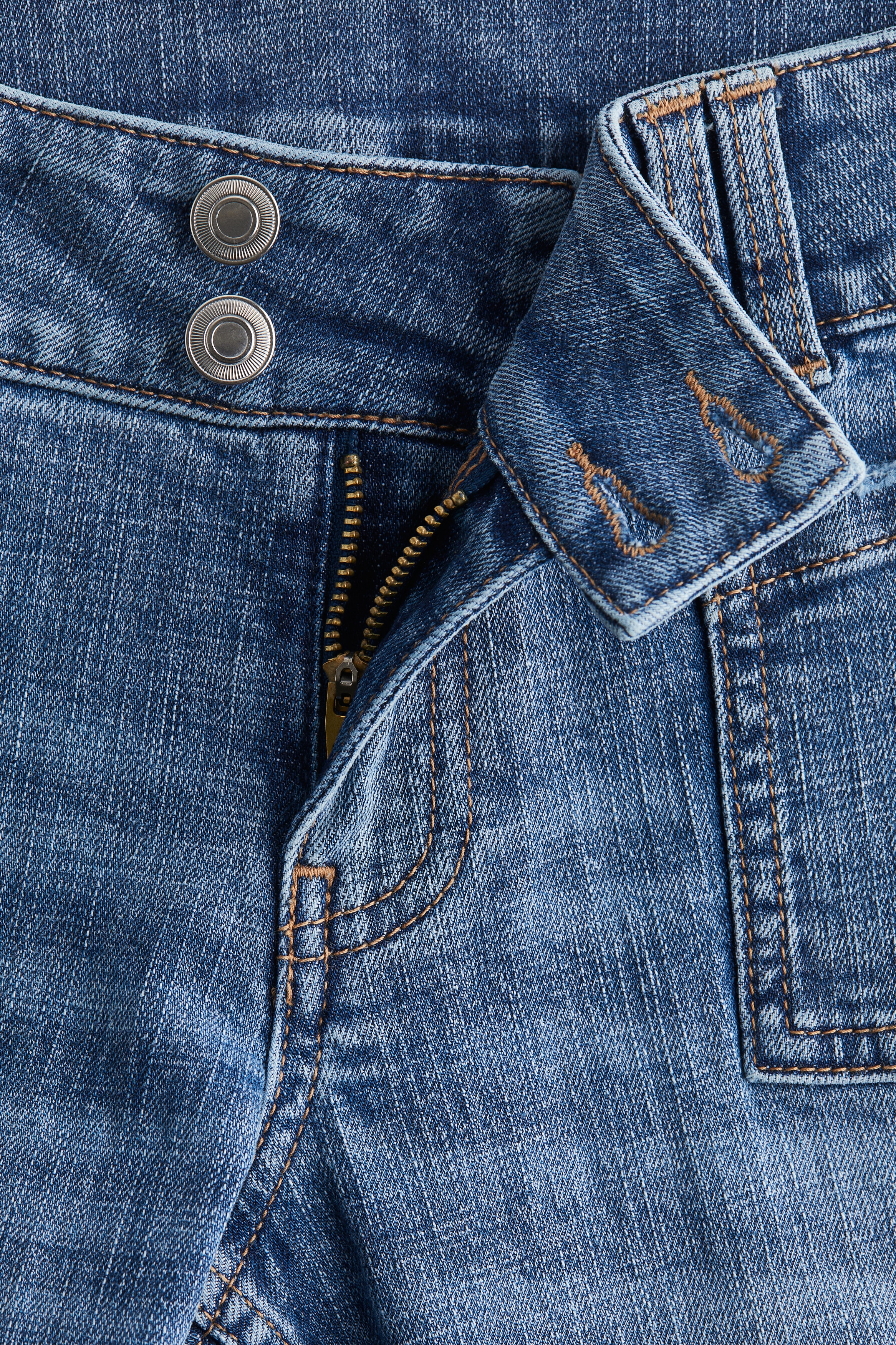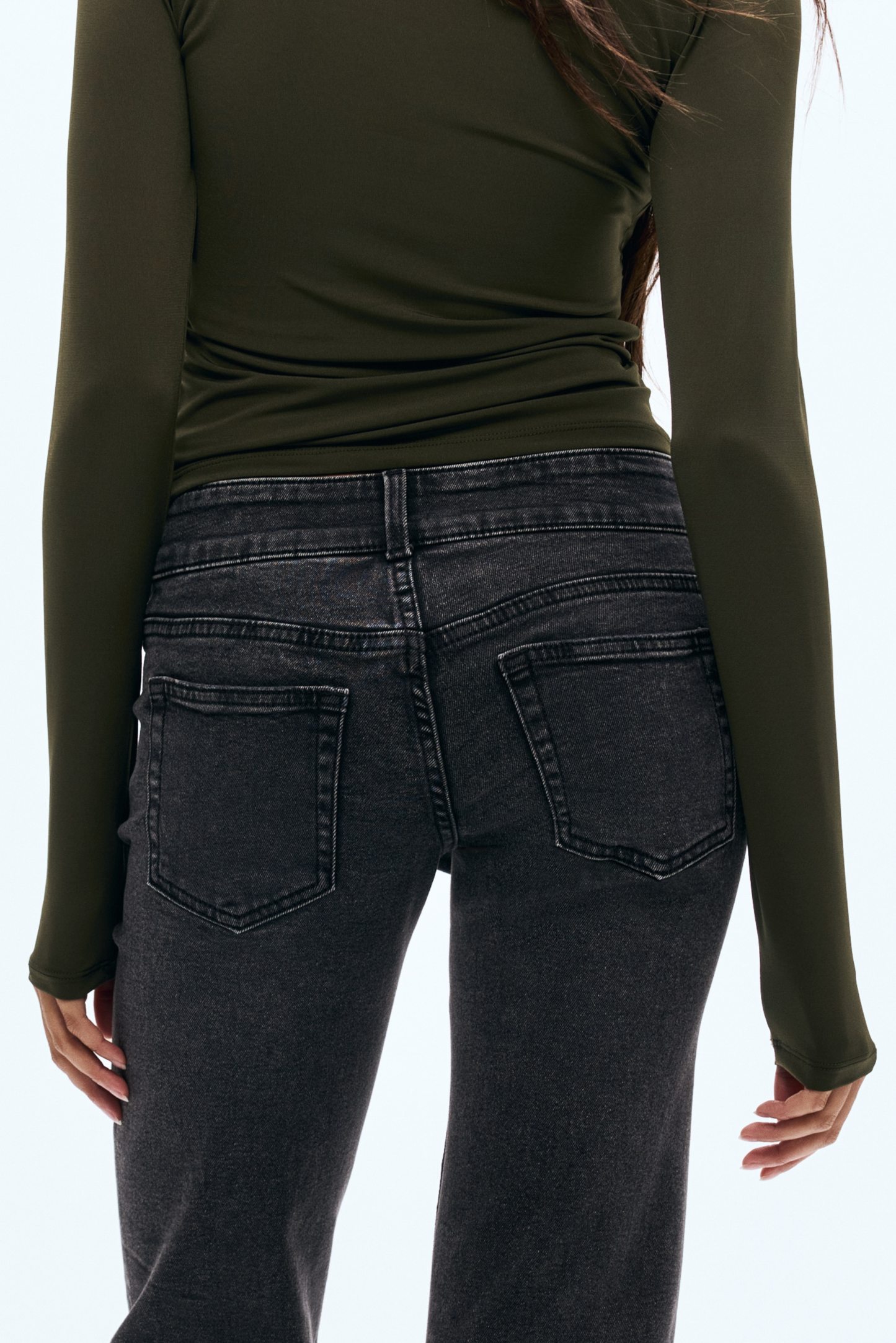 Jeans in denim with a slight stretch for good comfort. Flared leg with a slim fit from the waist to the thigh and a flared cut from the knee to the hem. Low waist with a zip fly and an extended waistband with divs. Front and back pockets. Regular length, designed to hit the top of the foot with little or no stacking. A defining shape from season to season.