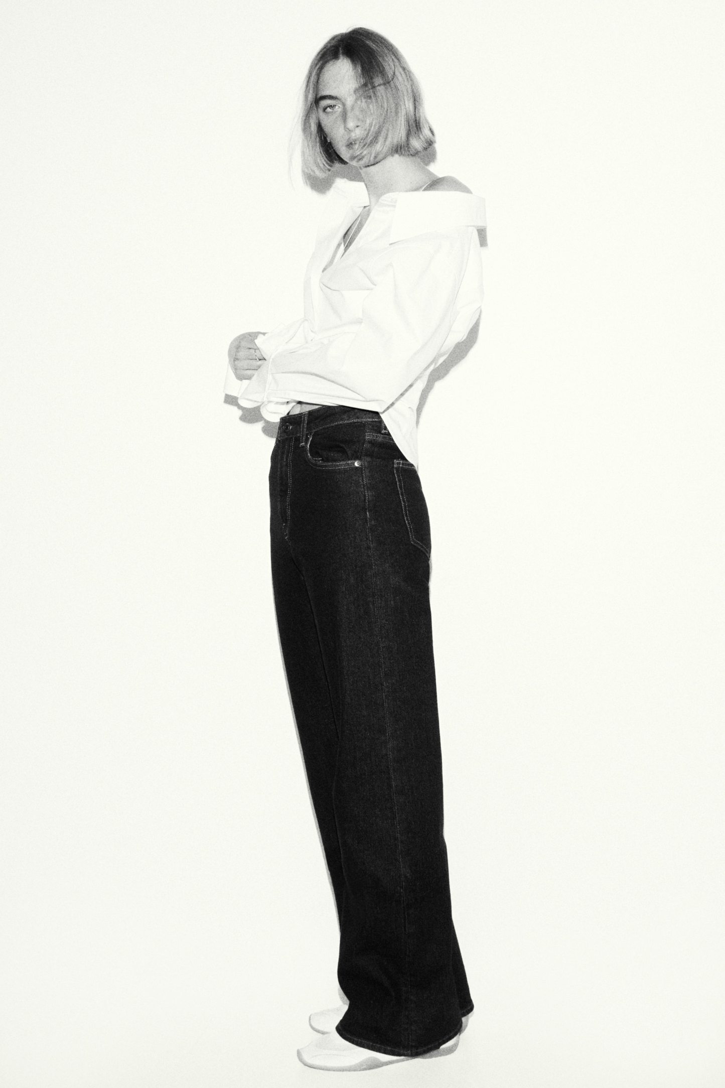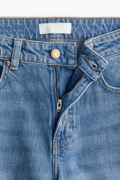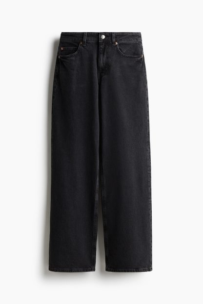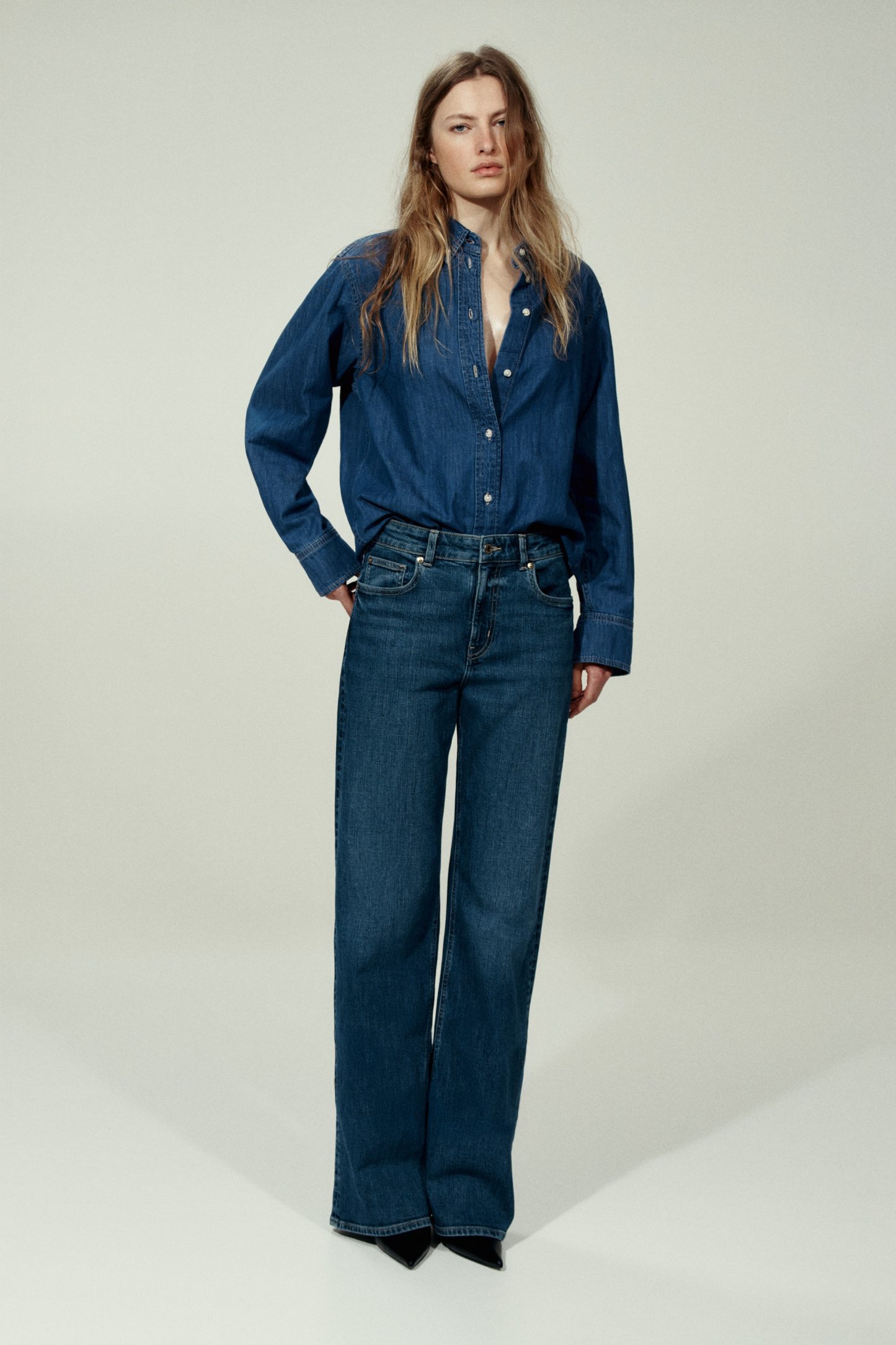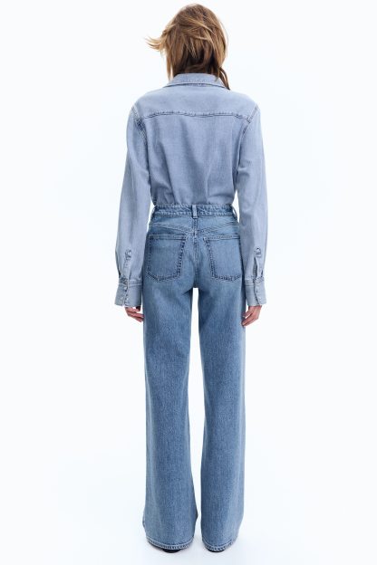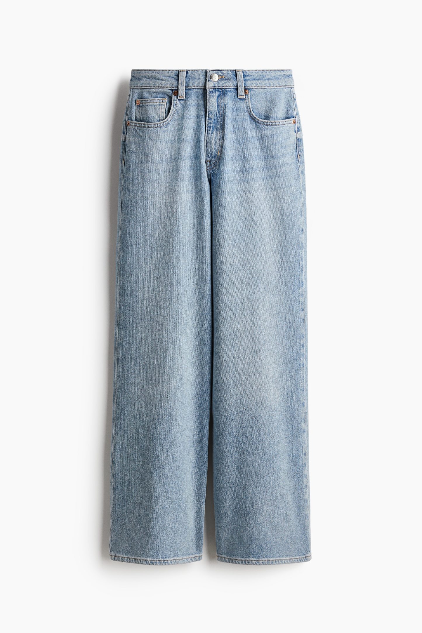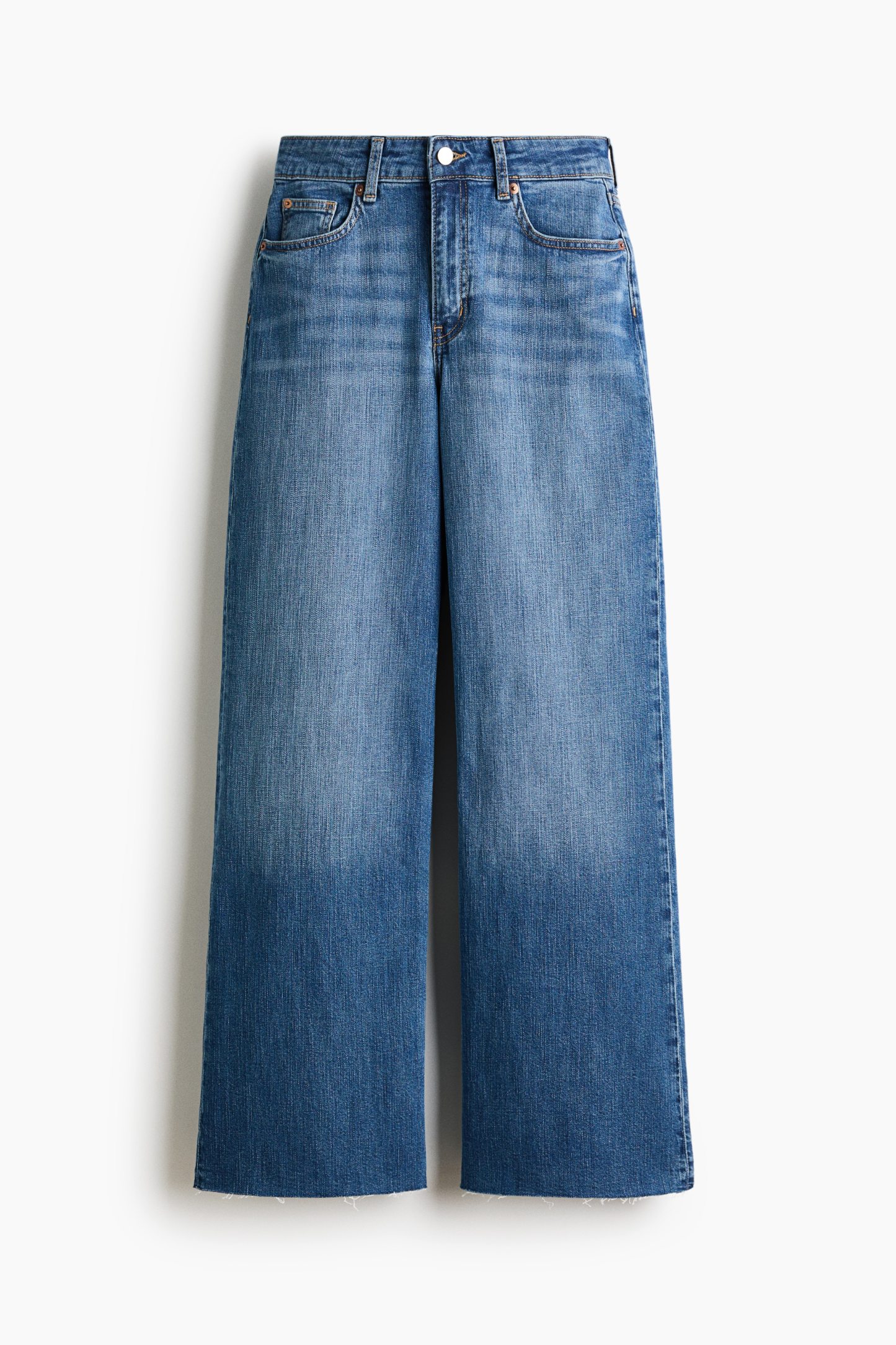 5-pocket jeans in cotton denim with a slight stretch for good comfort. Wide leg with a regular fit from the waist to the hip and a wide cut from the thigh to the hem. High waist with a zip fly and div. Regular length, designed to hit the top of the foot with little or no stacking.