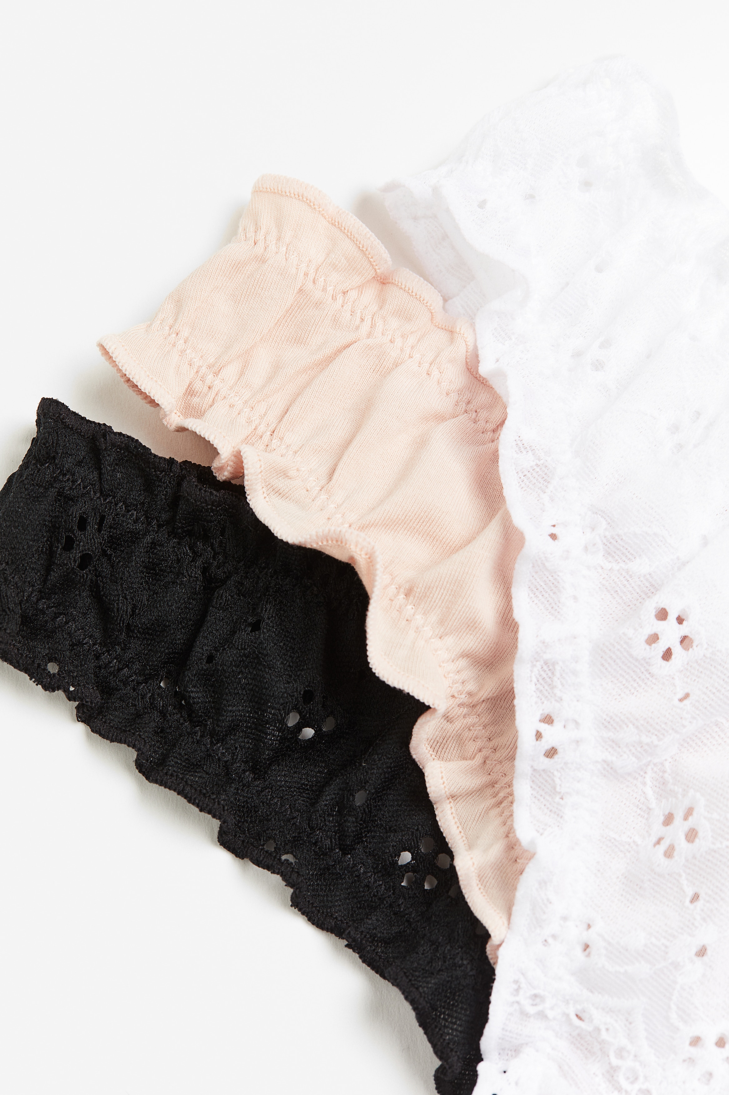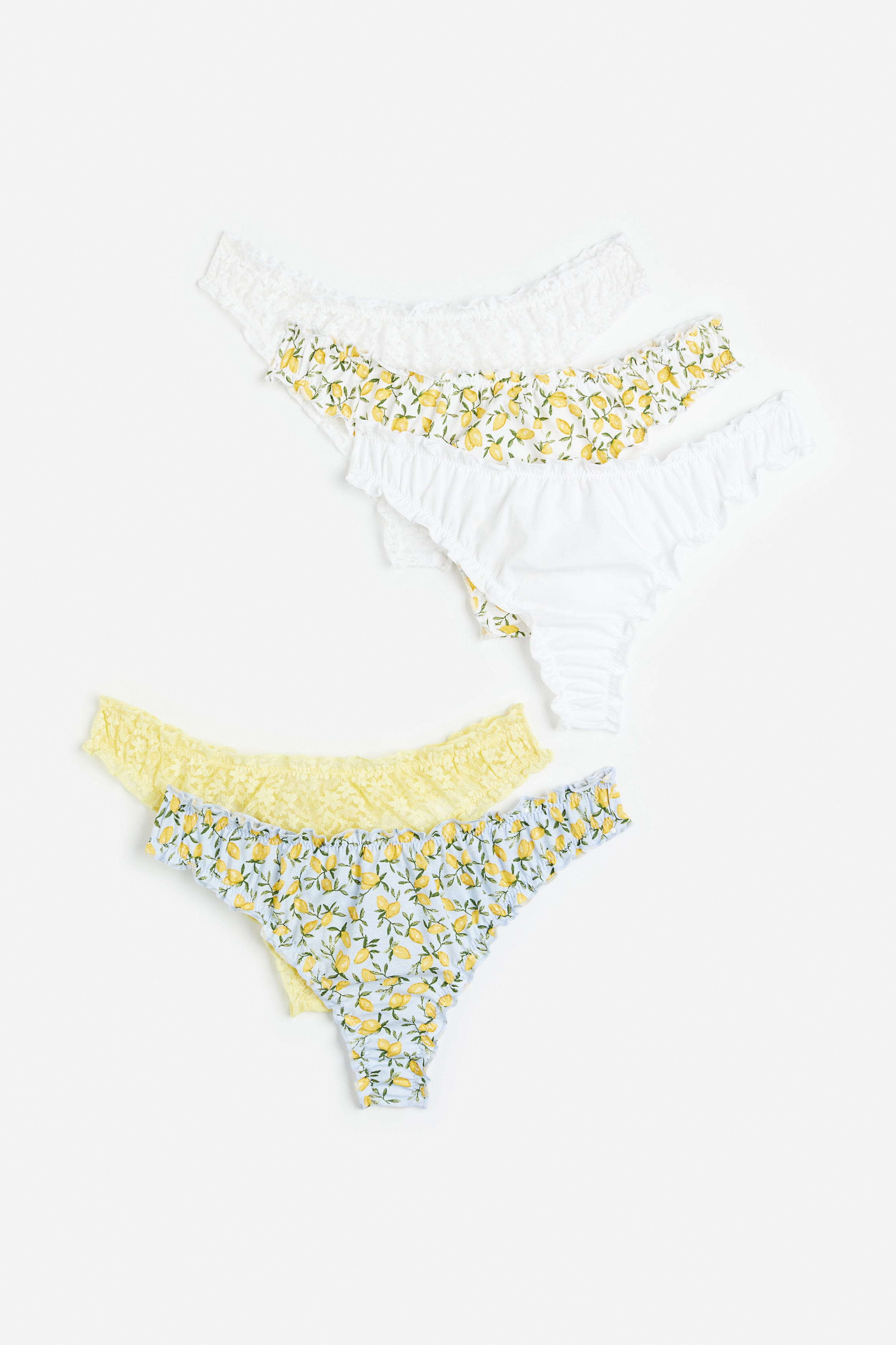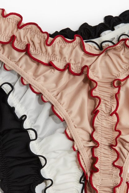 Thong briefs with a low waist, lined gusset and overlocked edges.