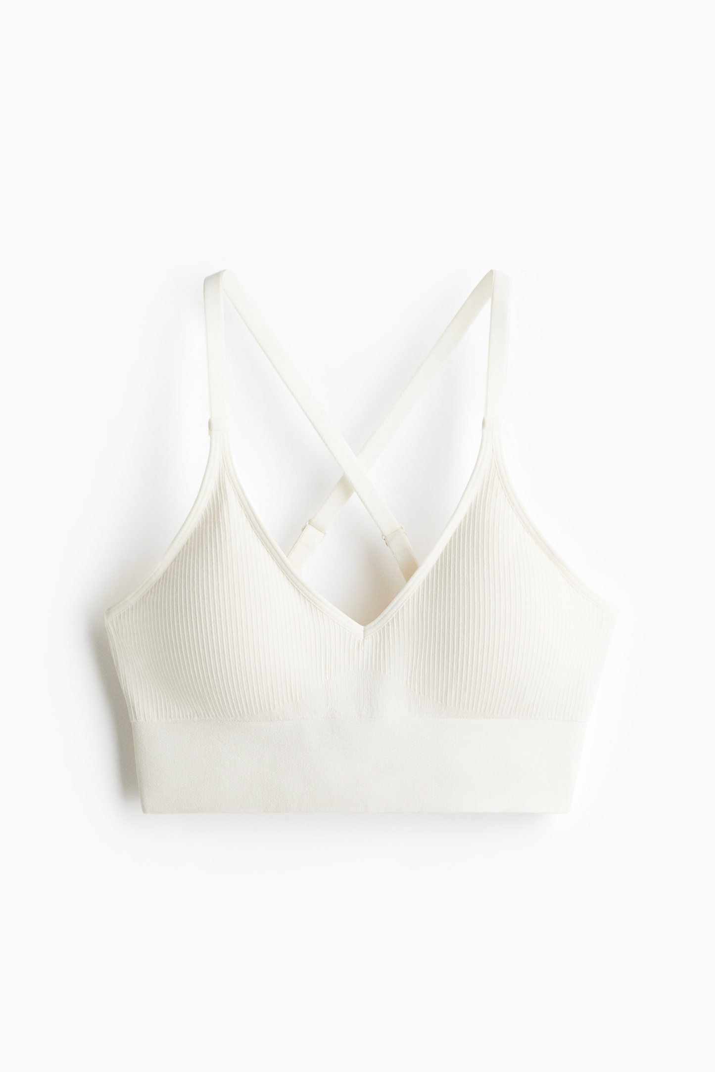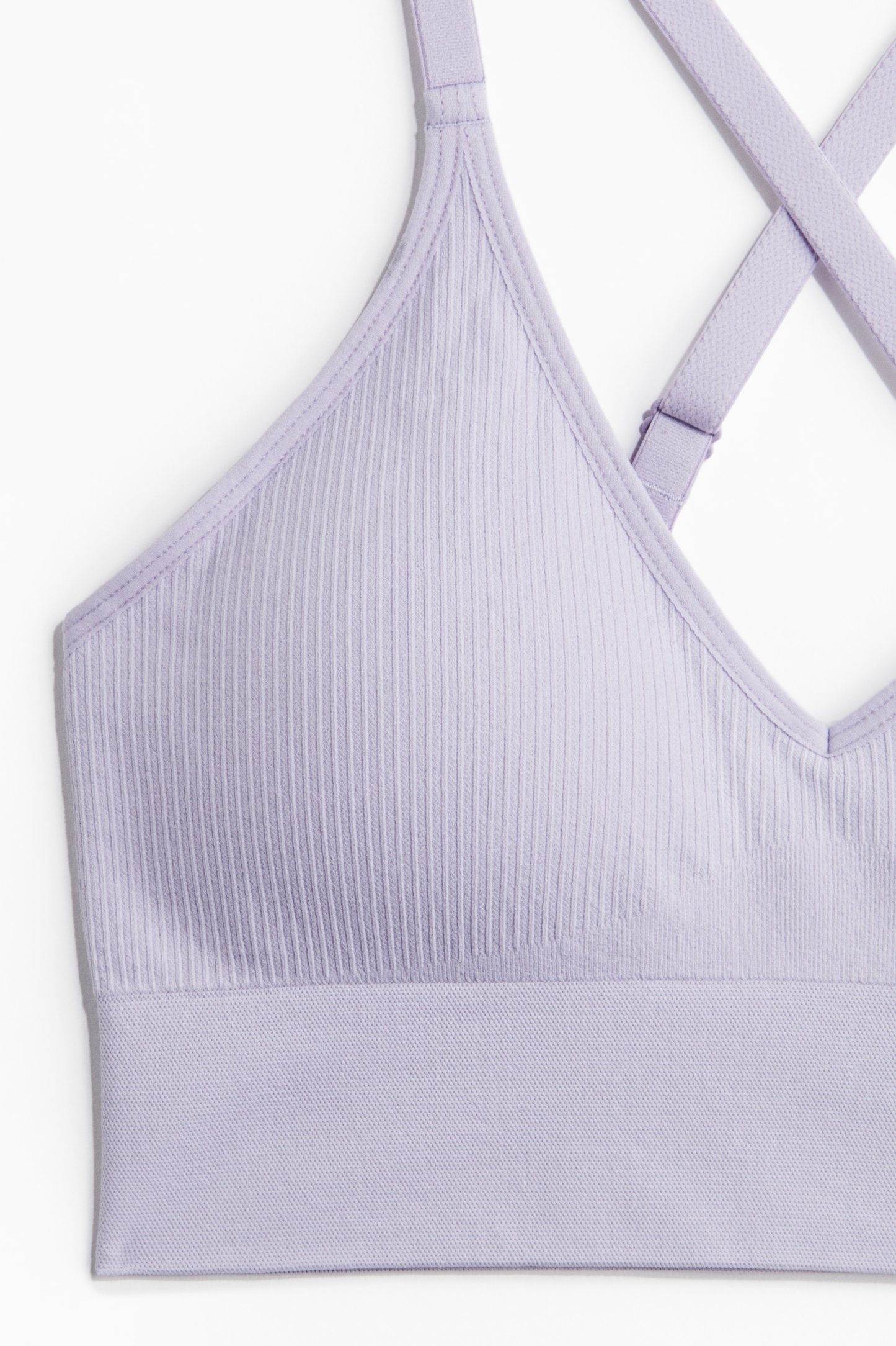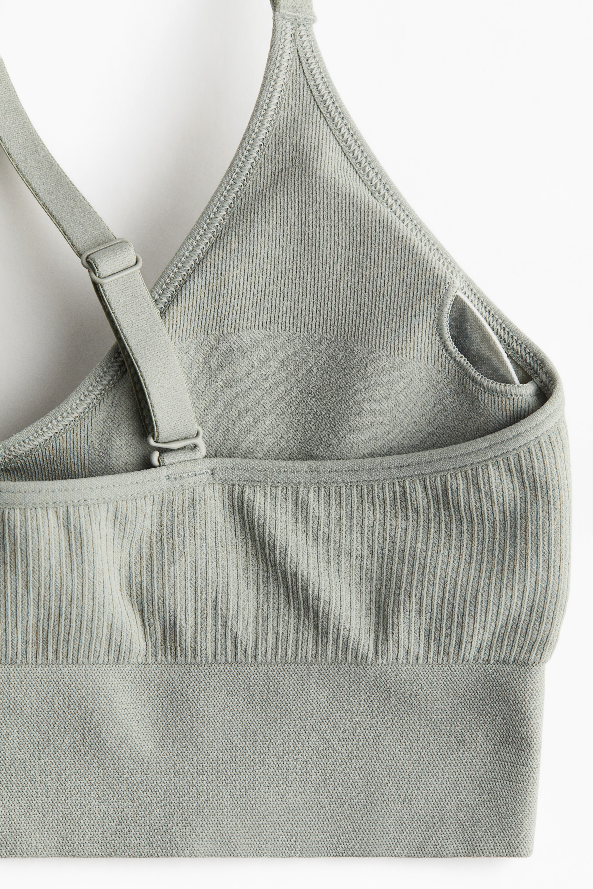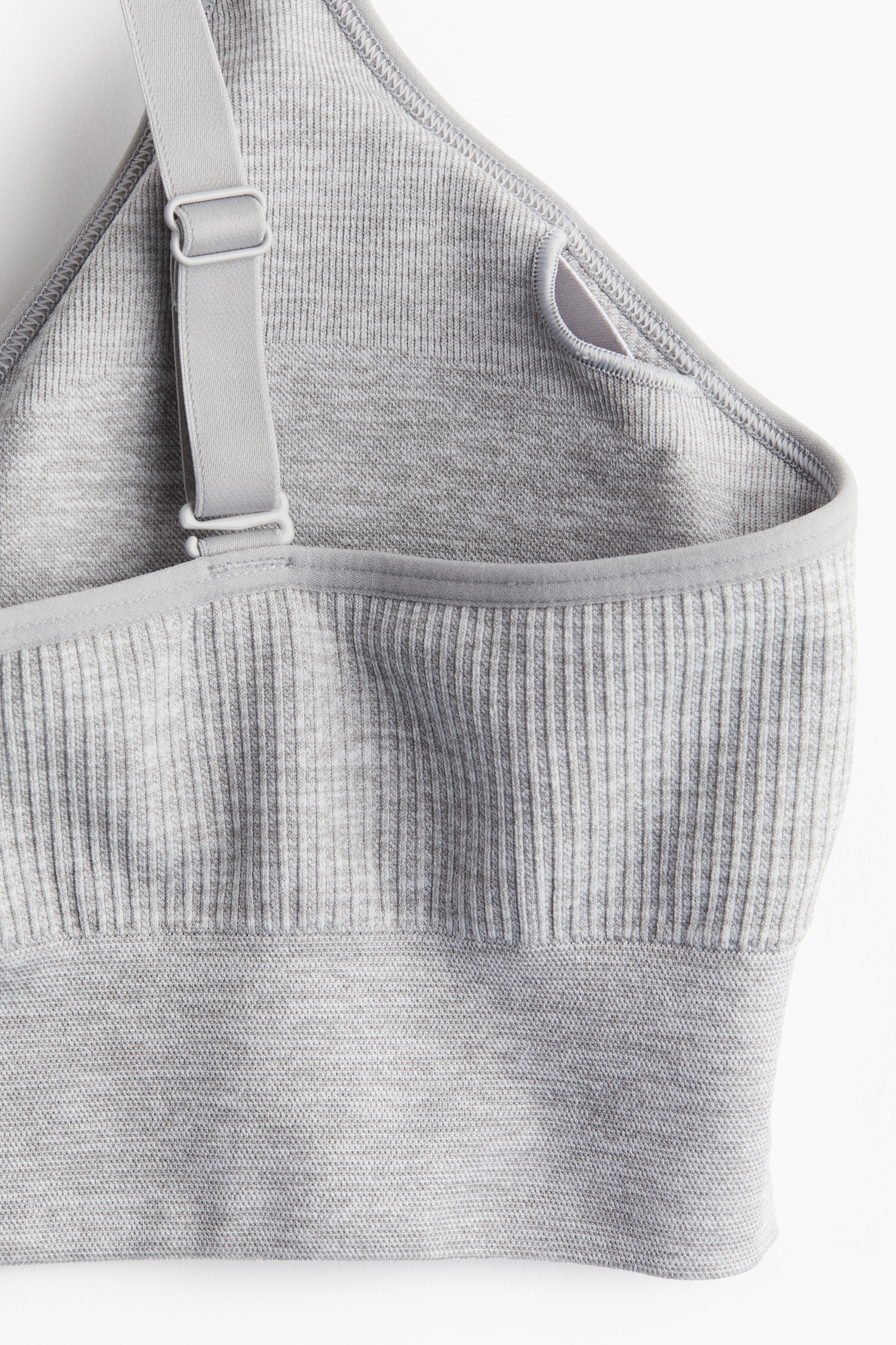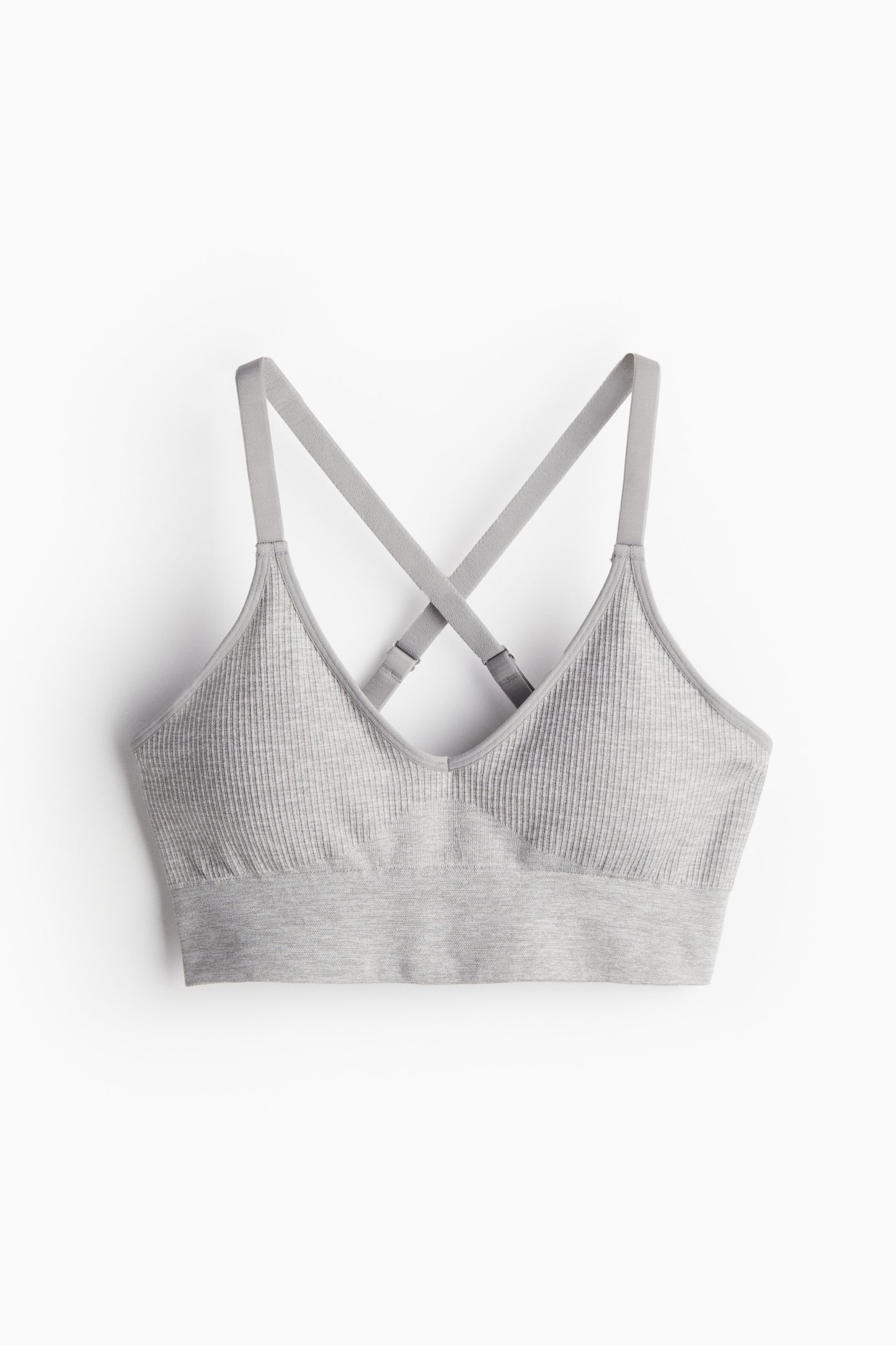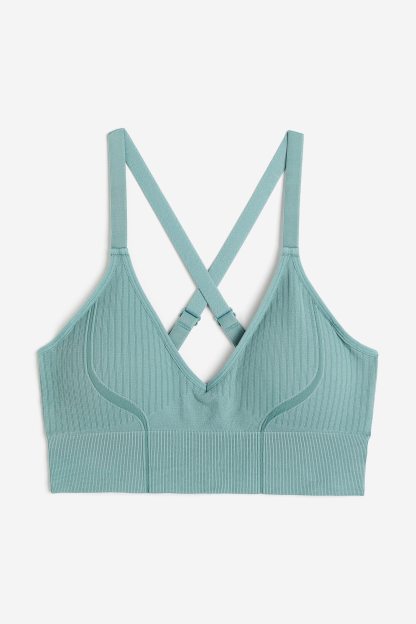 Sports bra in functional fabric made with DryMove™, which helps pull moisture away from your skin, keeping you comfortably dry while moving. Adjustable shoulder straps that can be fastened in various ways at the back, lined cups with removable inserts for an adjustable fit and to shape the bust, and wide elastication at the hem. Medium support suitable for moderate-intensity workouts. The bra is designed with the minimum number of seams for a more comfortable fit and increased mobility.