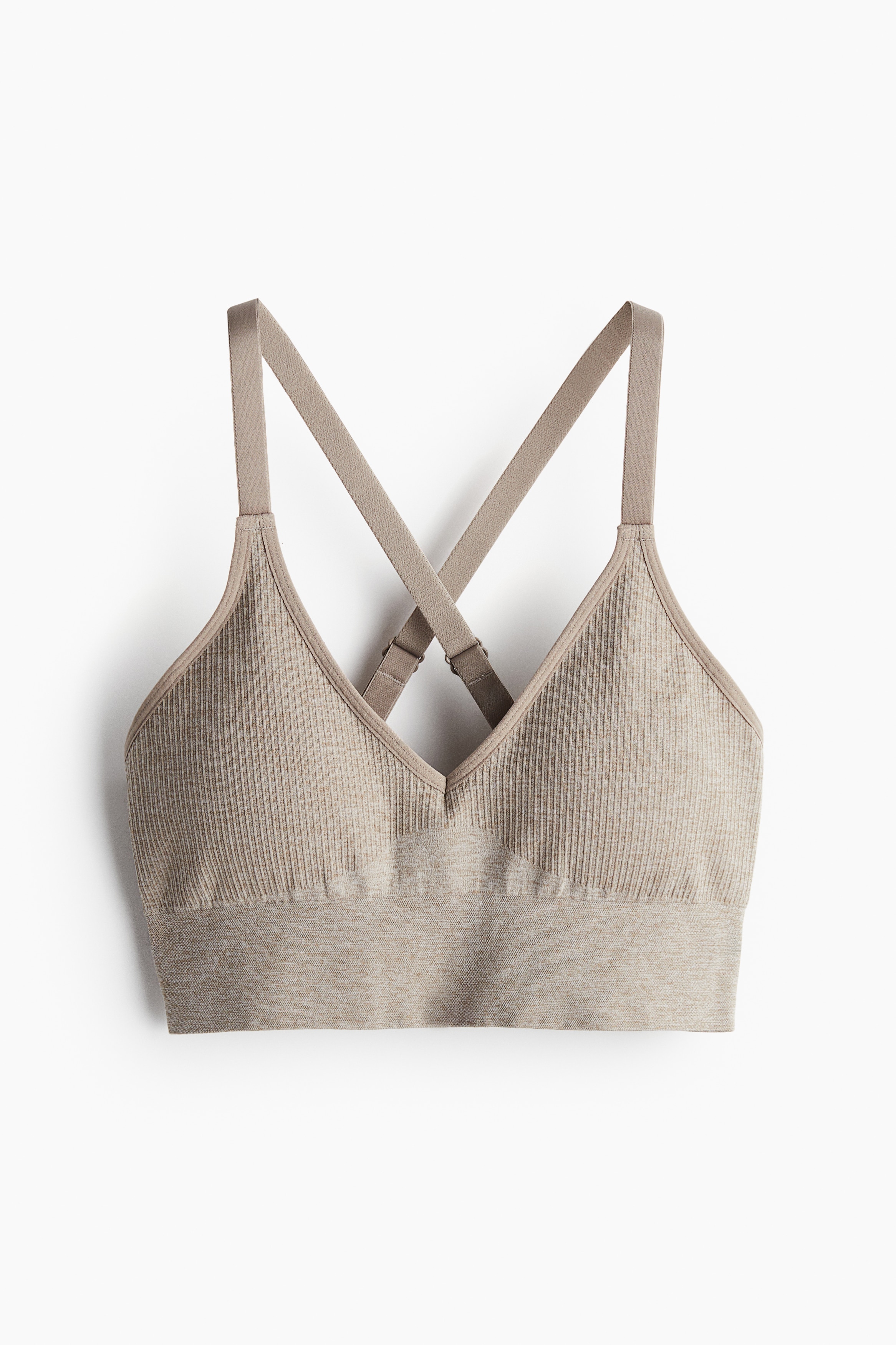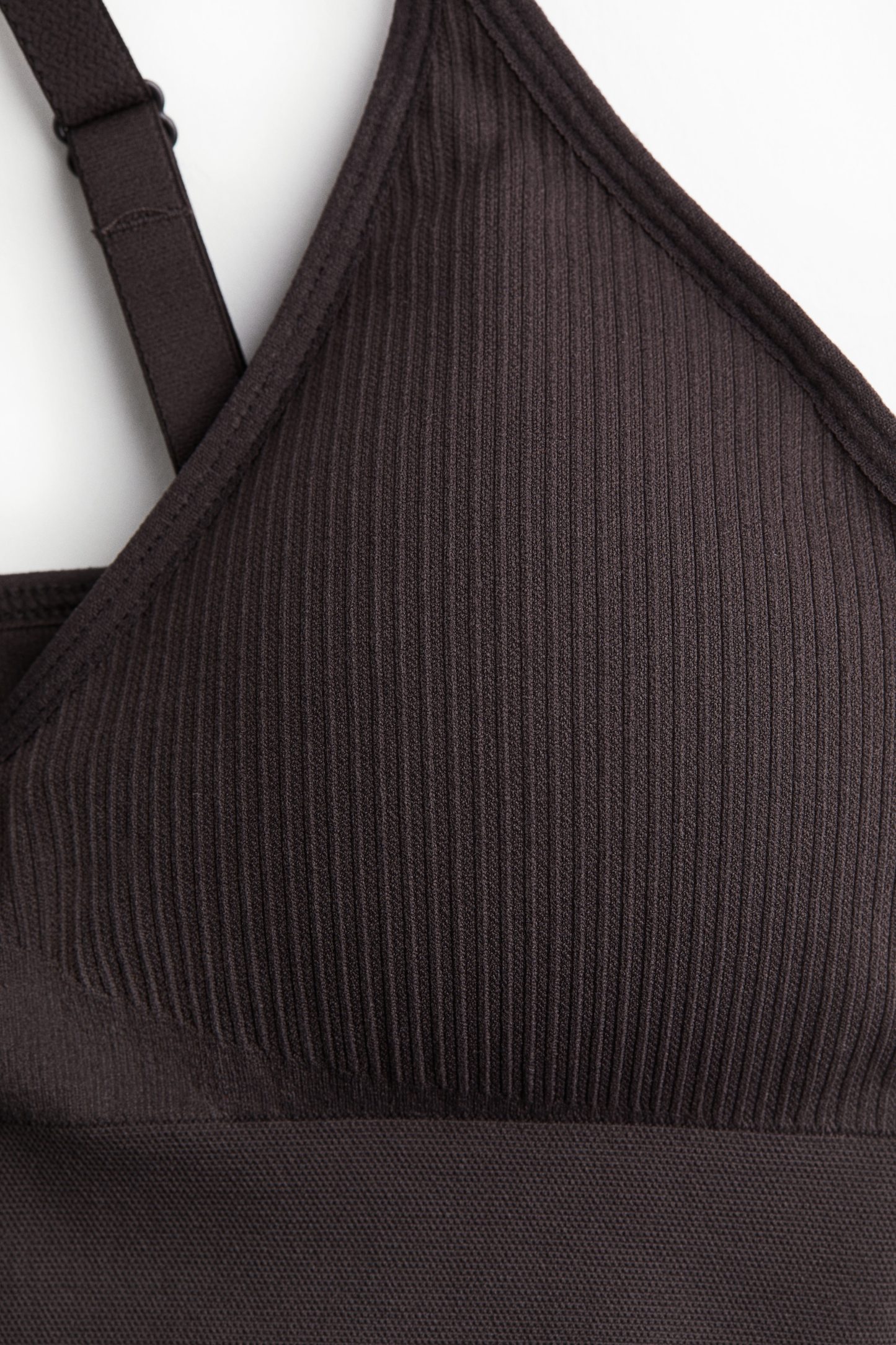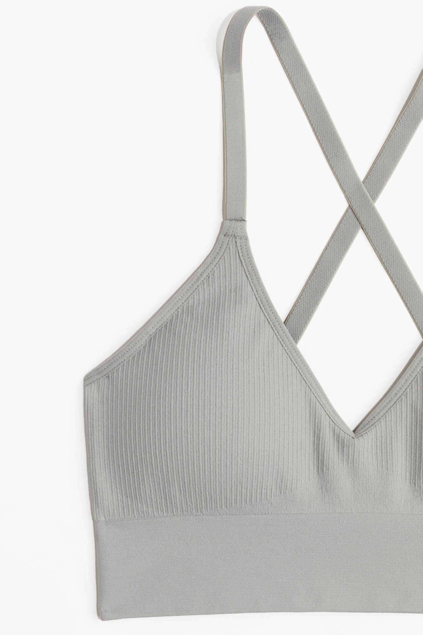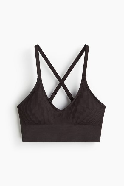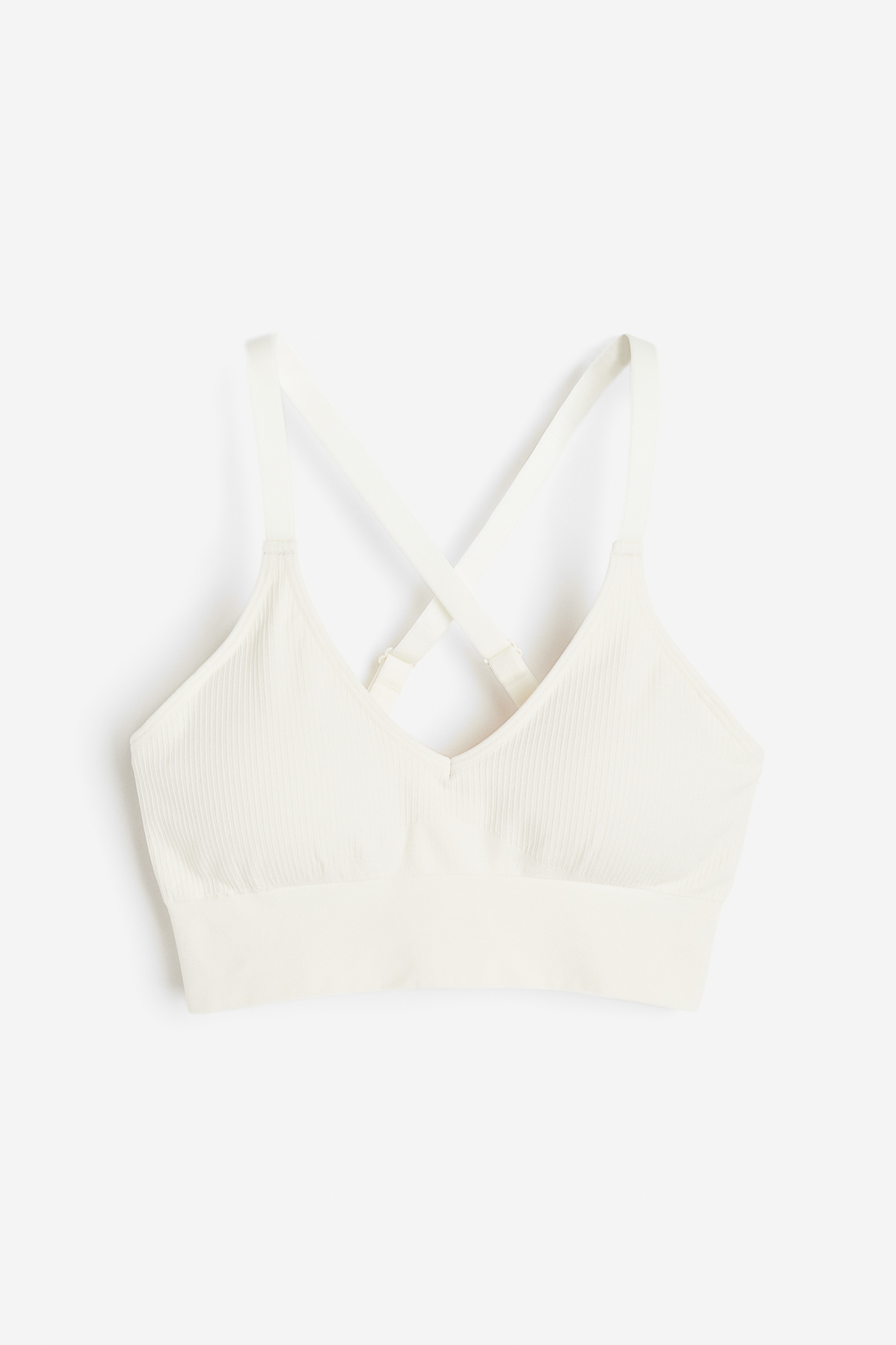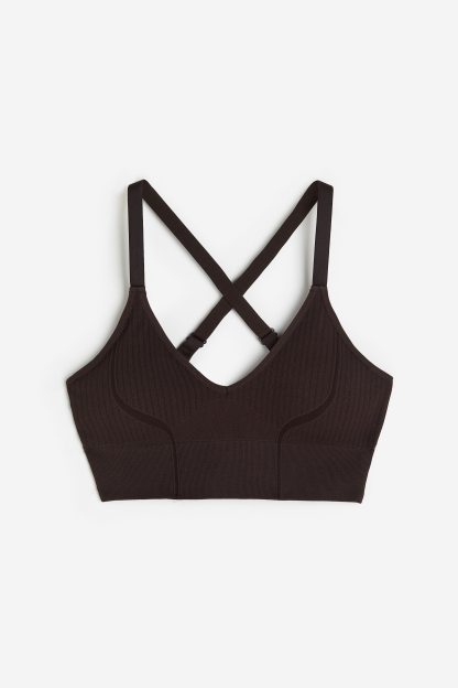 Sports bra in functional fabric made with DryMove™, which helps pull moisture away from your skin, keeping you comfortably dry while moving. Adjustable shoulder straps that can be fastened in various ways at the back, lined cups with removable inserts for an adjustable fit and to shape the bust, and wide elastication at the hem. Medium support suitable for moderate-intensity workouts. The bra is designed with the minimum number of seams for a more comfortable fit and increased mobility.