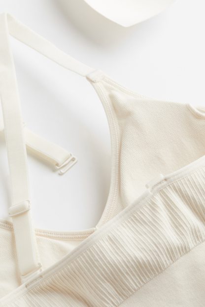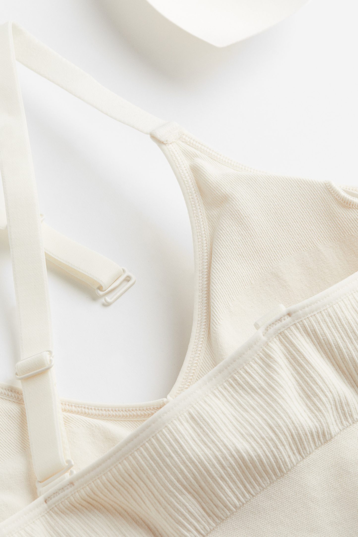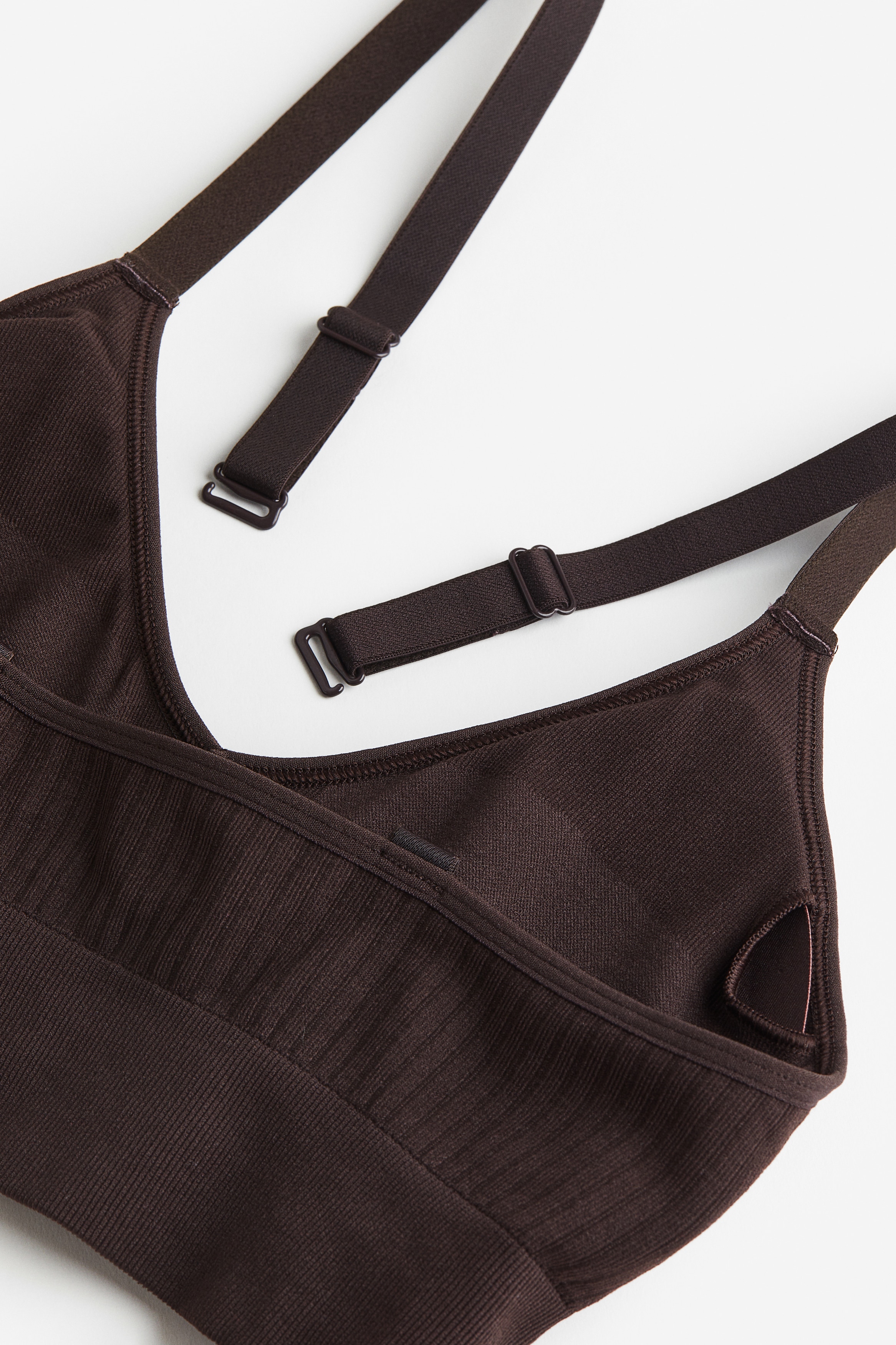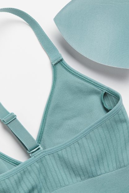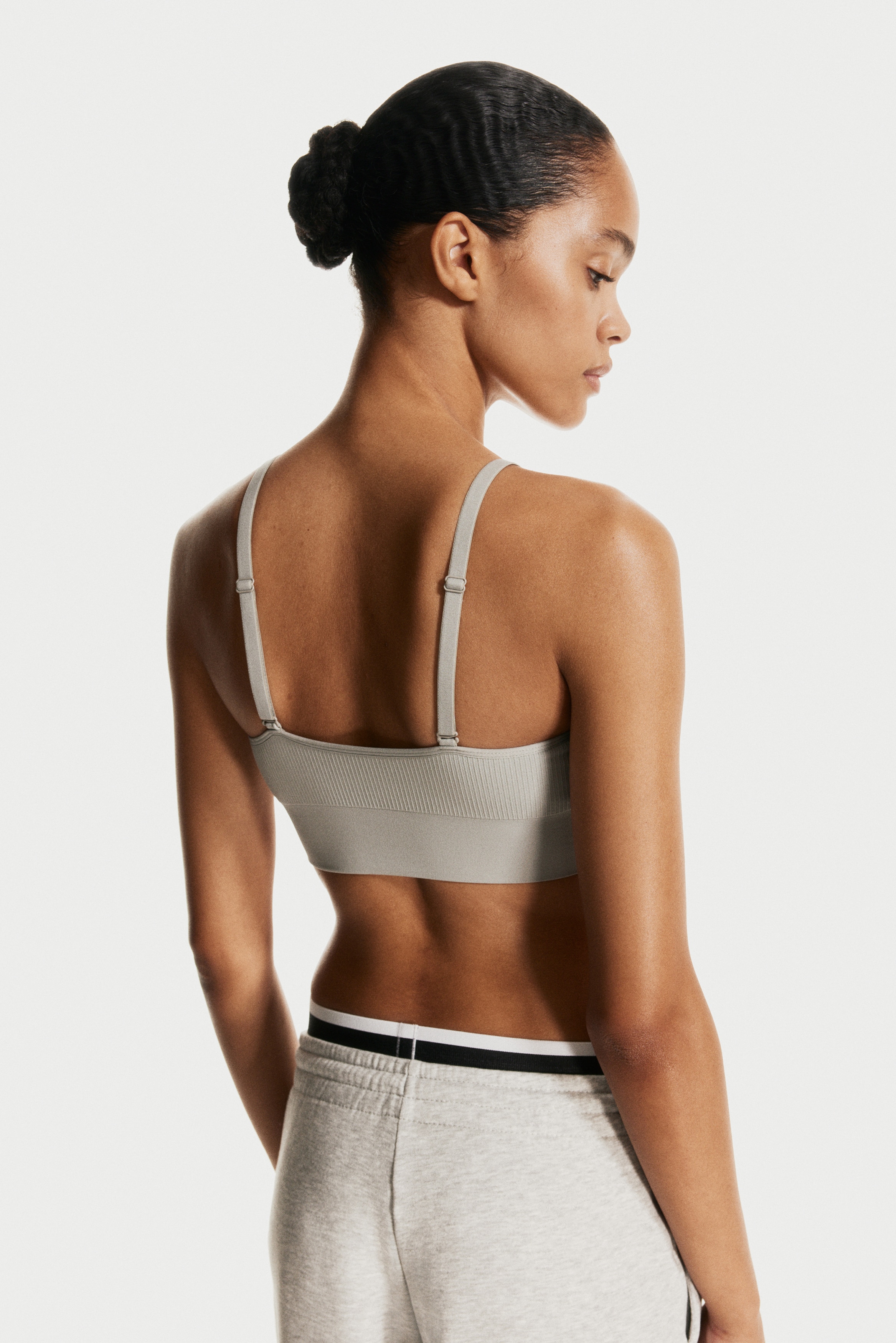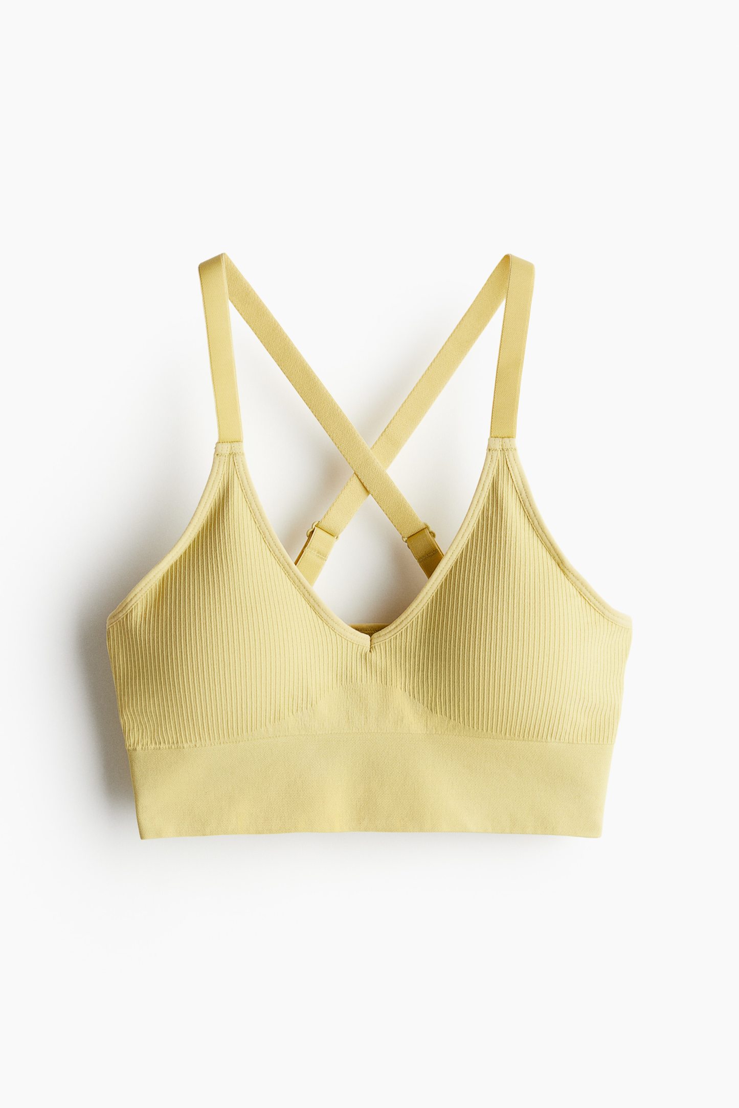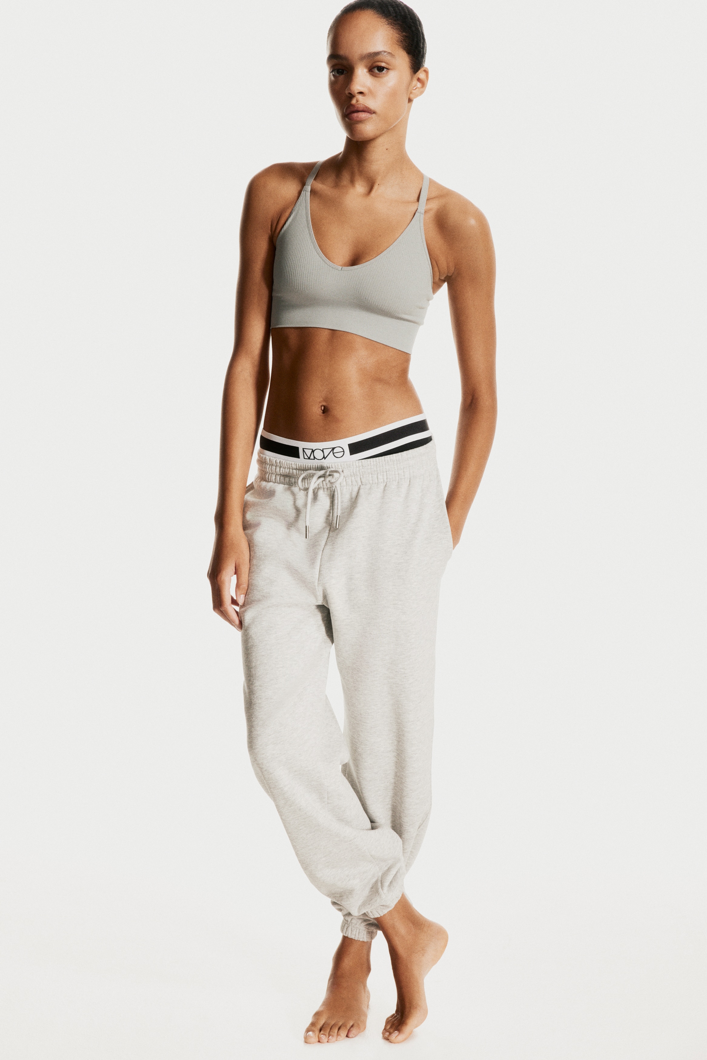 Sports bra in functional fabric made with DryMove™, which helps pull moisture away from your skin, keeping you comfortably dry while moving. Adjustable shoulder straps that can be fastened in various ways at the back, lined cups with removable inserts for an adjustable fit and to shape the bust, and wide elastication at the hem. Medium support suitable for moderate-intensity workouts. The bra is designed with the minimum number of seams for a more comfortable fit and increased mobility.