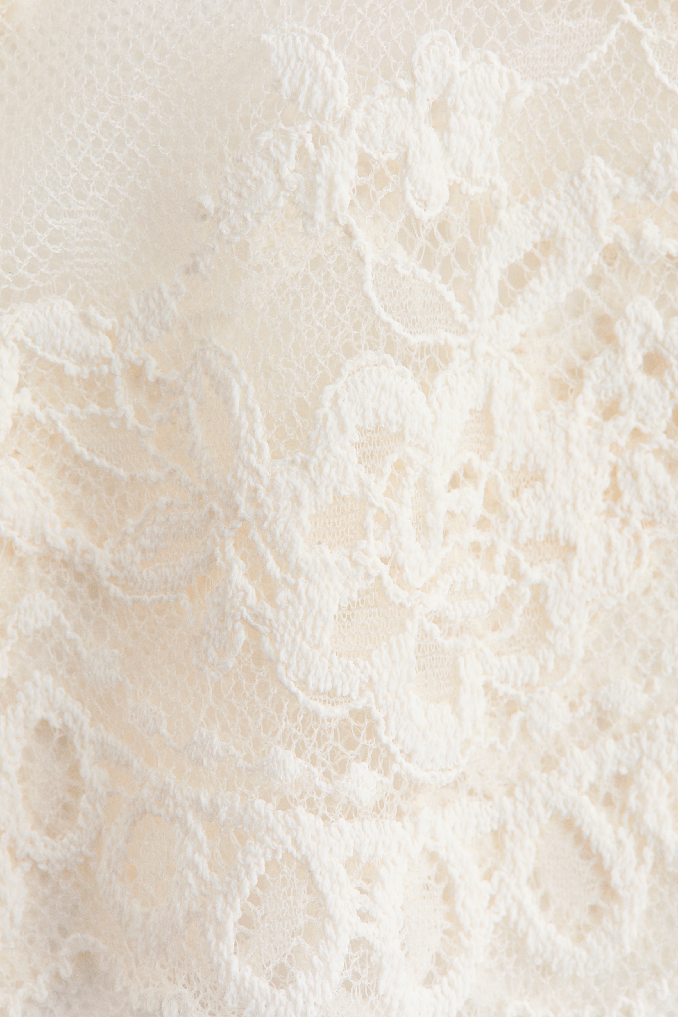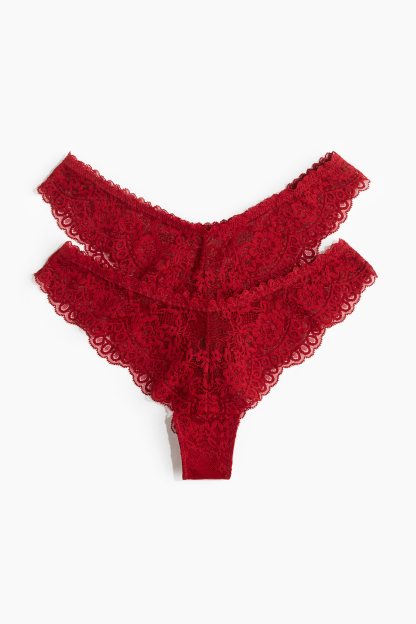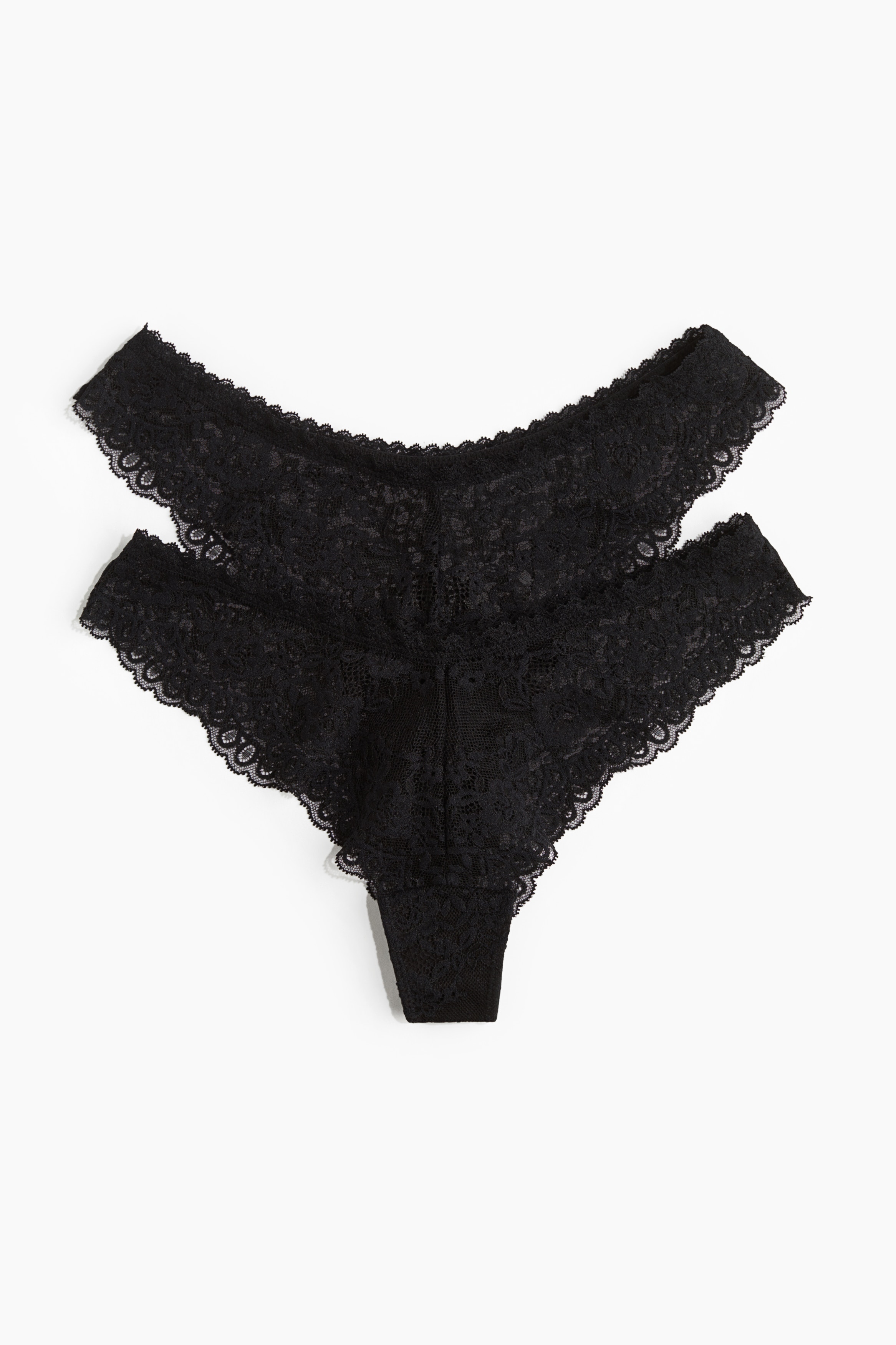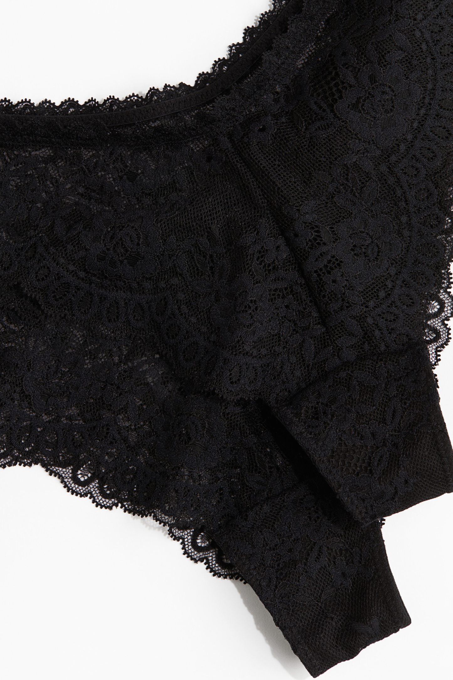 Briefs in lace with a low, V-shaped waist, lined gusset and a high cut at the back.