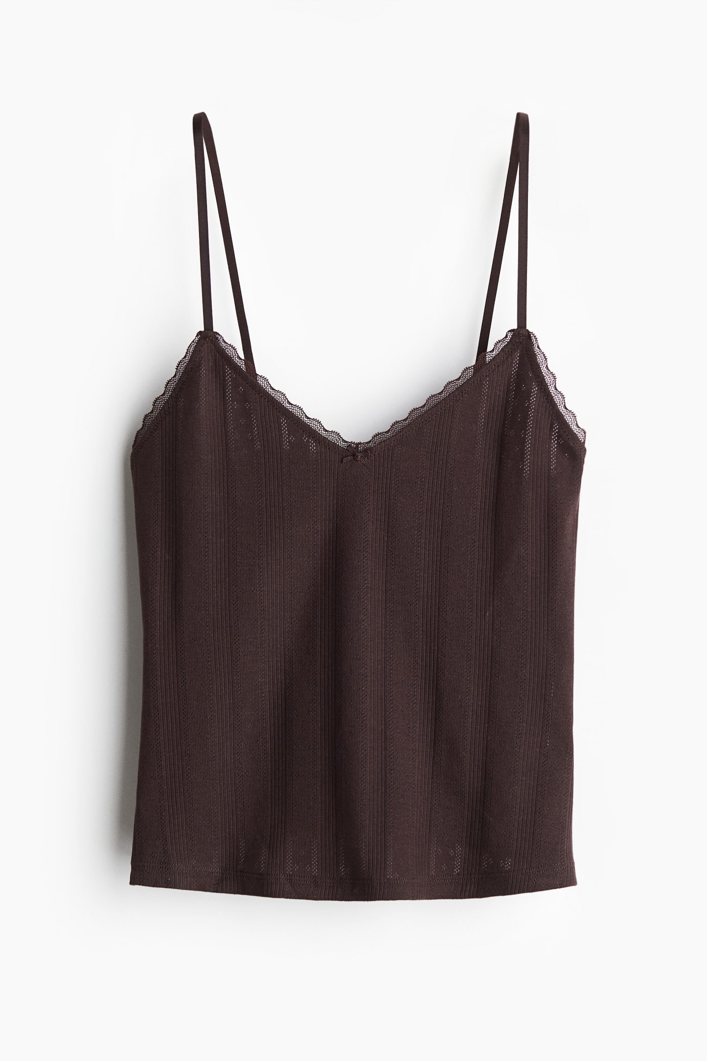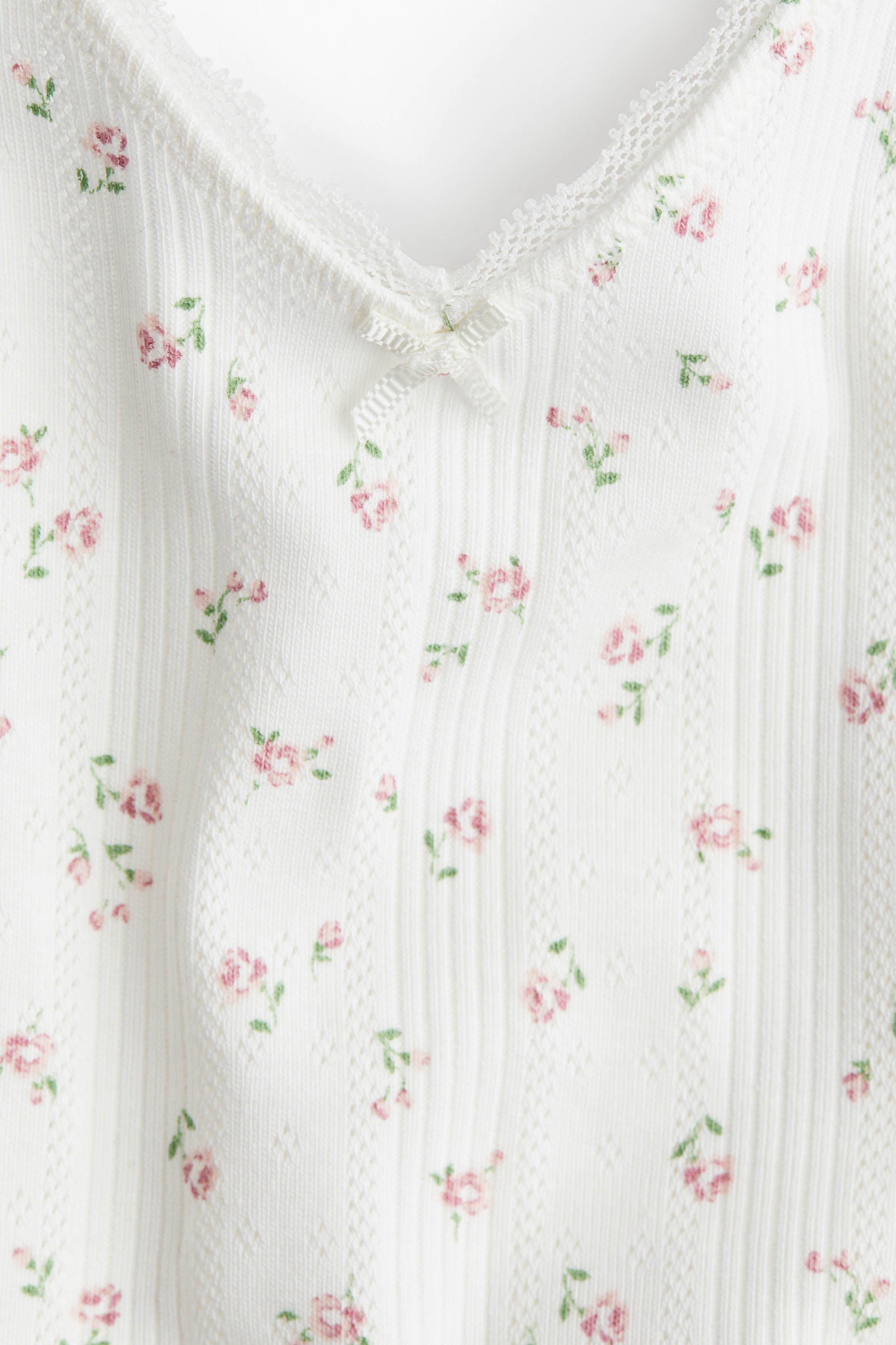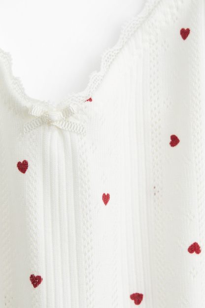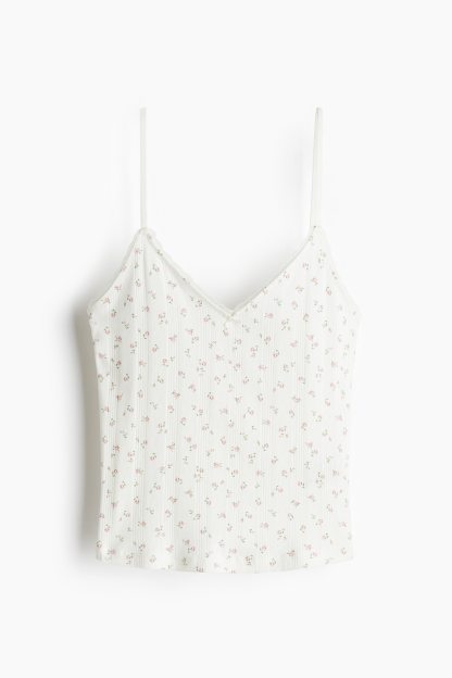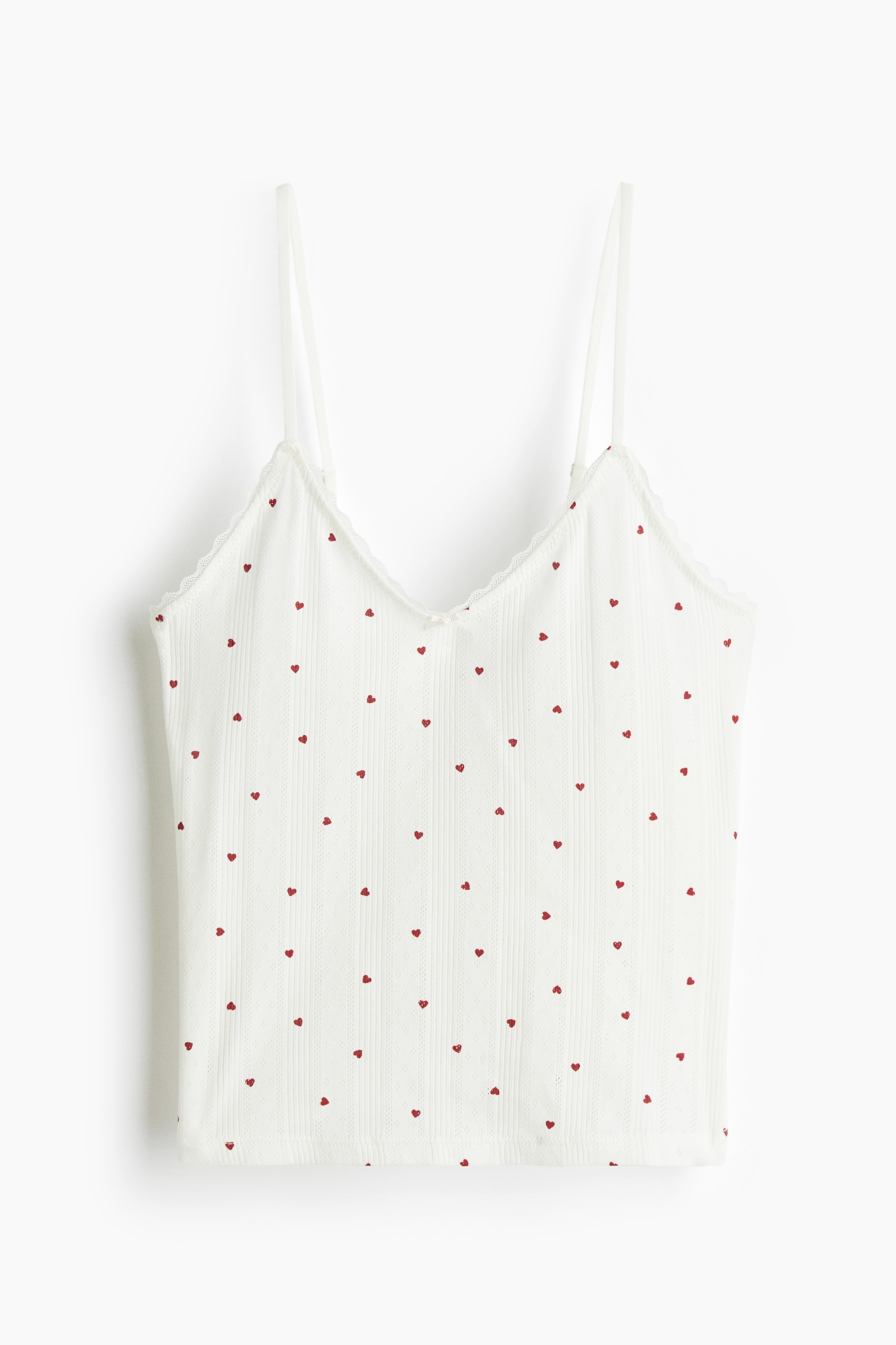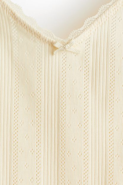 Short top in cotton pointelle jersey with adjustable shoulder straps and a V-shaped neckline.