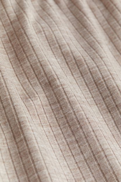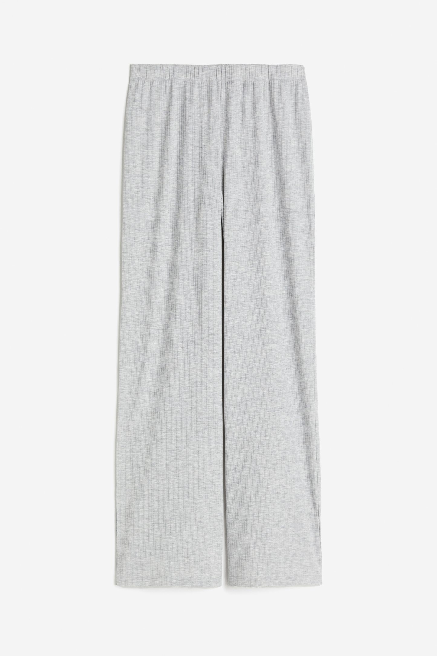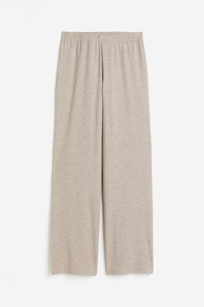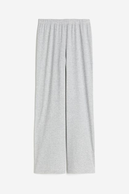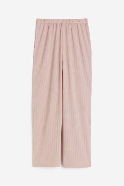 Pyjama buttoms in soft ribbed jersey with covered elastication at the waist and wide, straight legs.