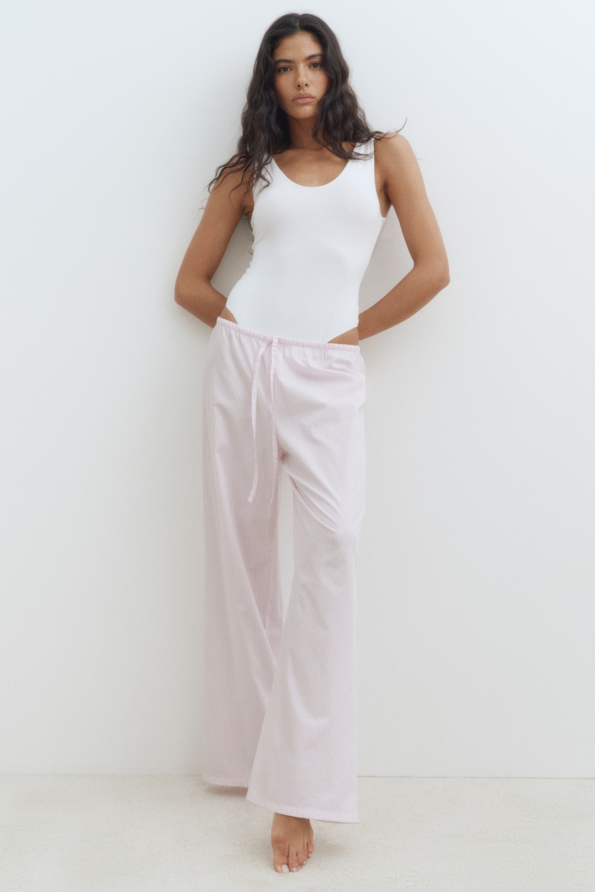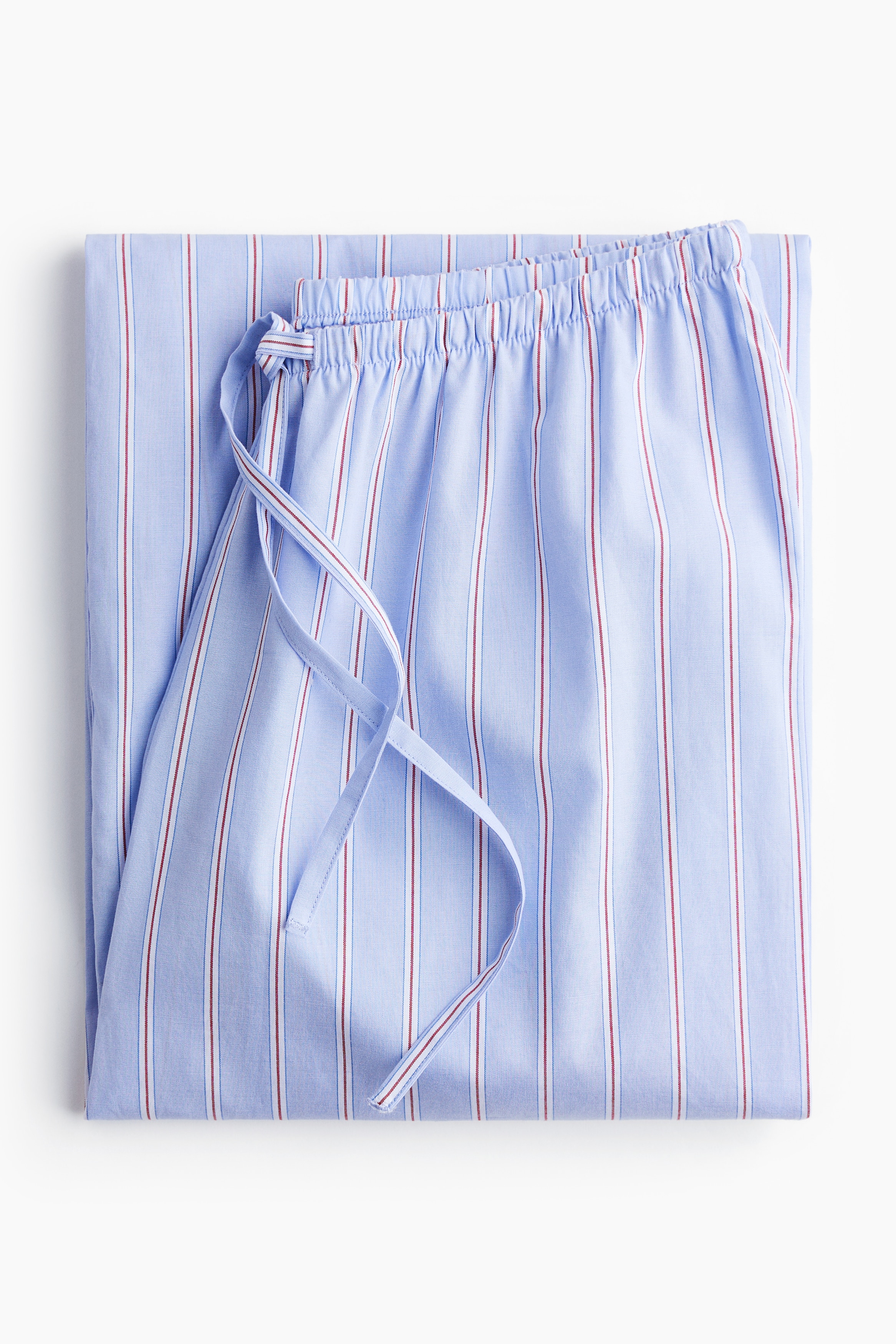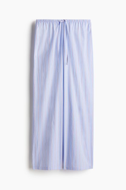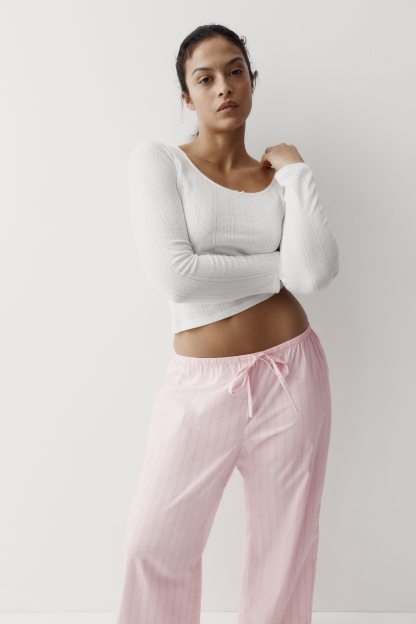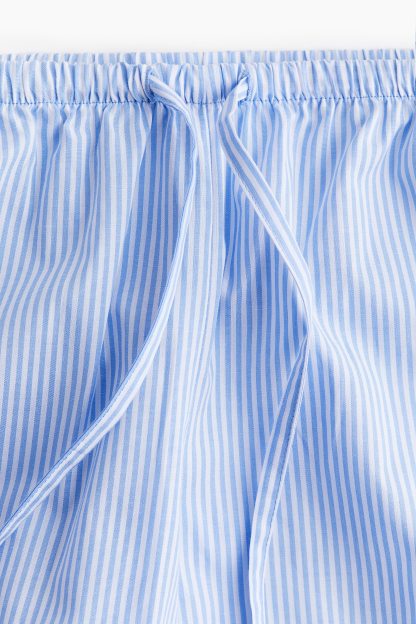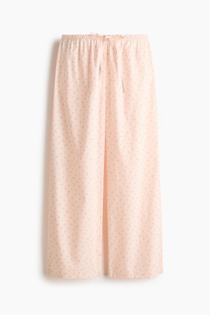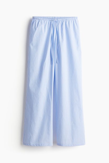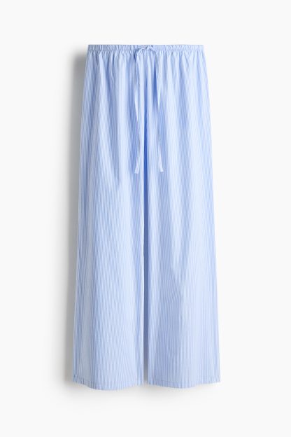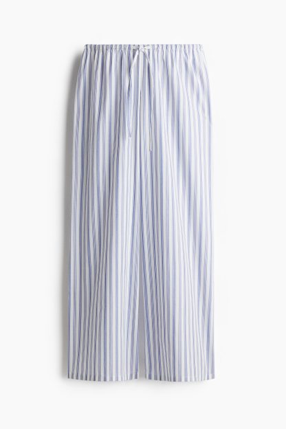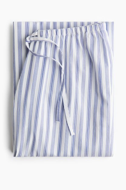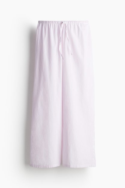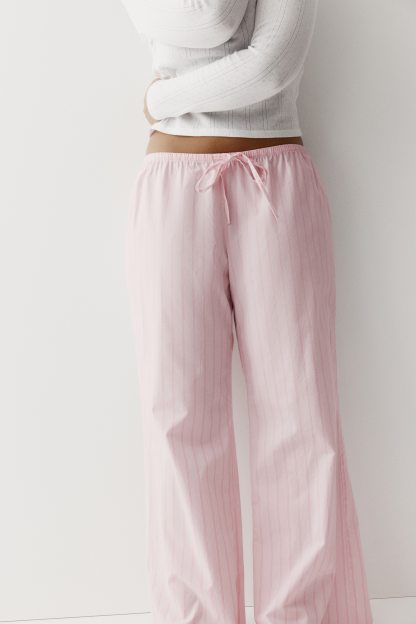 Loose-fit pyjama bottoms in a cotton weave featuring a low waist with covered elastication and a narrow drawstring. Straight, gently flared legs.