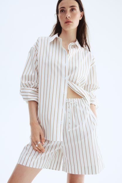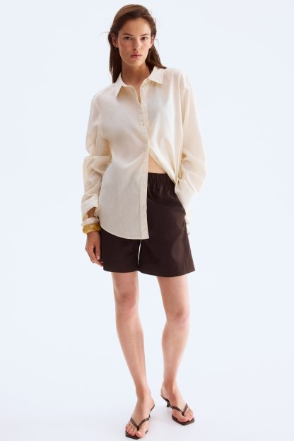 Loose-fit shorts in a cotton weave with discreet side pockets and a high waist with covered elastication and a narrow drawstring.
