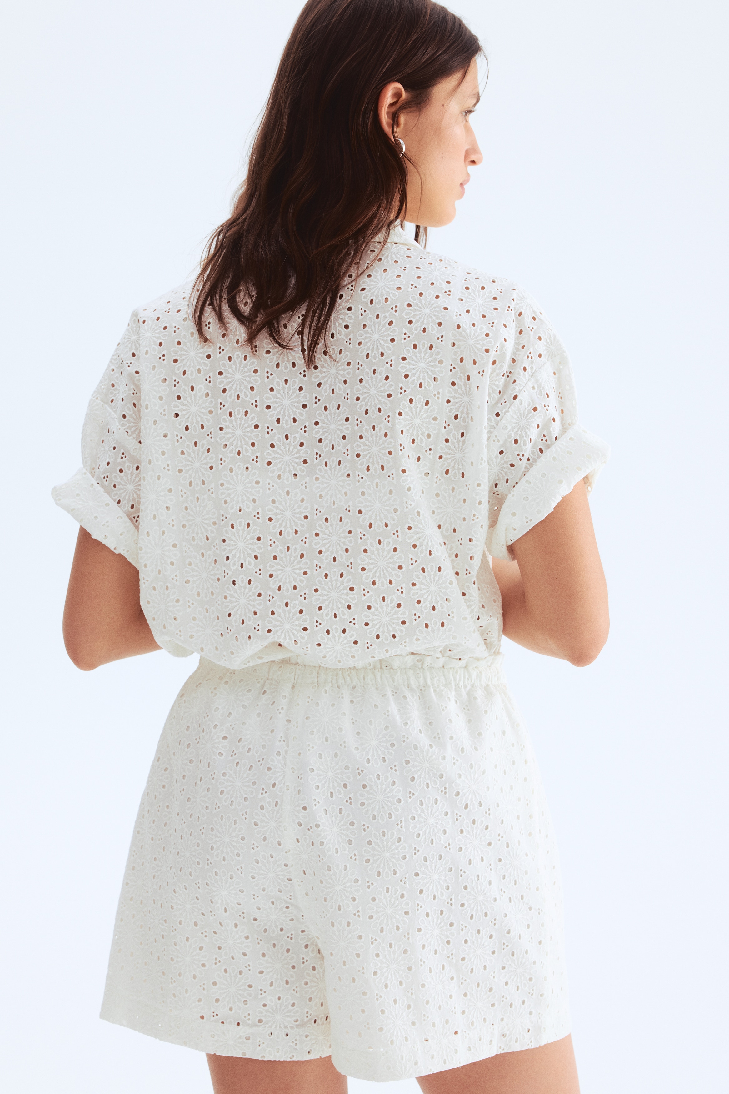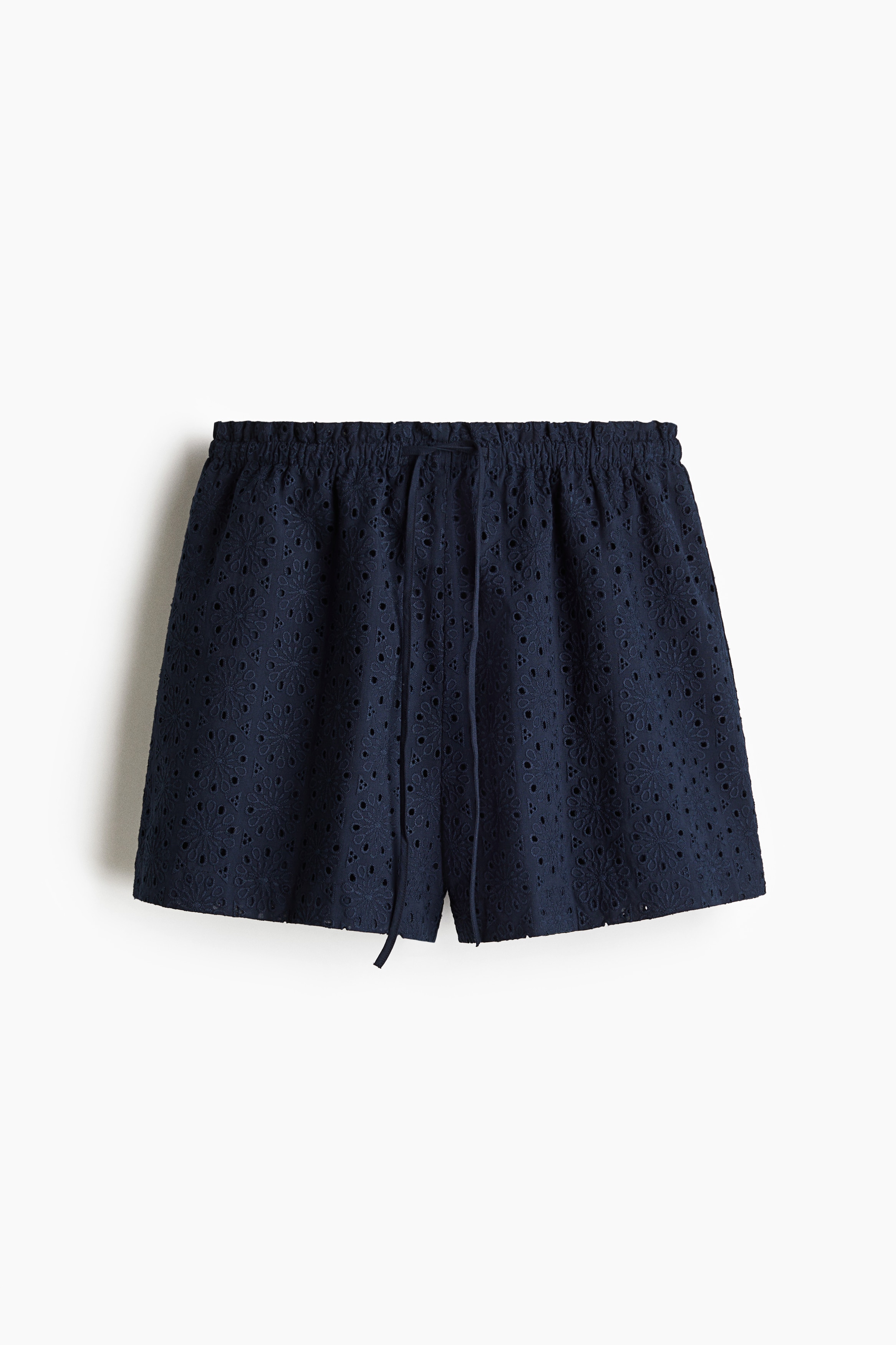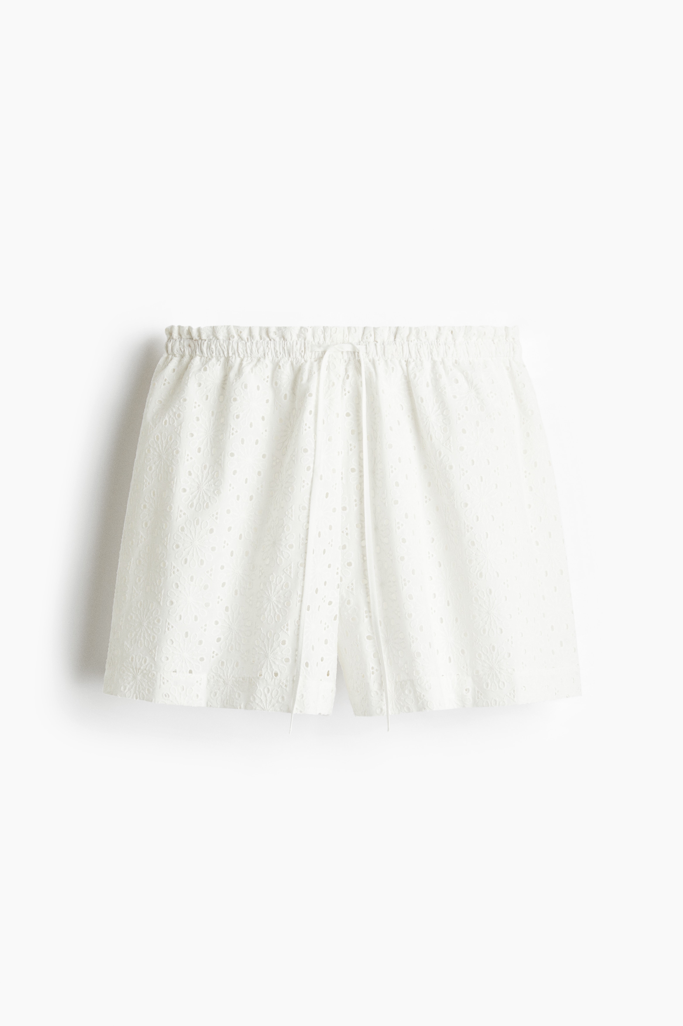 Loose-fit shorts in a cotton weave with all-over broderie anglaise. Features a high, elasticated waist with a narrow drawstring and a small frill trim. Lined.