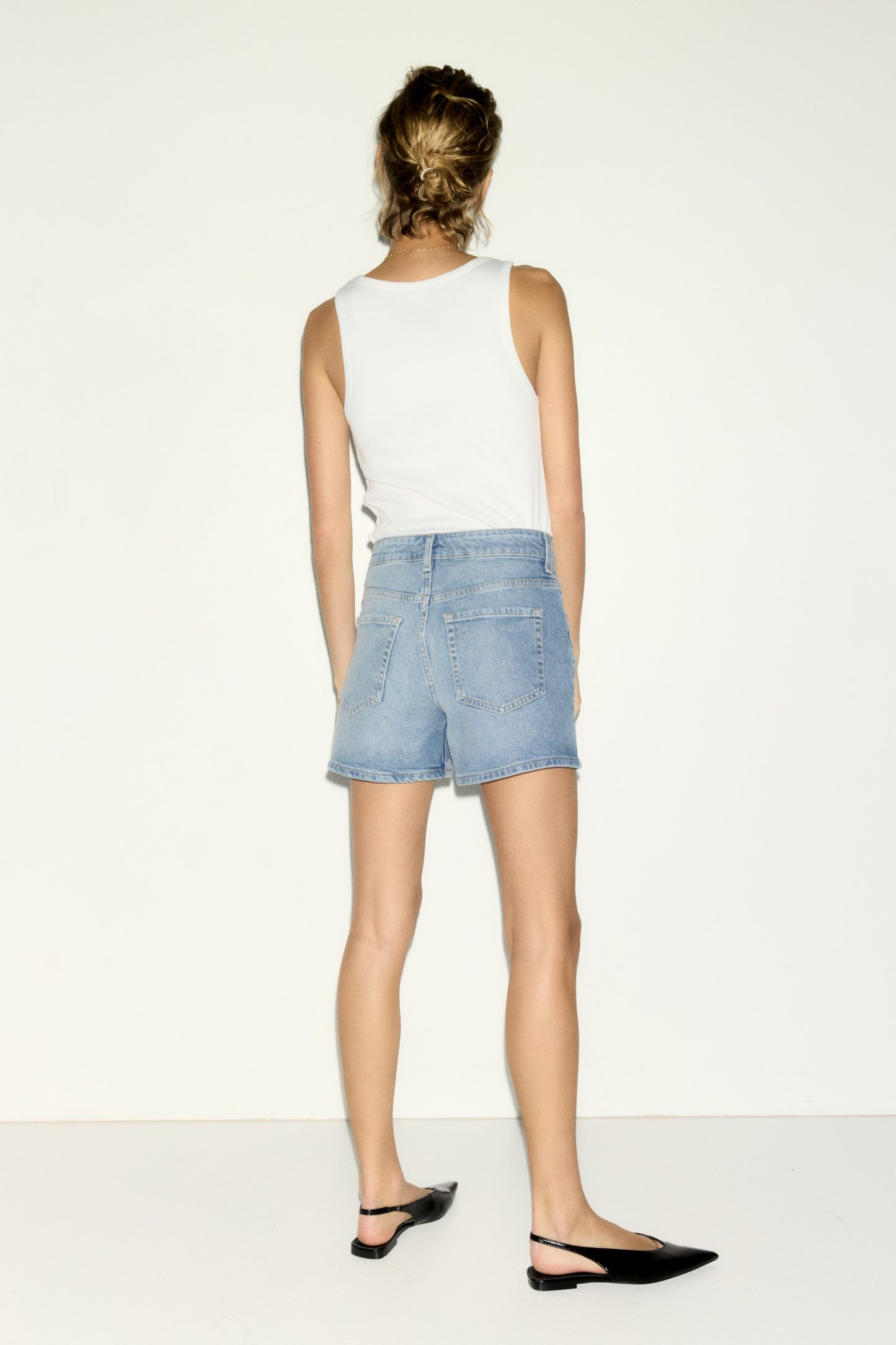 5-pocket shorts in slightly stretchy cotton denim with a zip fly and div.
