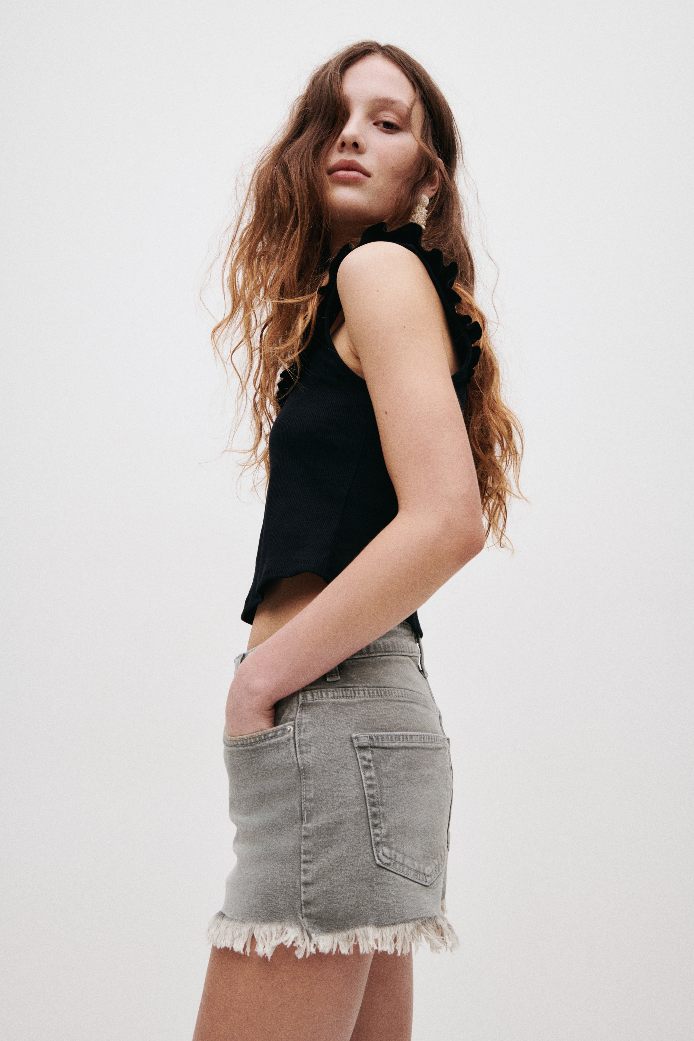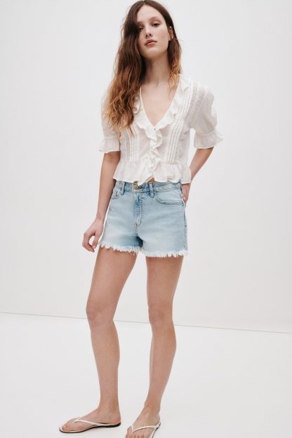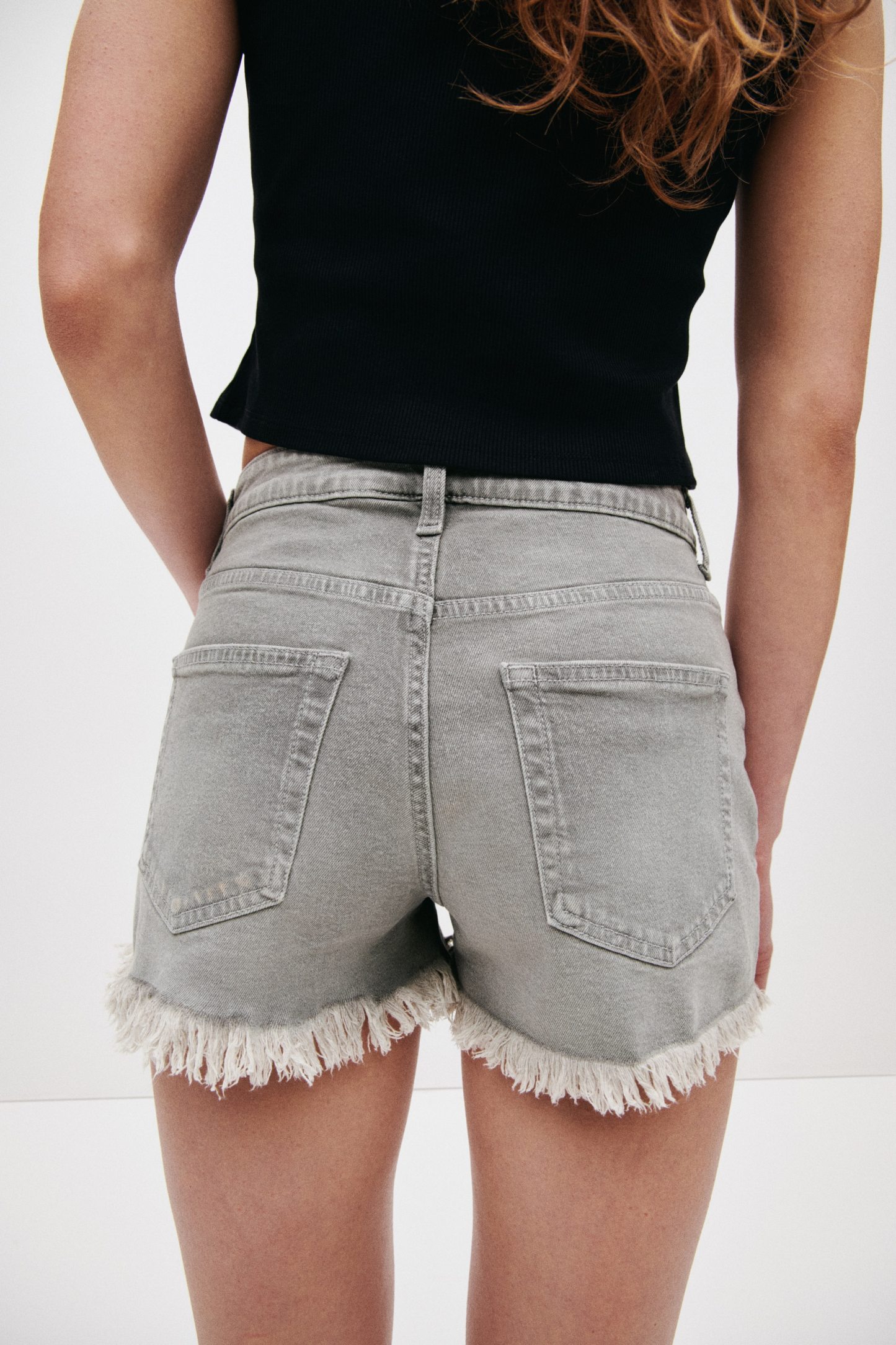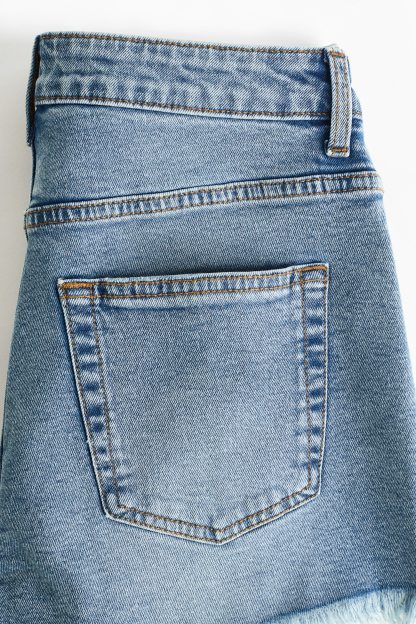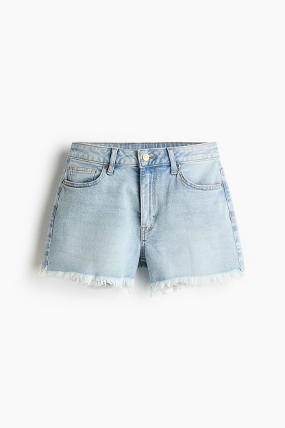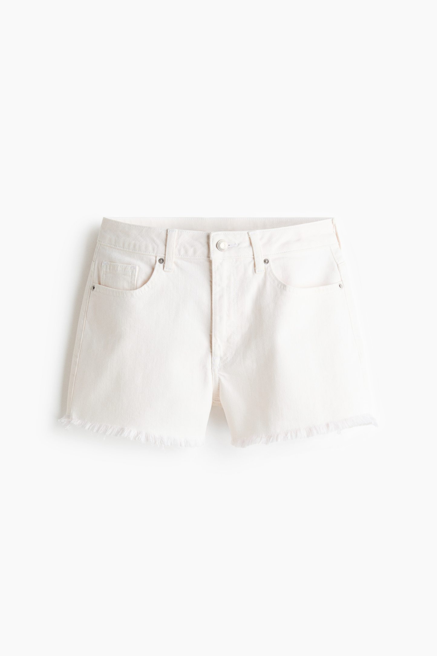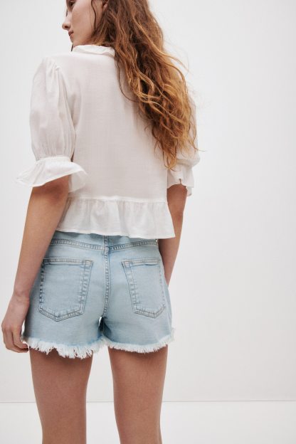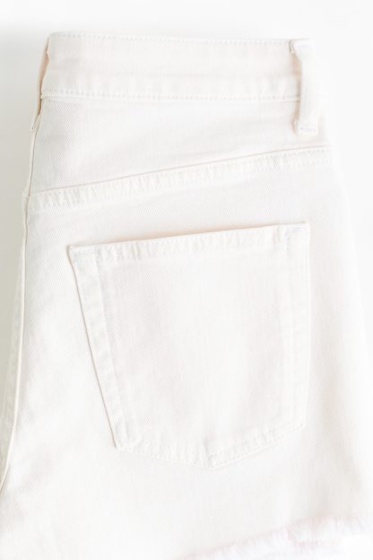 5-pocket shorts in cotton denim with a slight stretch for good comfort. High waist with a zip fly and div and a frayed edge at the hems.