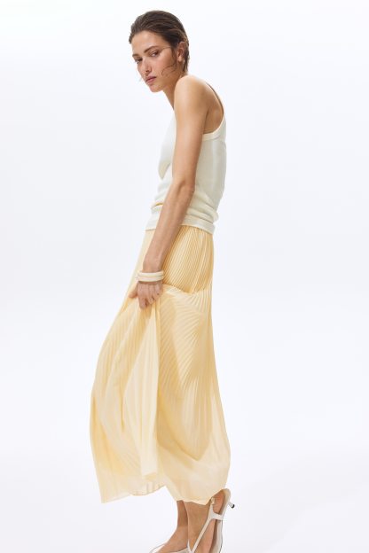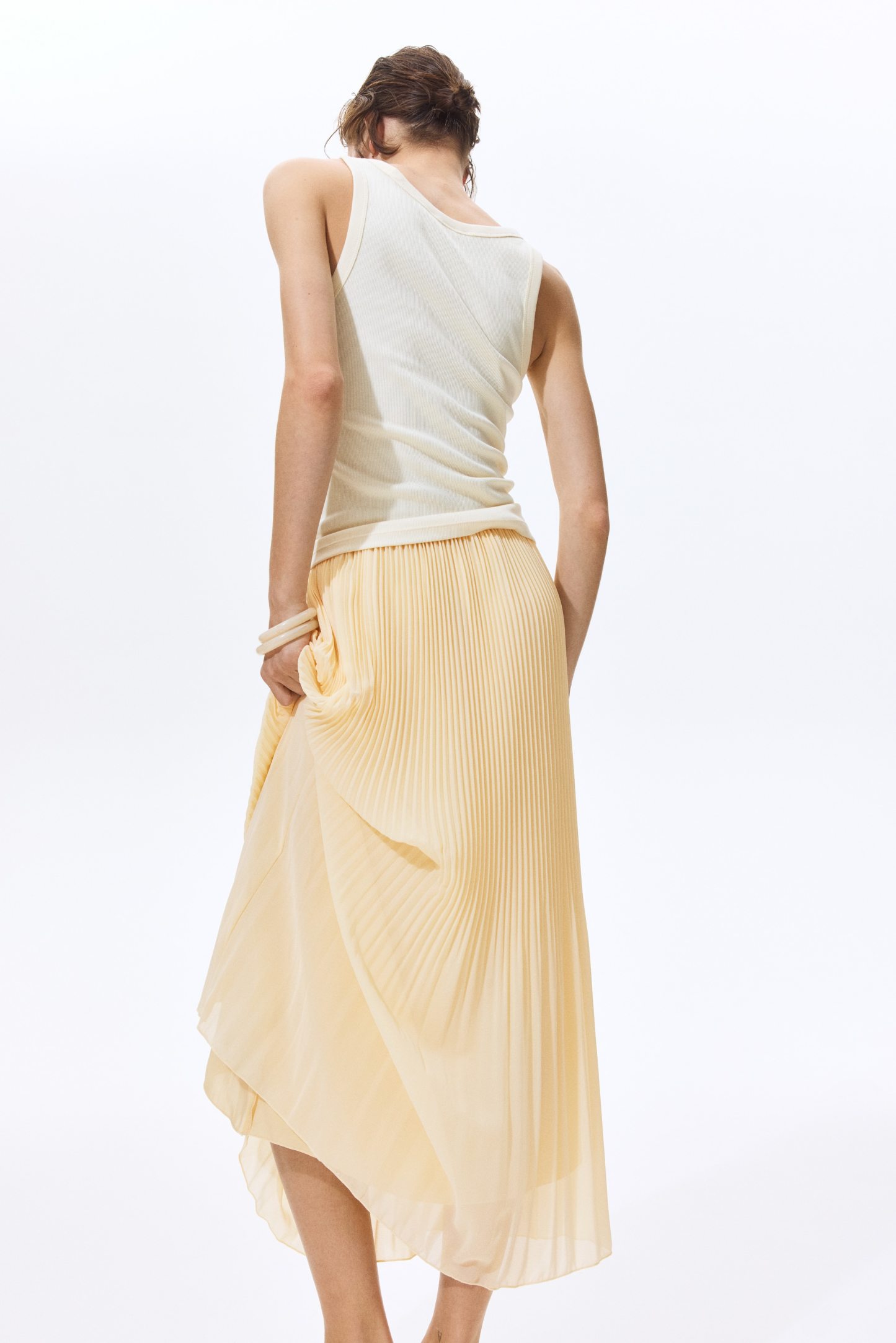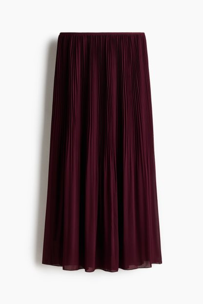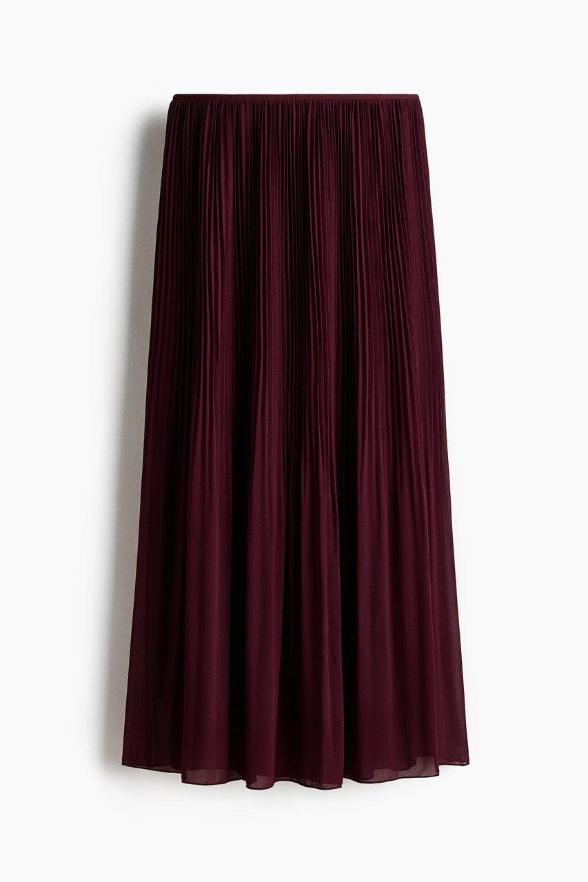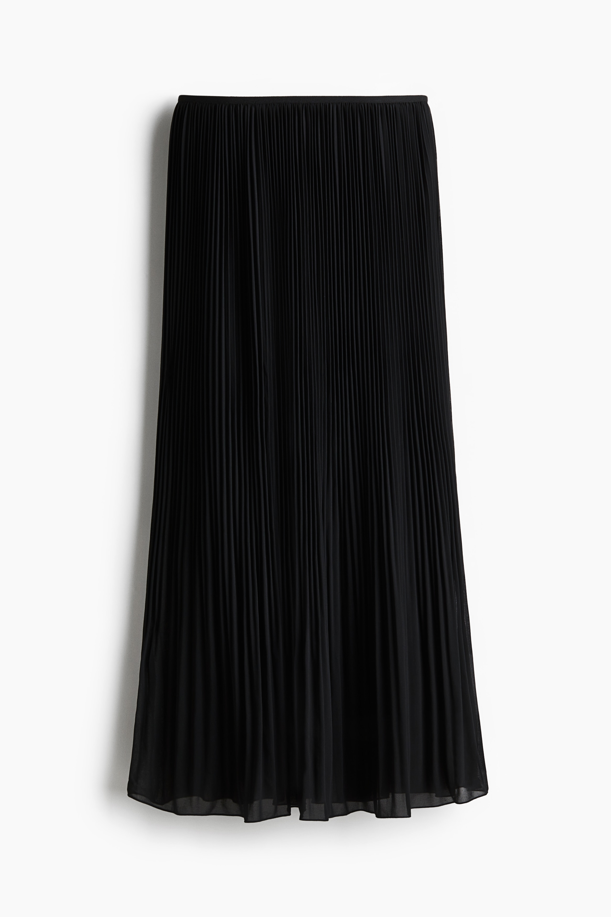 Long, flared skirt in pleated chiffon featuring a high waist with narrow elastication and an overlocked hem. Lined.