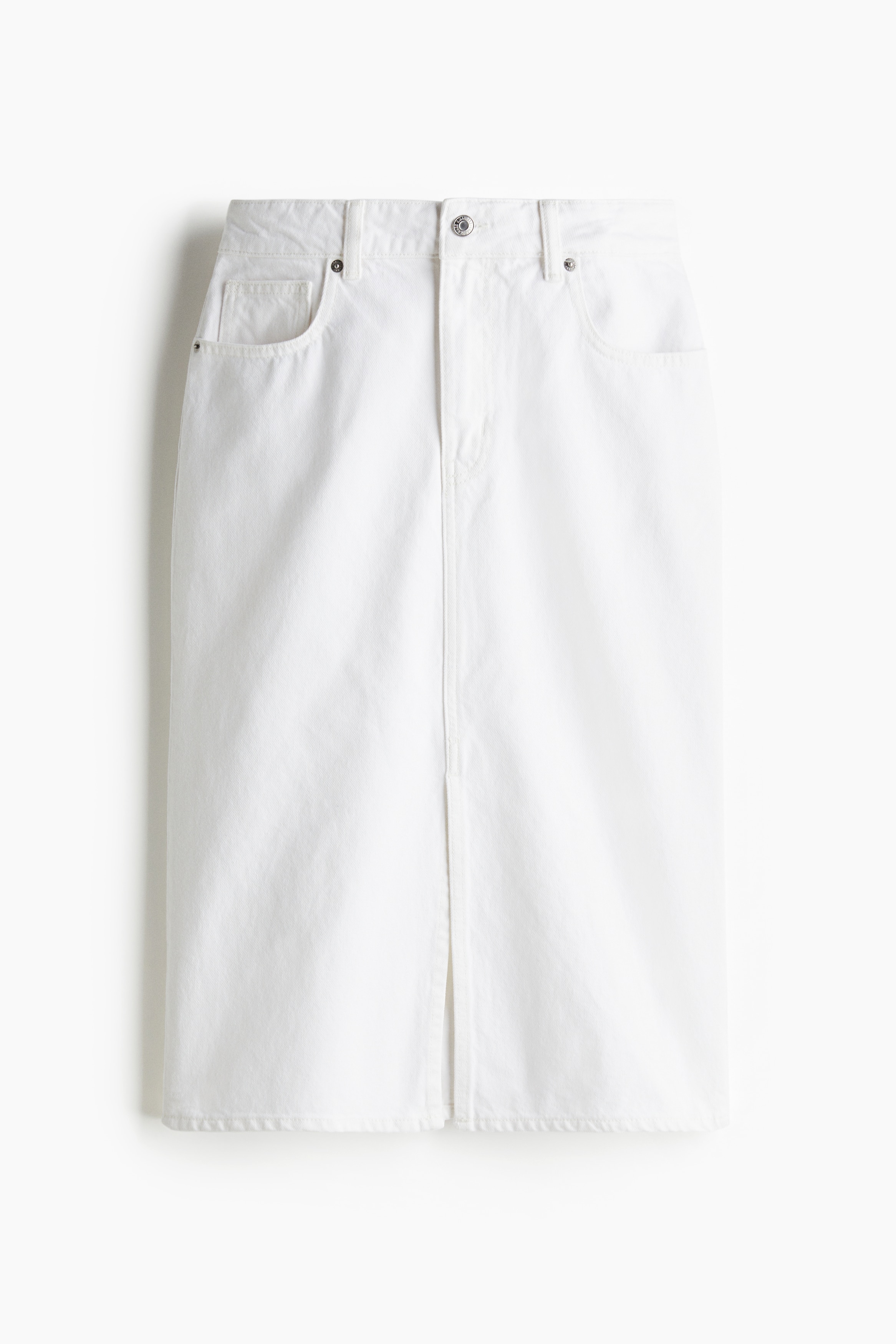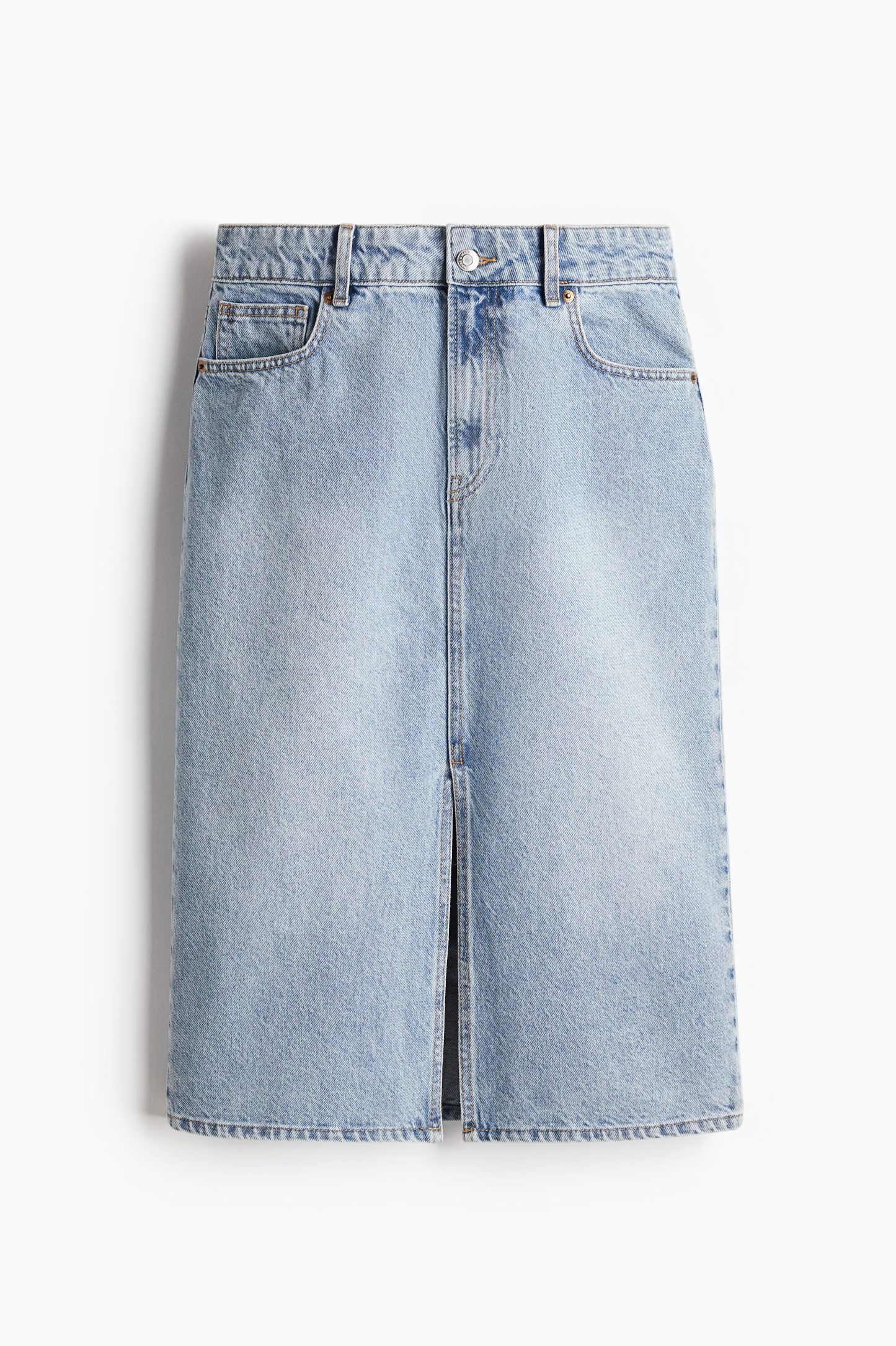 Calf-length, 5-pocket skirt in cotton denim with a regular waist and a zip fly with a div. Straight-cut hem with a slit at the front.