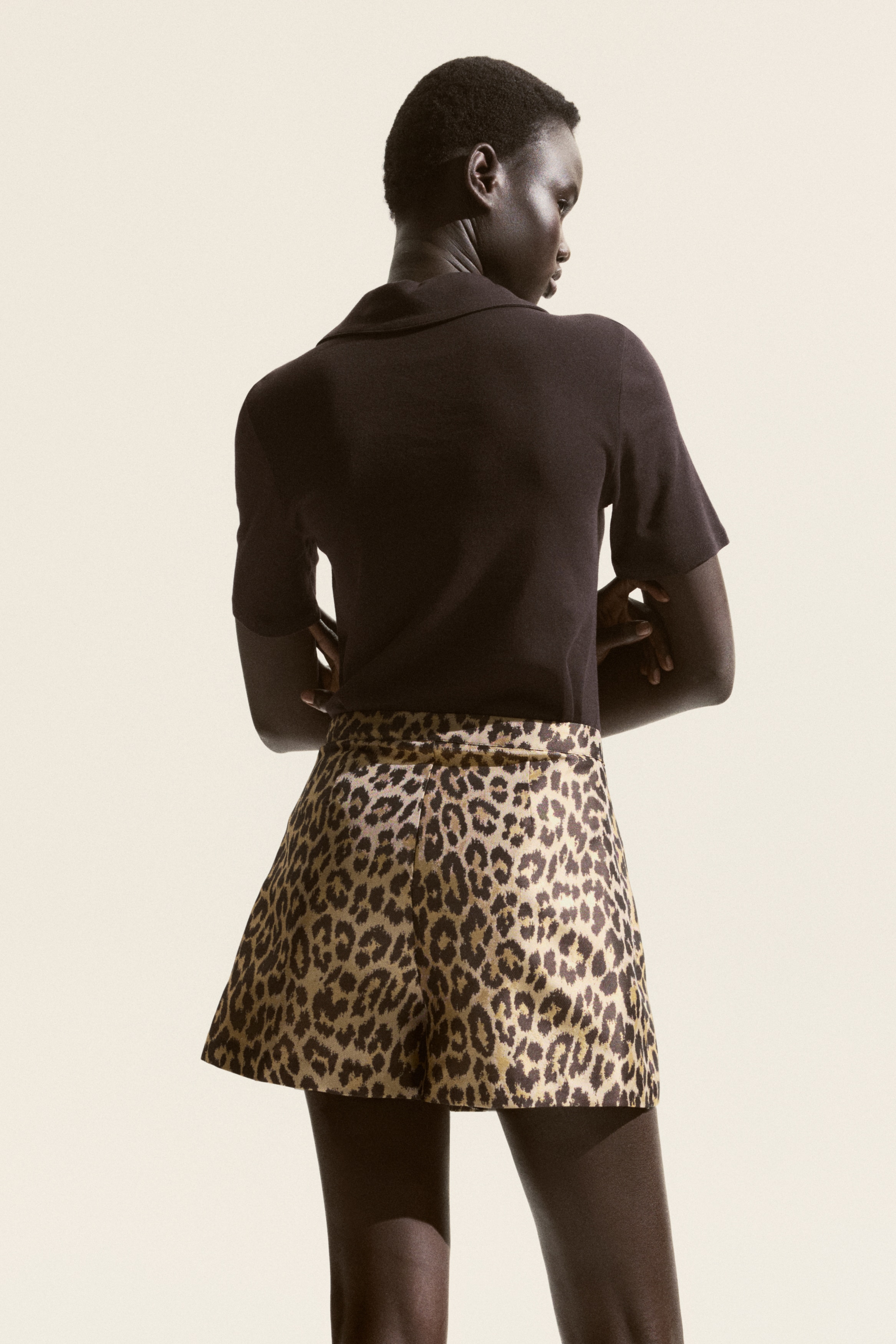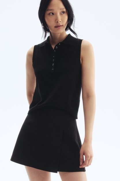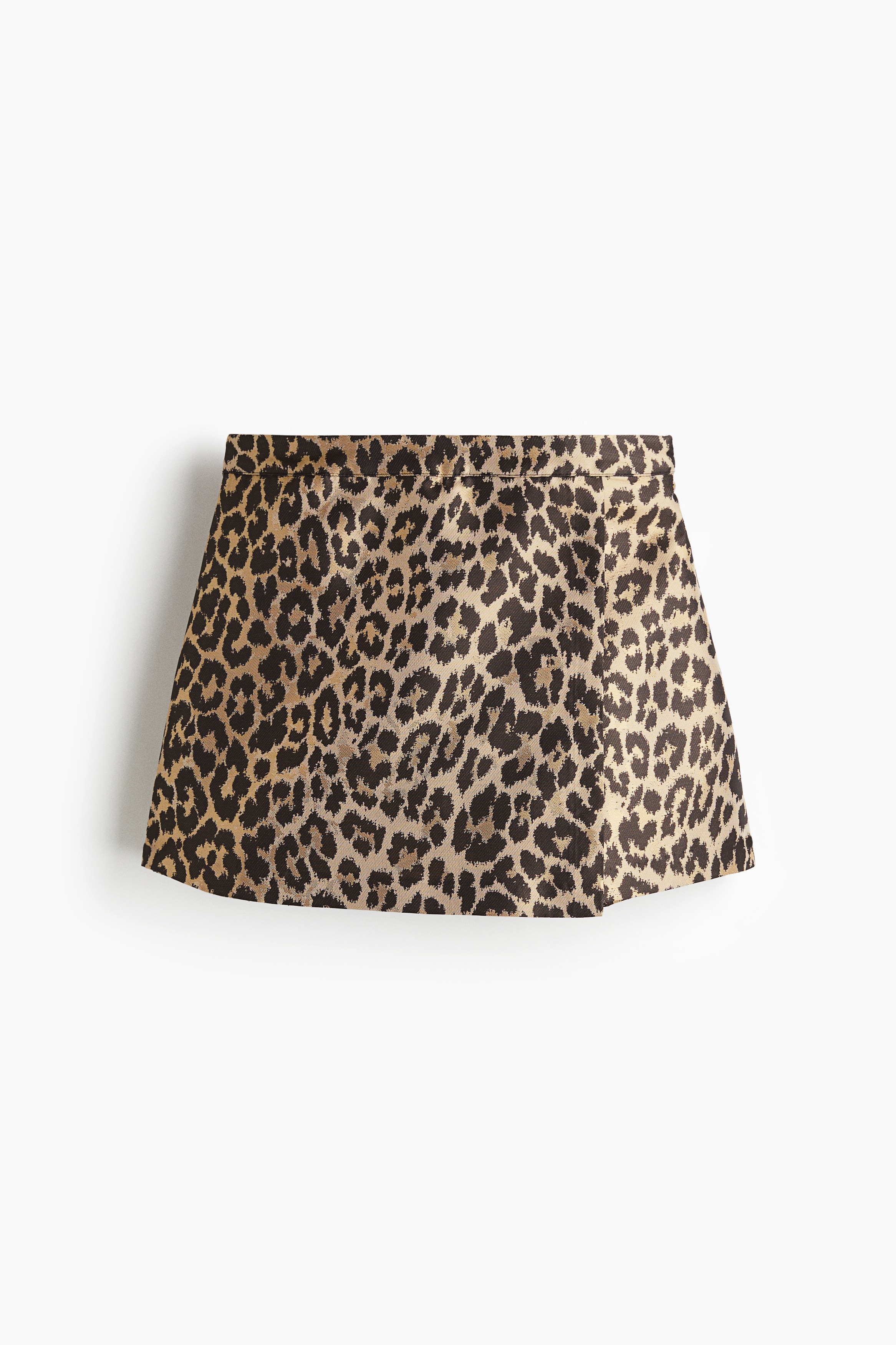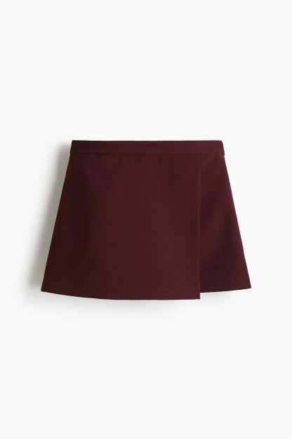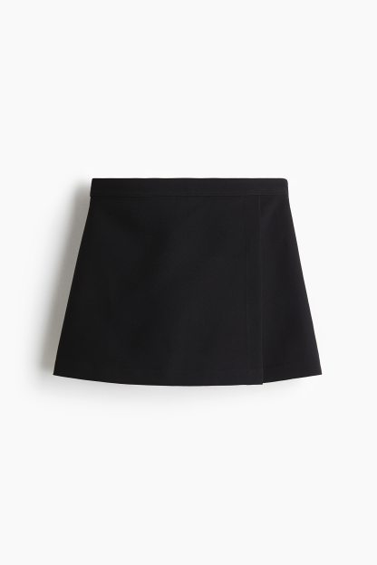 Skort in woven fabric with a high waist, sewn-in wrapover at the front and a concealed zip and hook-and-eye fastener at one side.