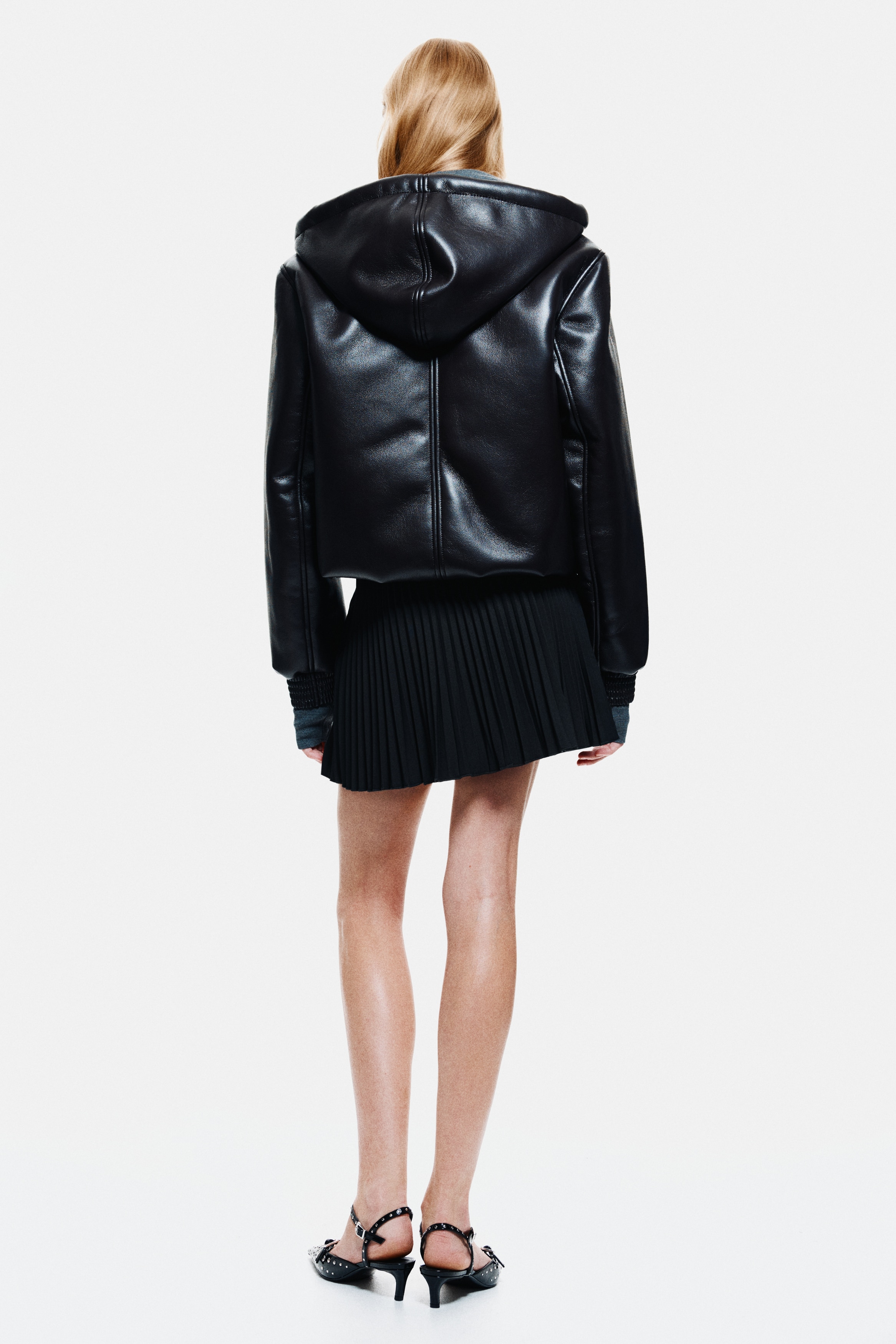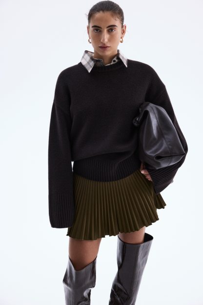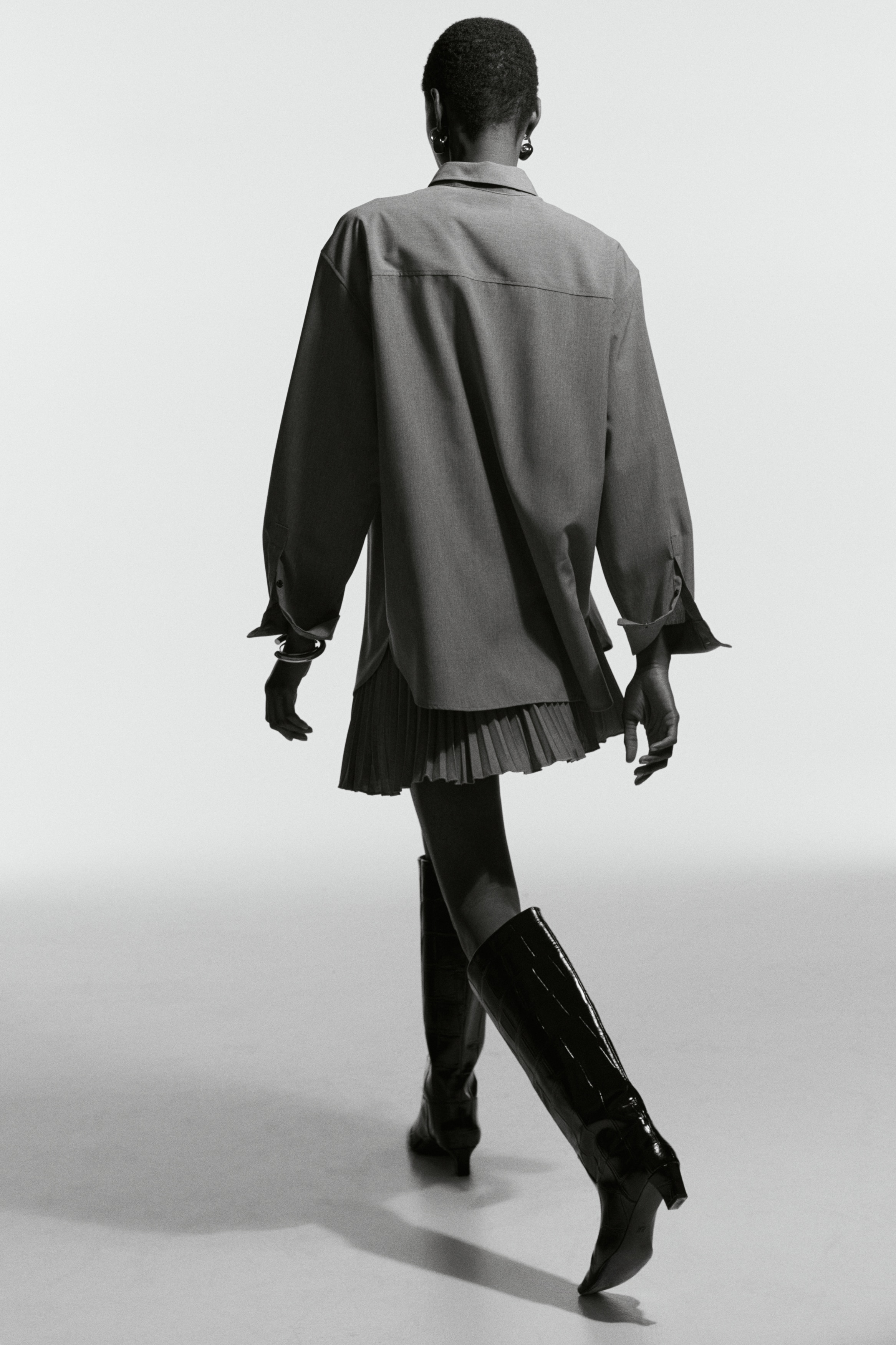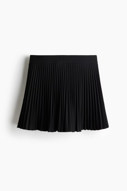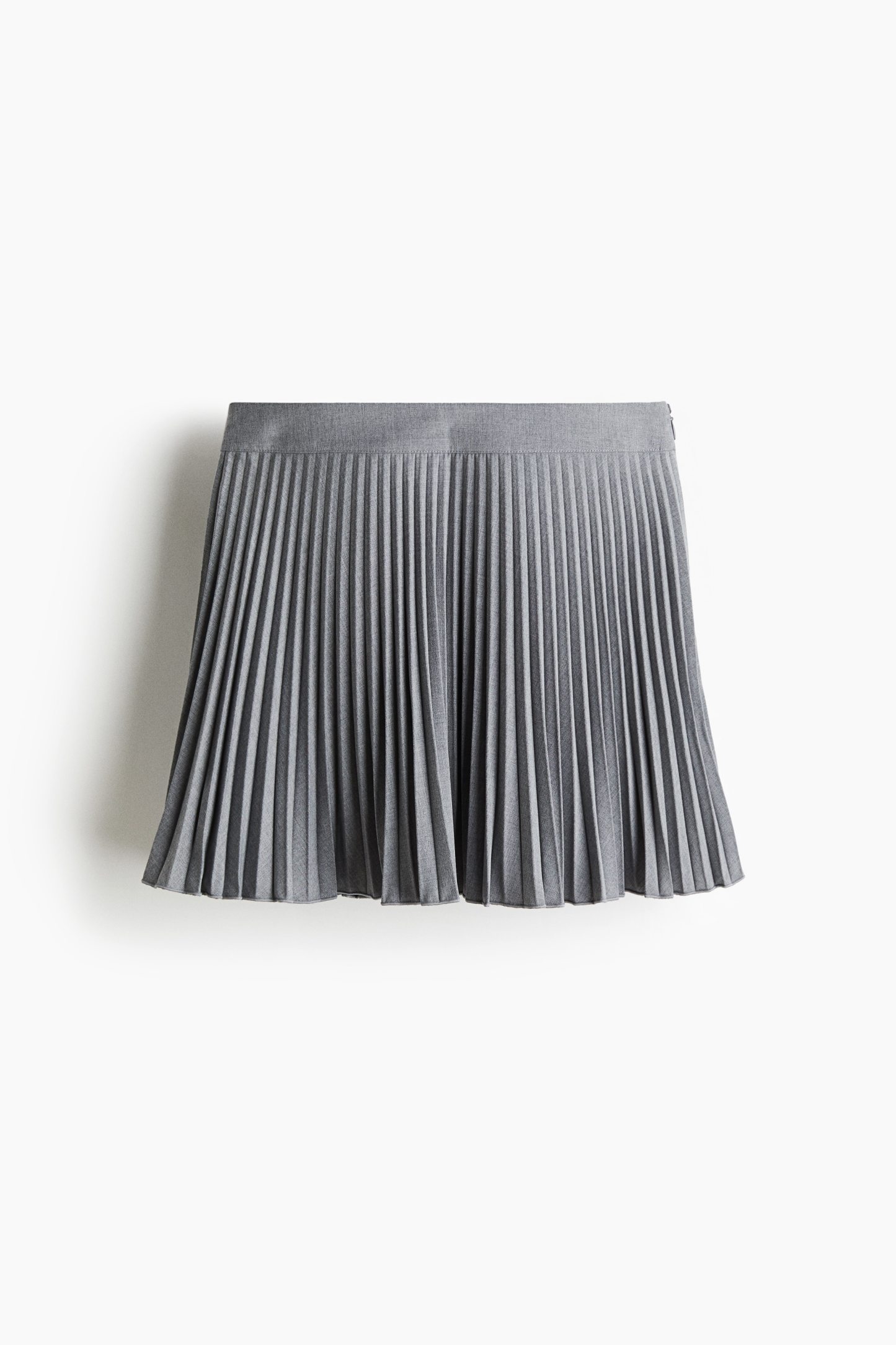 A-line mini skort in a pleated weave with a concealed zip and hook-and-eye fastener at one side of the waist. Overlocked hem.