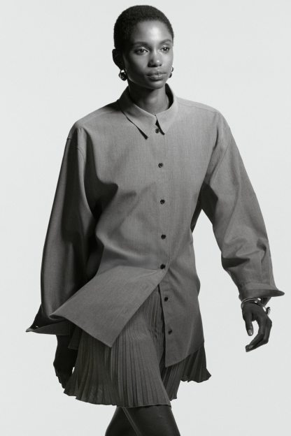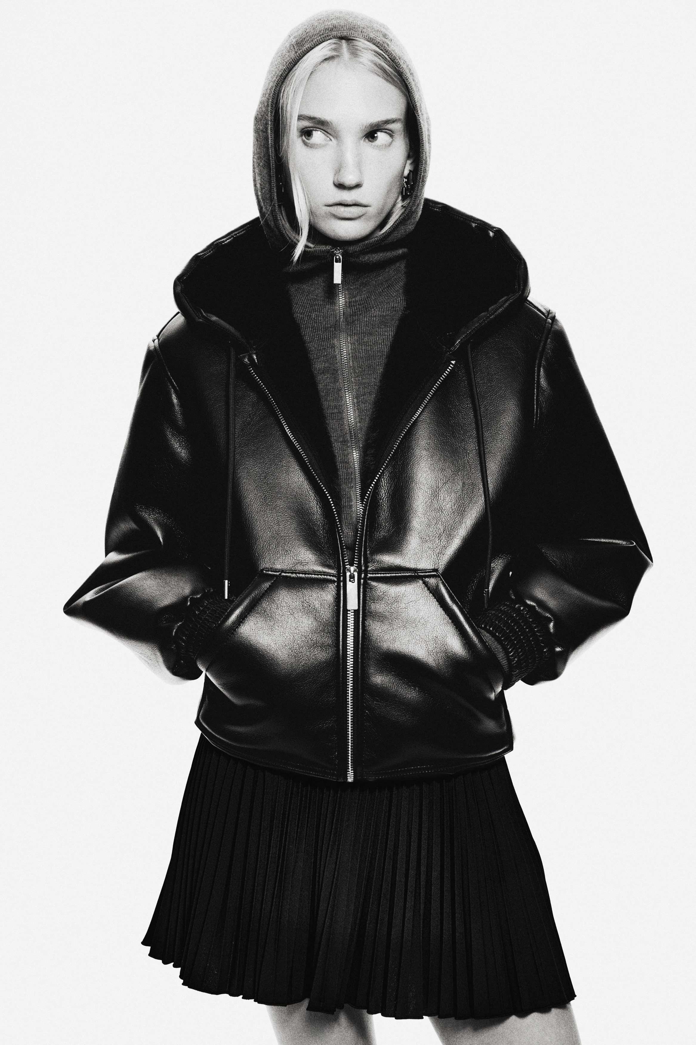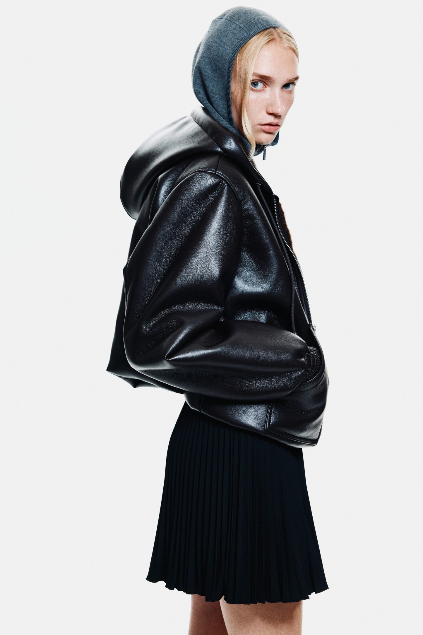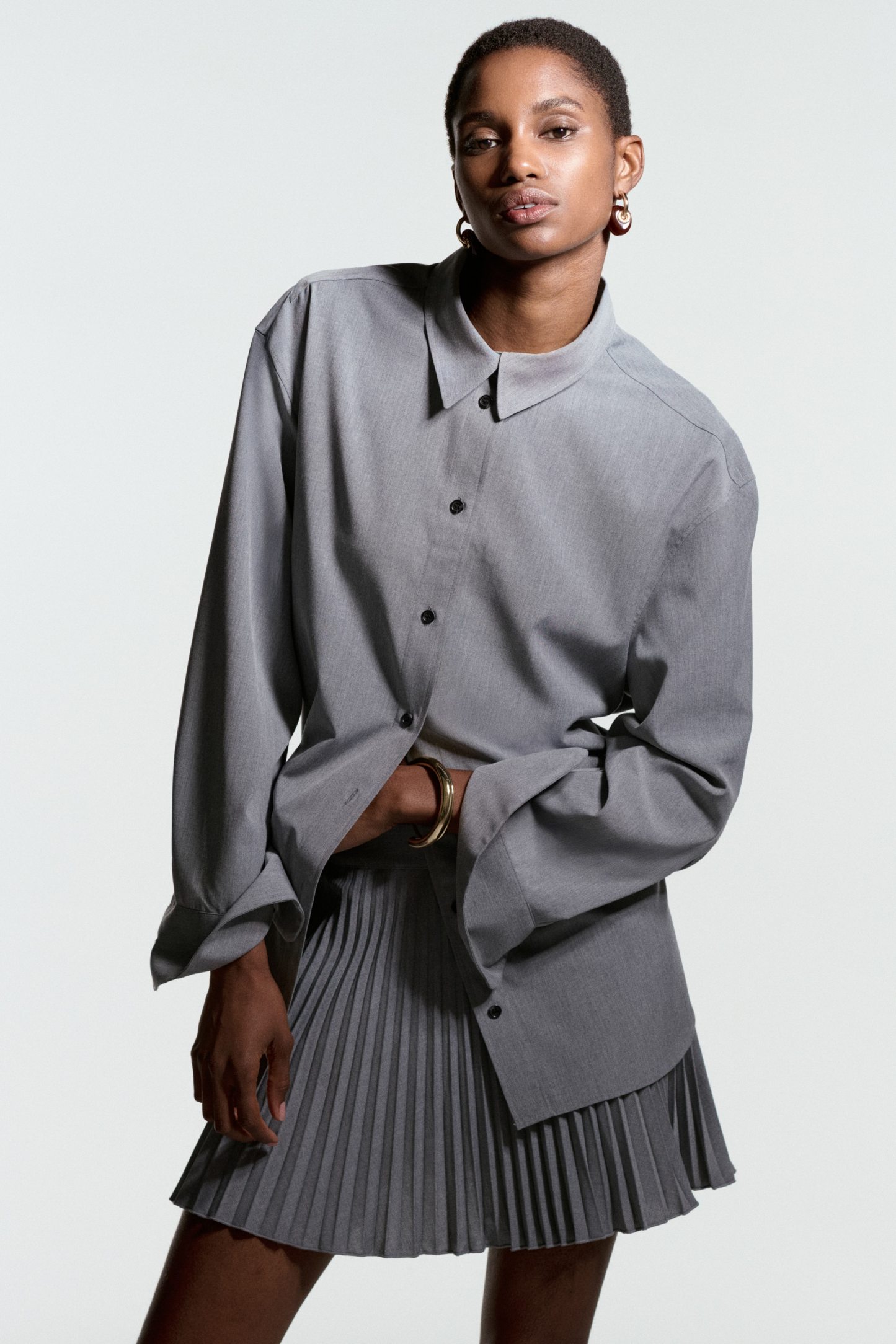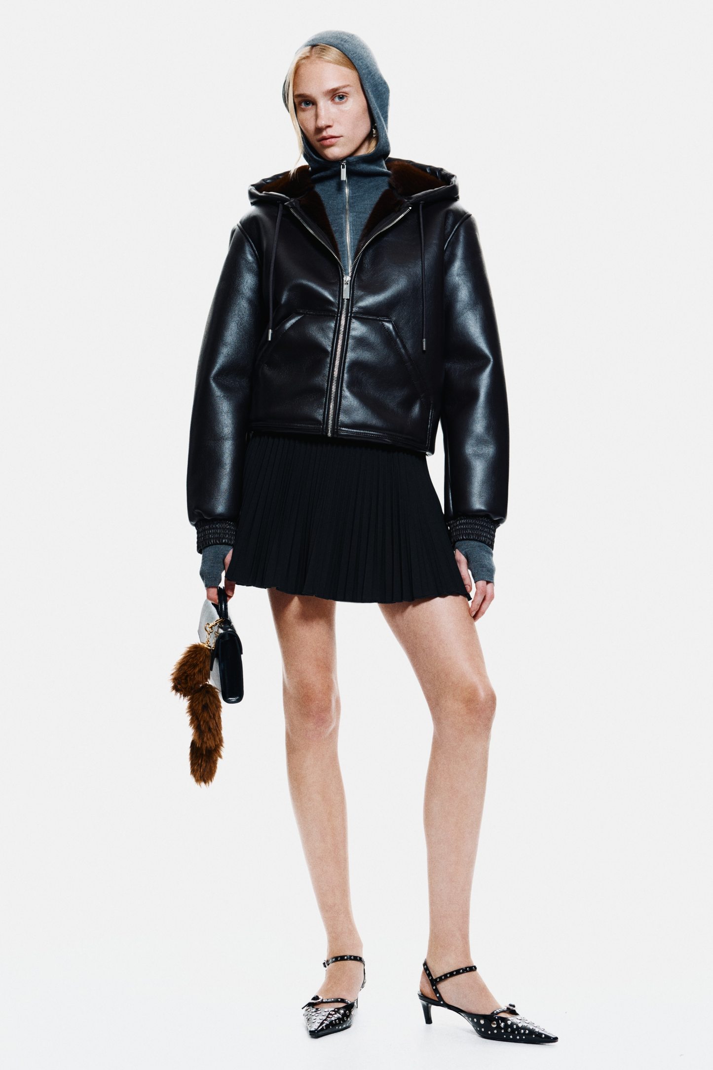 A-line mini skort in a pleated weave with a concealed zip and hook-and-eye fastener at one side of the waist. Overlocked hem.