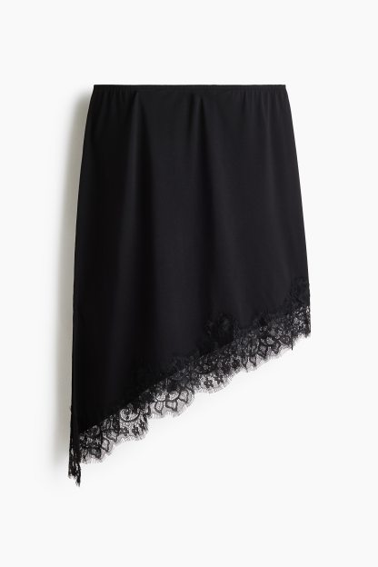 ASYMMETRIC LACE-TRIMMED SKIRT