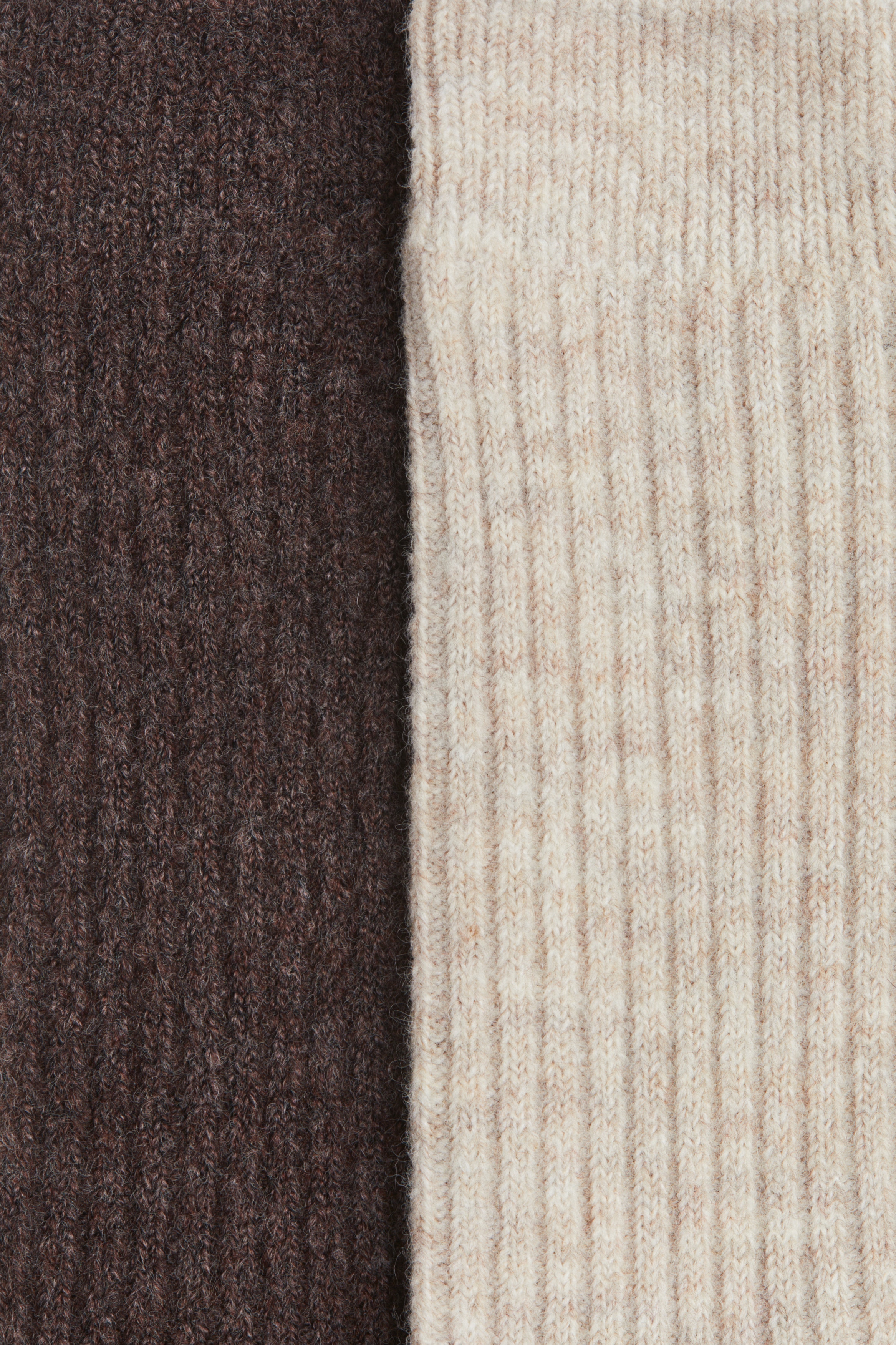 Thicker-style, mid calf-length socks in a soft, rib-knit, warming wool blend.