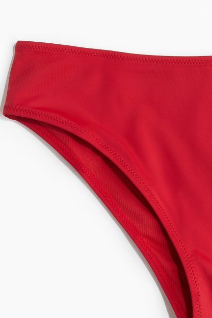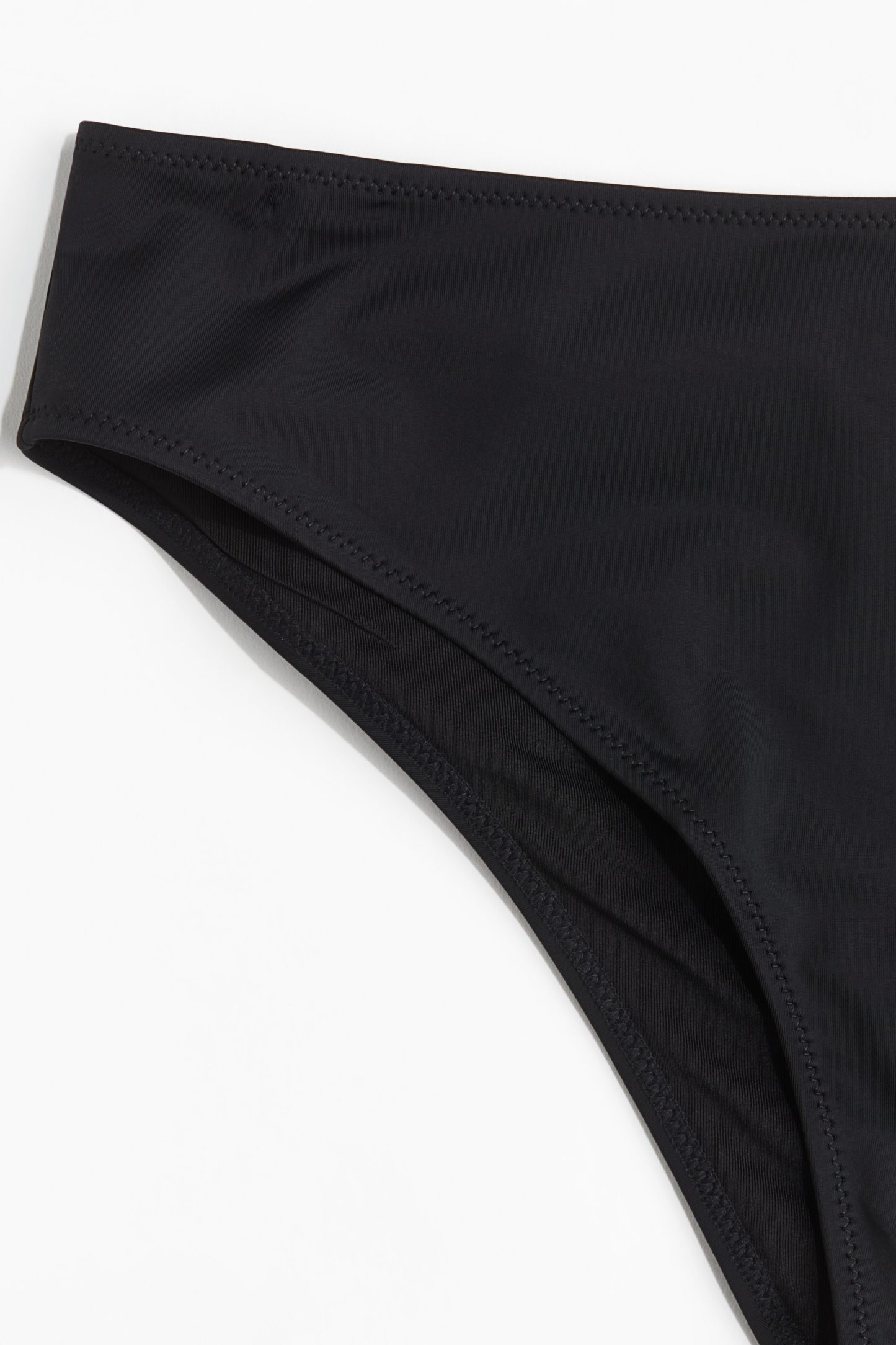 Fully lined bikini bottoms with a high waist and cutaway coverage at the back.