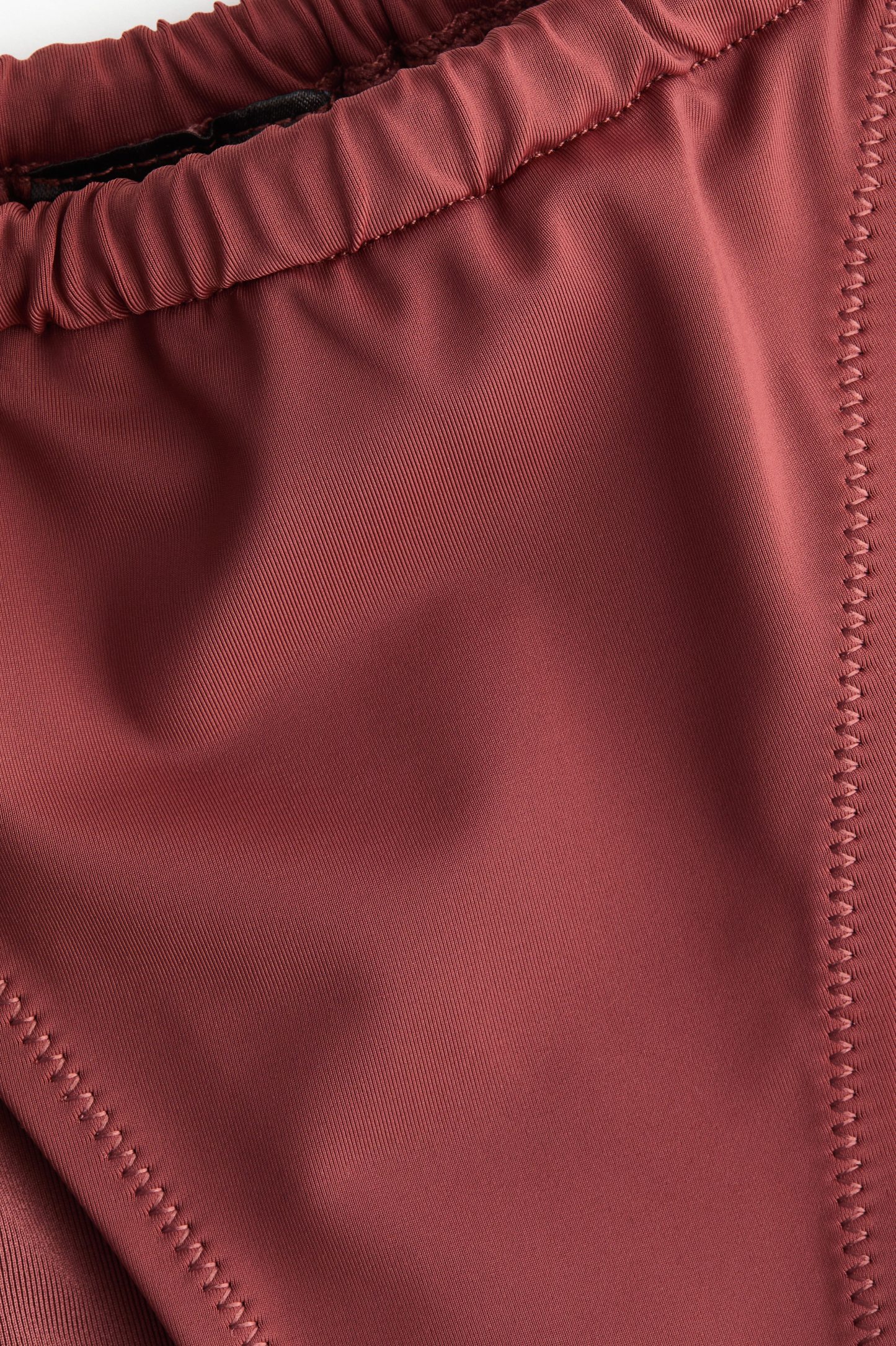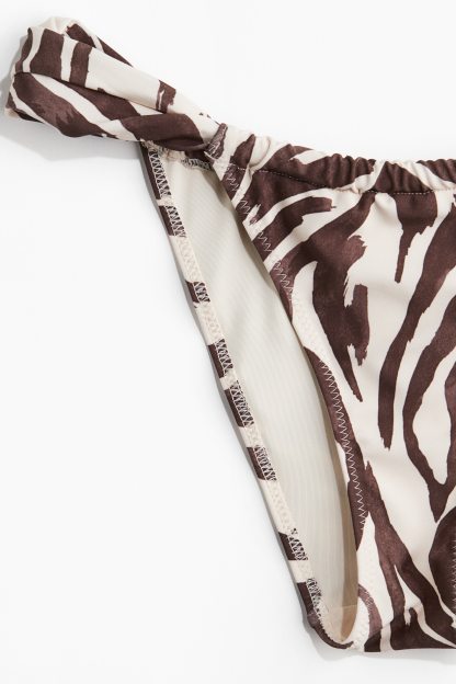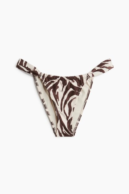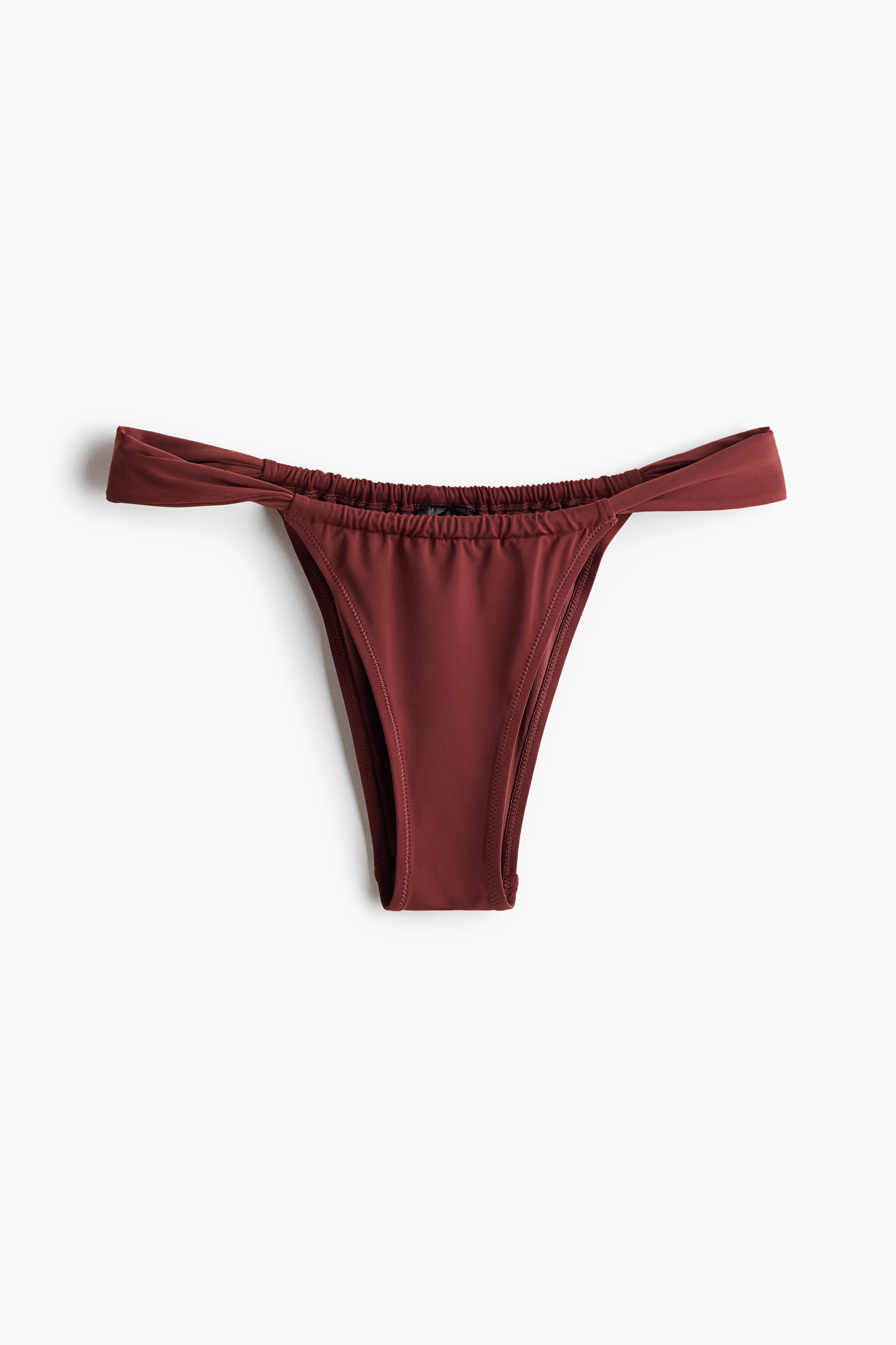 Fully lined bikini bottoms featuring a low, ruched waist with gathered sides, and cutaway coverage at the back.
