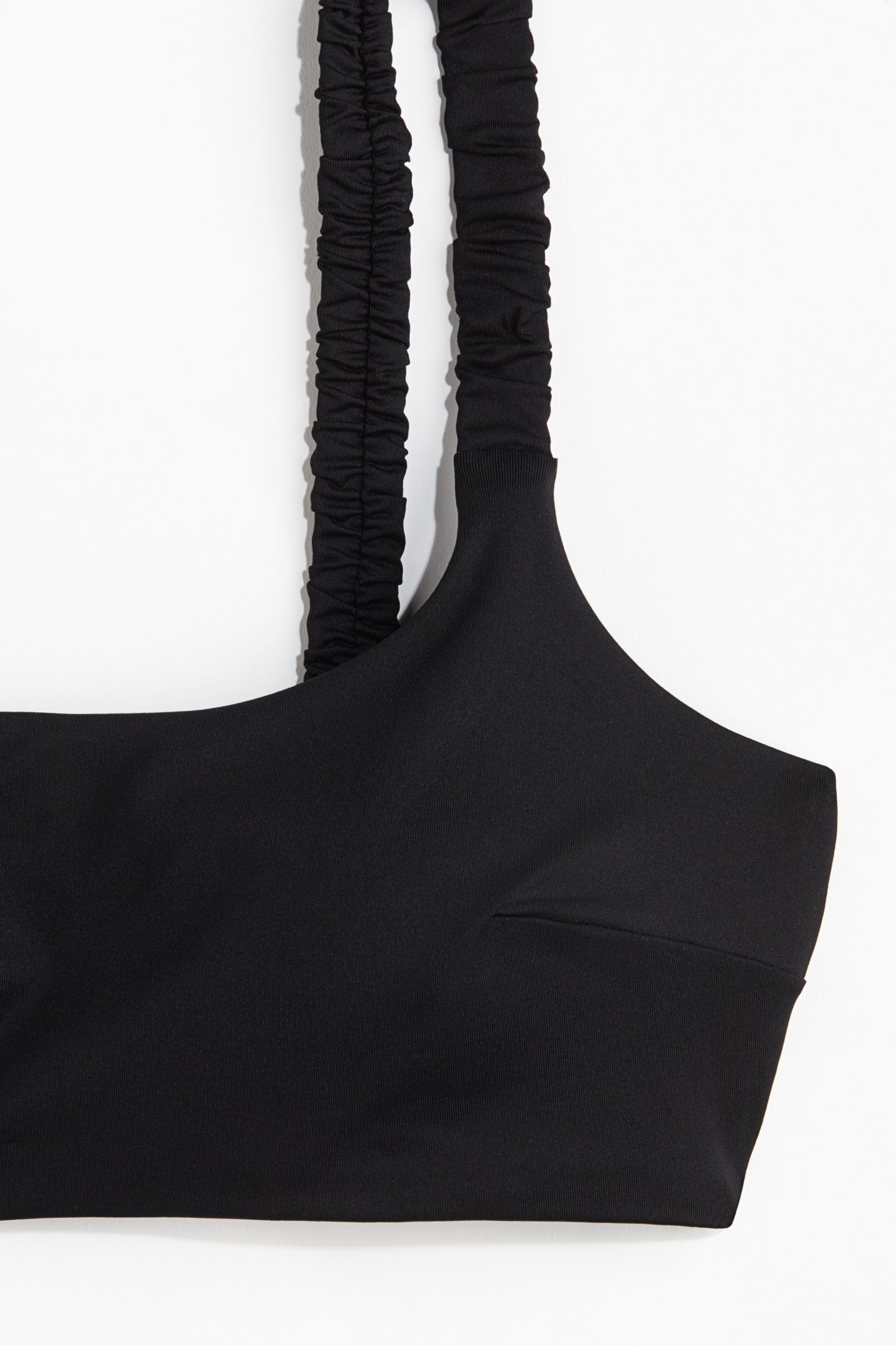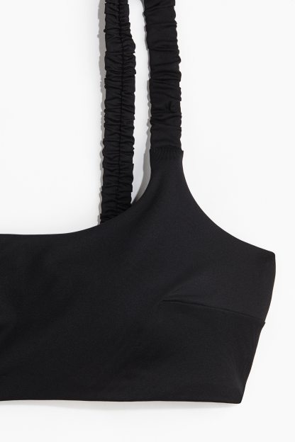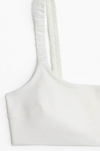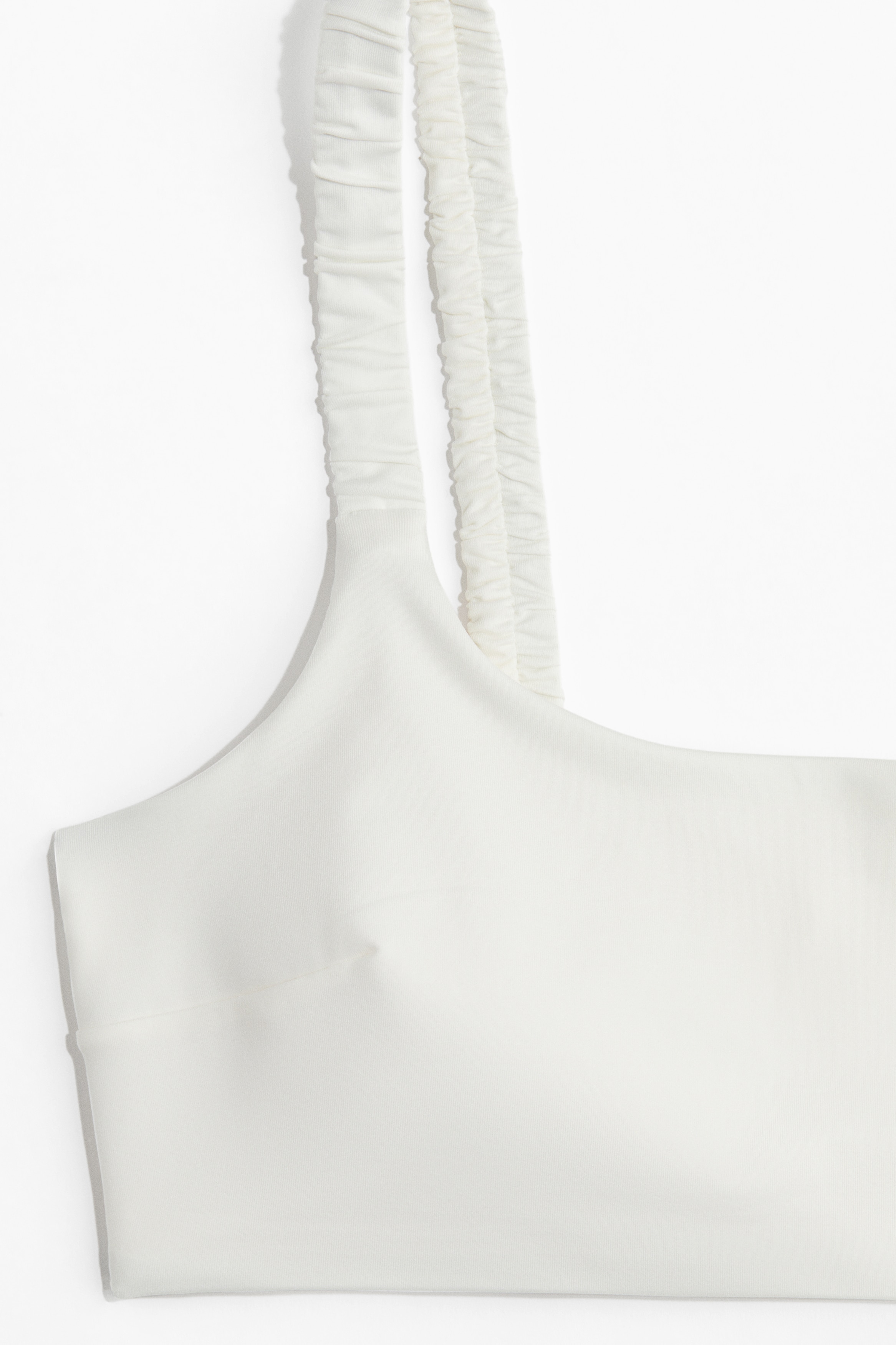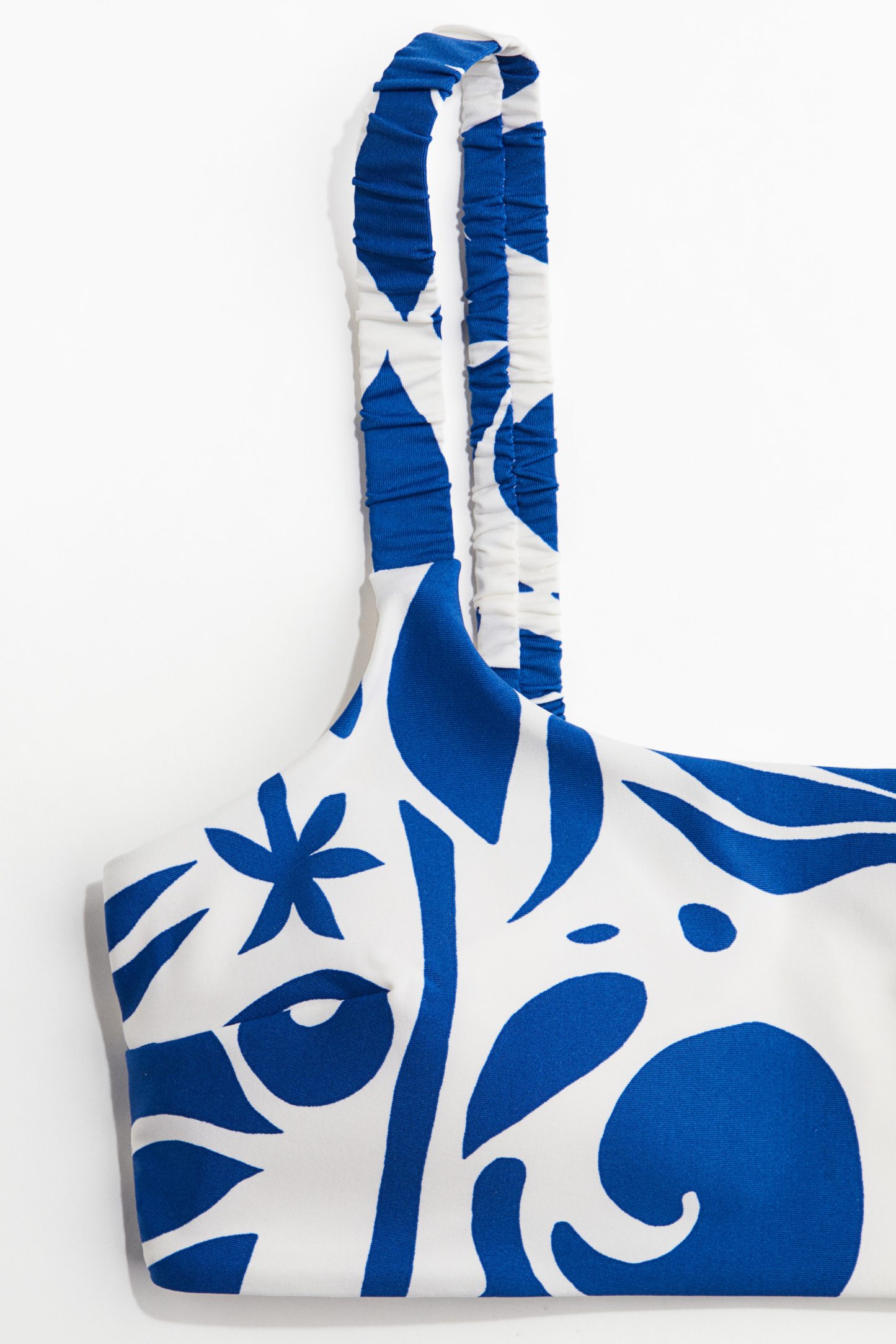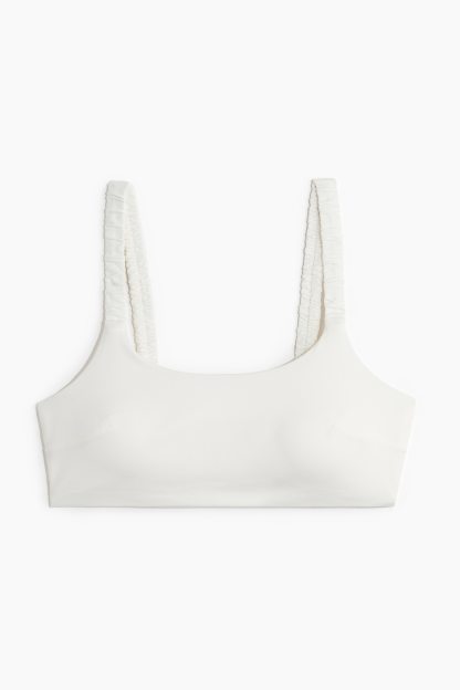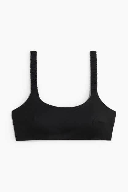 Lined, non-wired bikini top with elasticated shoulder straps and padded cups that shape the bust and provide good support. No fasteners.