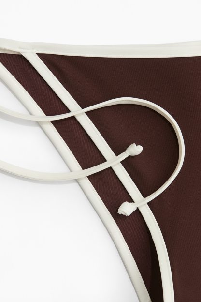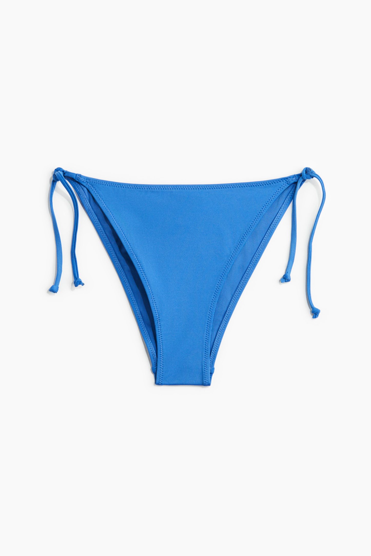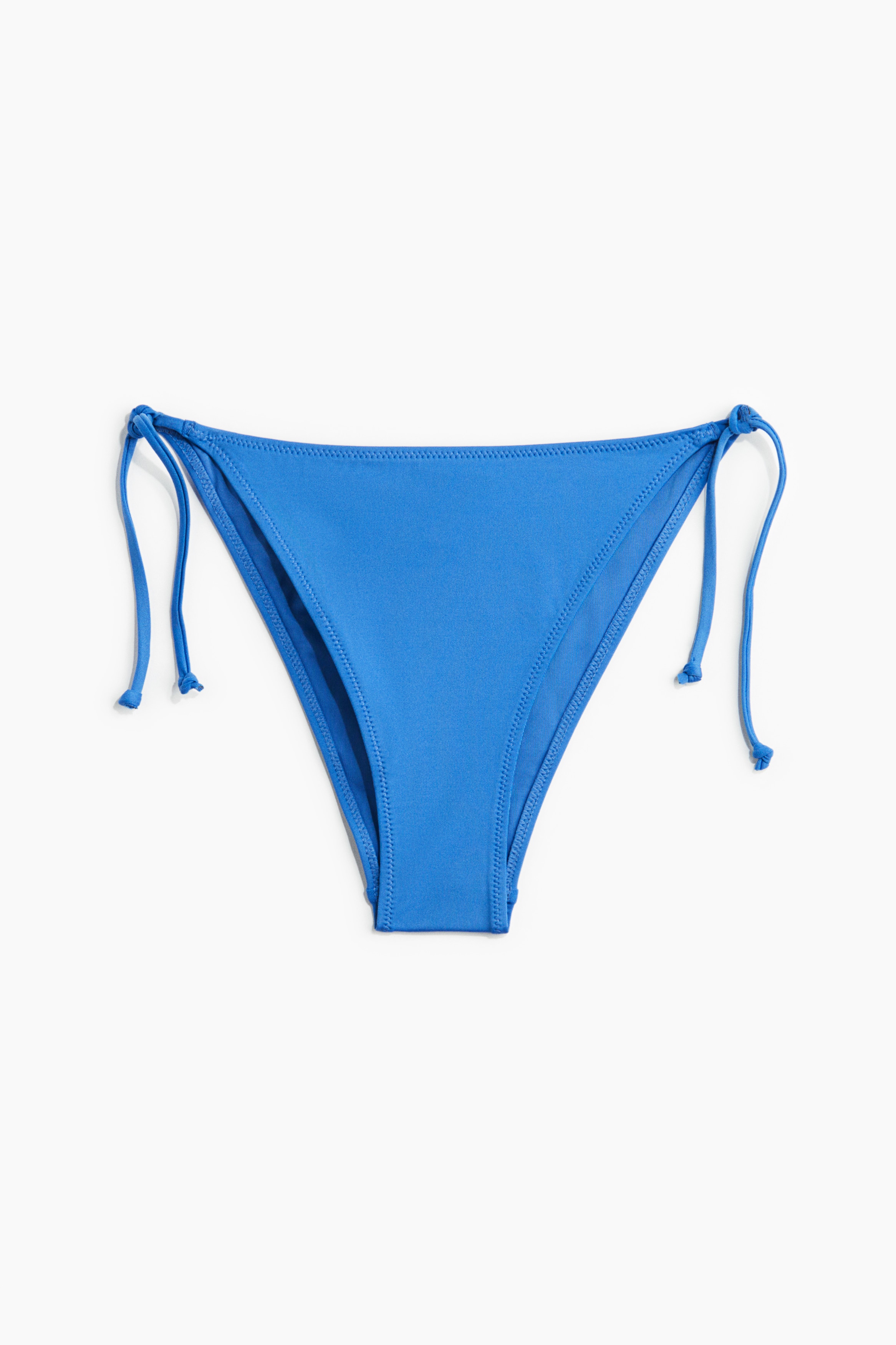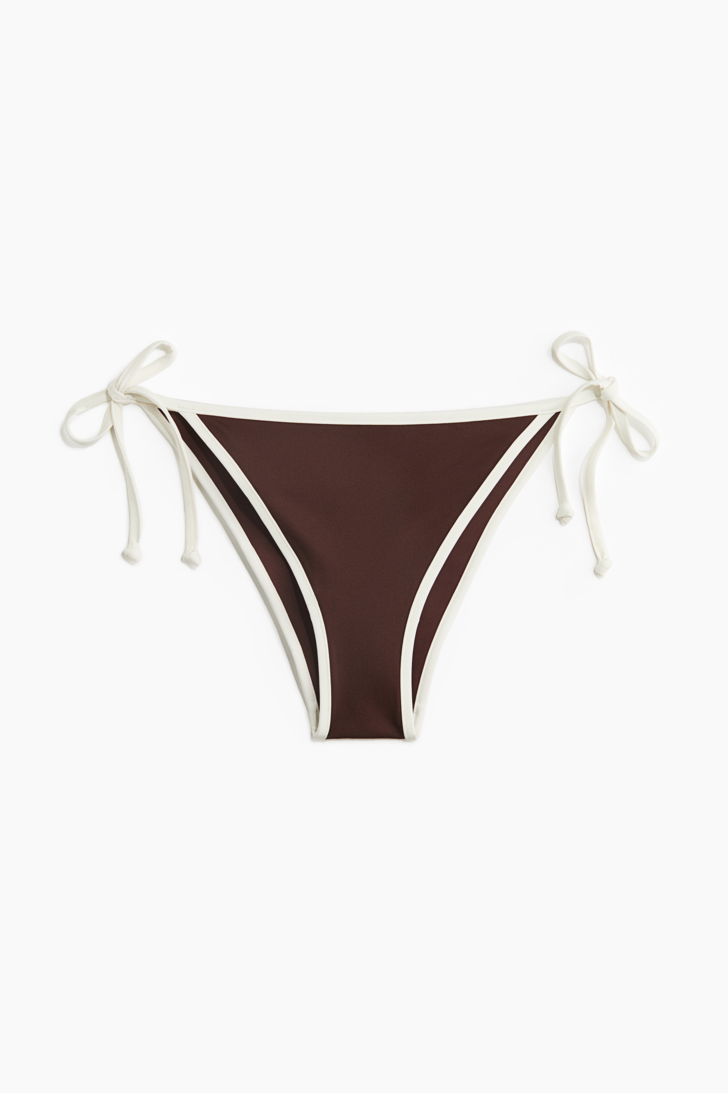 Fully lined bikini bottoms with a mid waist, ties at the sides and cutaway coverage at the back.