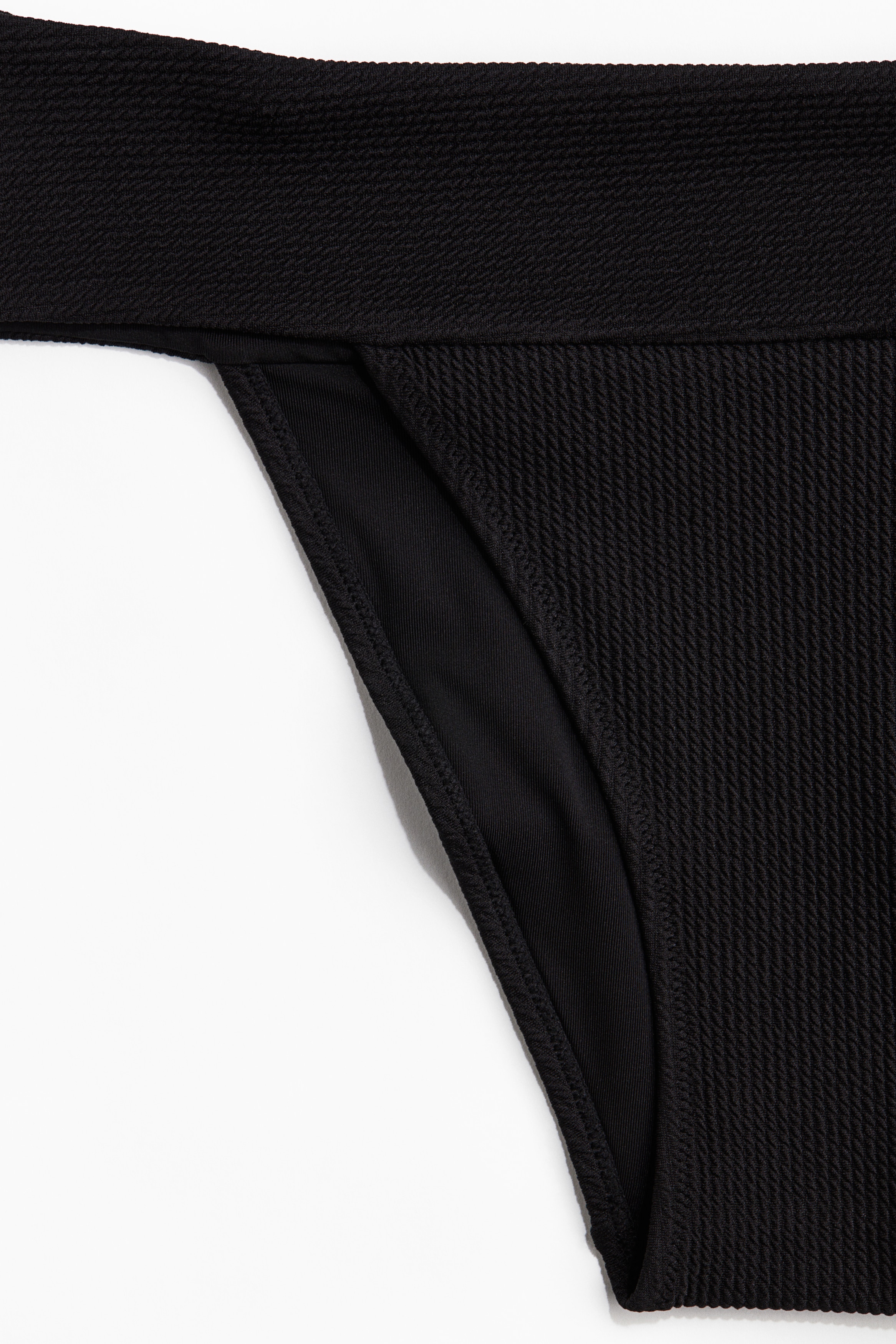 Fully lined bikini bottoms with a high waist and cutaway coverage at the back.